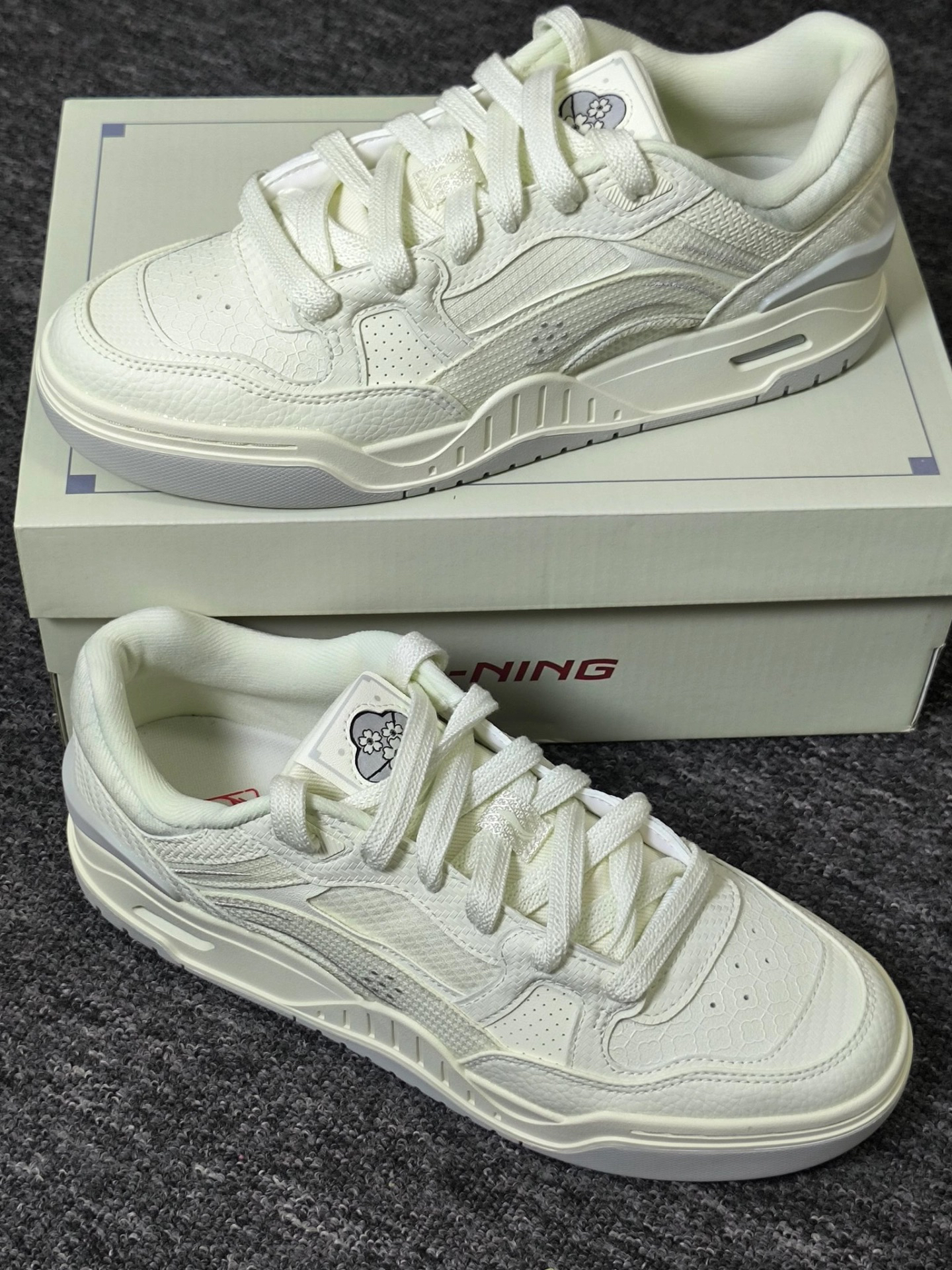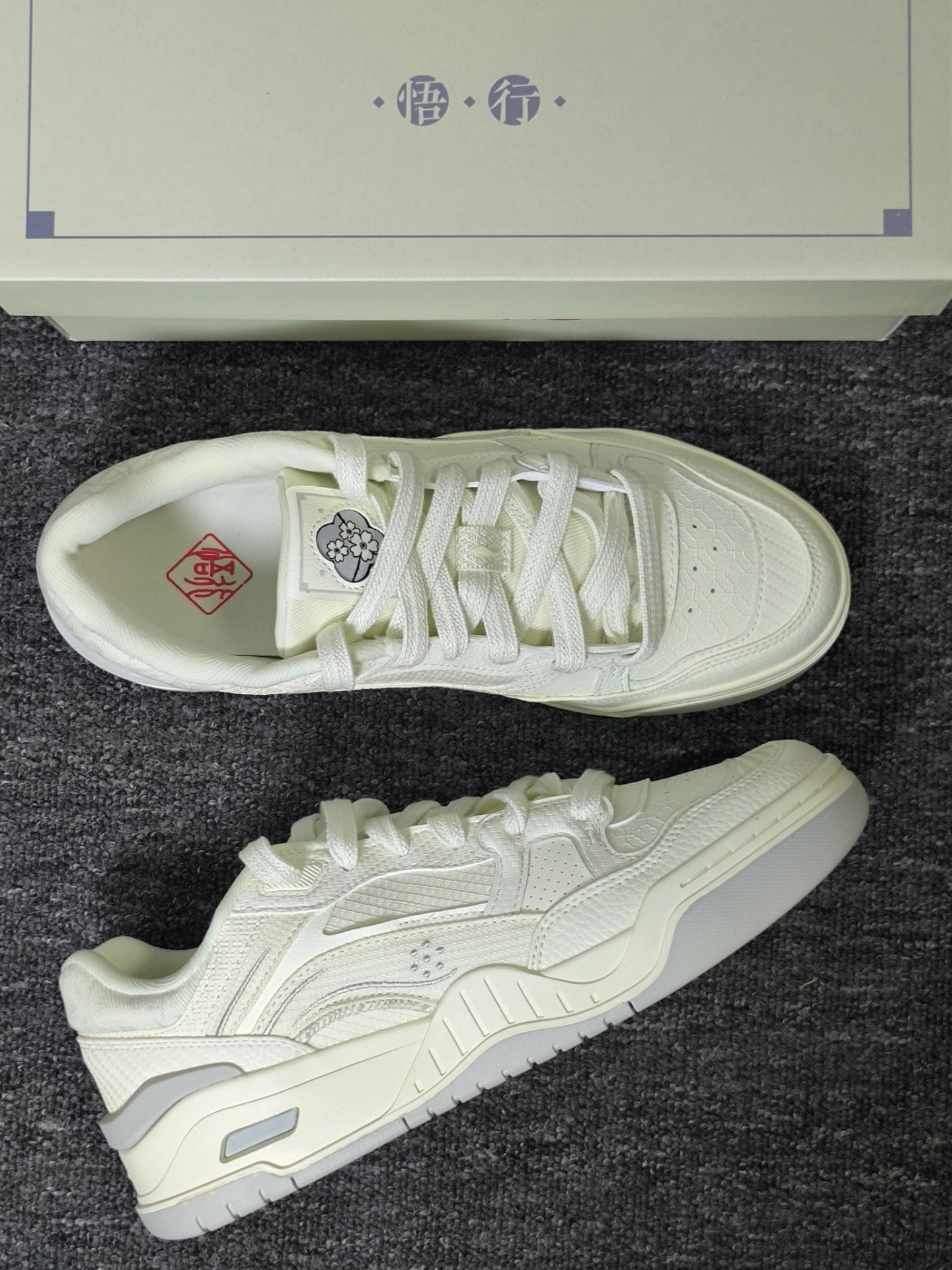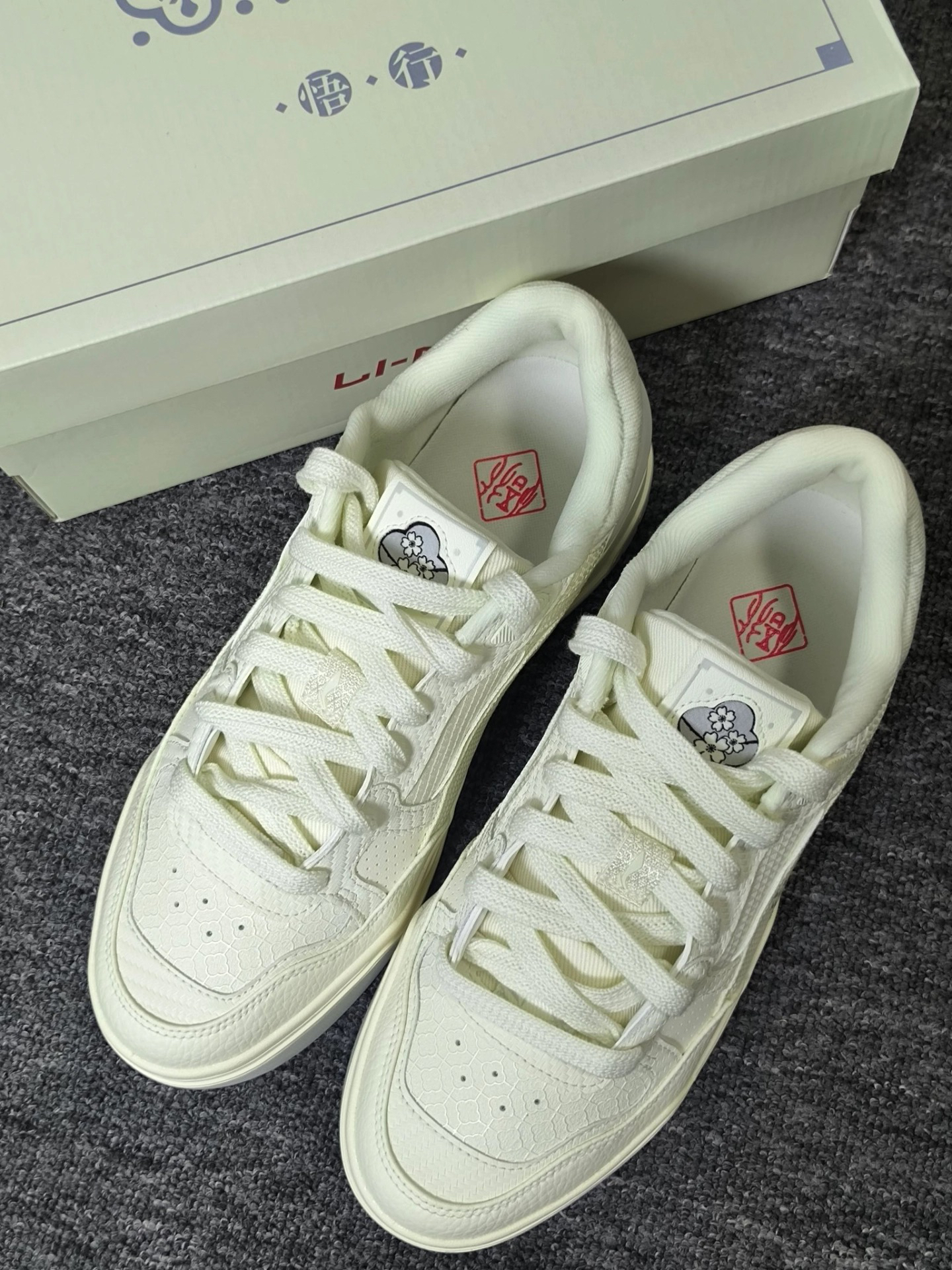 家人们,都来围观这双李宁梅花主题板鞋,一眼就爱上! 鞋面是温柔的米白色,像被日光轻抚的积雪。梅花以压花工艺呈现,纹理清晰,栩栩如生,鞋帮处还有精致刺绣,中式韵味拉满,真的太爱了[爱心_blue][爱心_blue] 鞋底软弹,走路像踩在海绵上,贴合度也很棒,不磨脚不挤脚,上脚的脚感真是超绝嘞[强_blue][强_blue] 梅花象征坚韧、希望,穿上它,就把这份美好寓意带在身边。日常出街、运动,它都能...