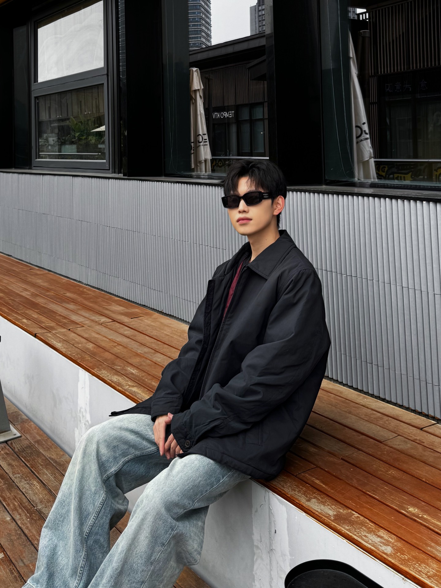 春日休闲夹克的穿搭方式来咯 轻薄夹克就得这样穿 经典黑色休闲感到位 质感很喜欢面料摸起来蛮舒服的 宽松的版型搭配一条牛仔裤 裤子来条浅色系直筒牛仔裤 干净男友风必备单品 身高172 体重50kg M码正常 出门了,还不快一起get上 - 图片源于网络侵删