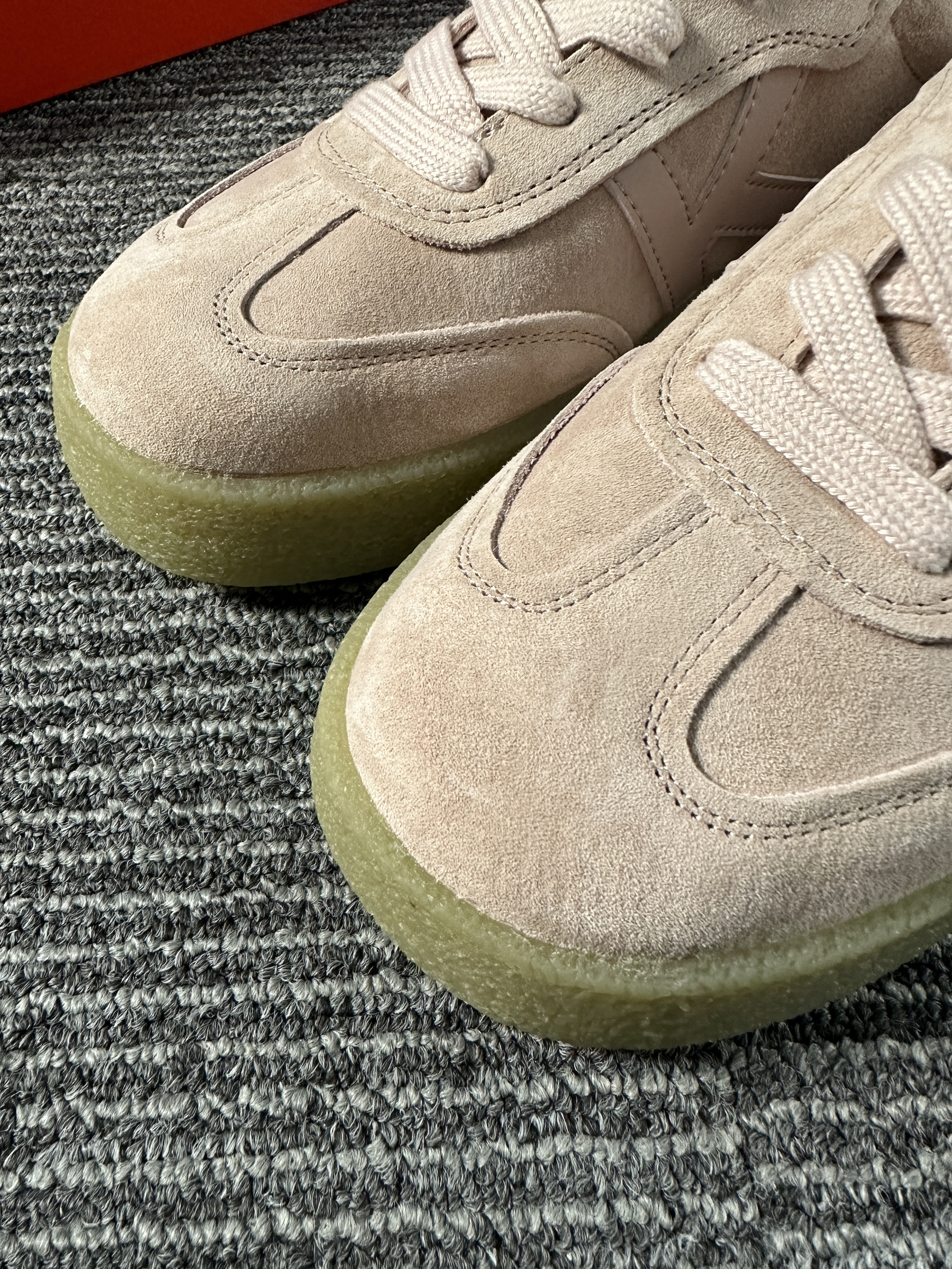 鞋面是那种做旧的粉色,它满满的复古风,鞋侧身经典标识 低帮设计超显脚踝纤细,自由灵动的感觉拉满,呼应鞋子主题了😂 而且,鞋子橡胶中底挺软弹的,穿上悄悄长高几厘米,小个子女生闭眼入! 鞋底的是那种橡胶小格子,类似磨砂的,防滑防氧化效果可以 不管是搭牛仔裤还是小裙子,都能轻松拿捏时尚感,适合小女生穿搭