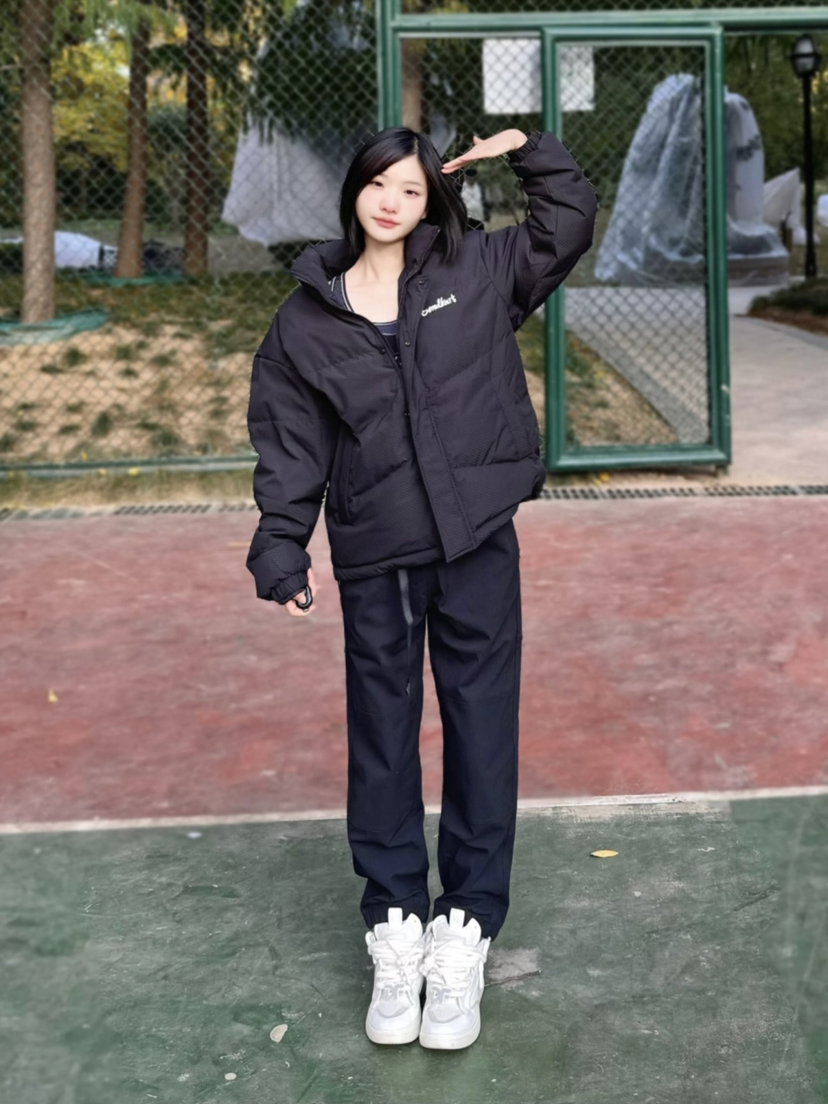 黑白搭配真的是简约又帅气🎠 黑色衣服十白色面包鞋 经典黑白配就是坠百搭滴 Sandknit这件黑色短款宽松羽绒服 ⛱️ 美式又休闲手写字母刺绣logo 好看又有质感保暖性杠杠的🪝 冬天内搭一件长袖就够了@鹤鹤Hee呀