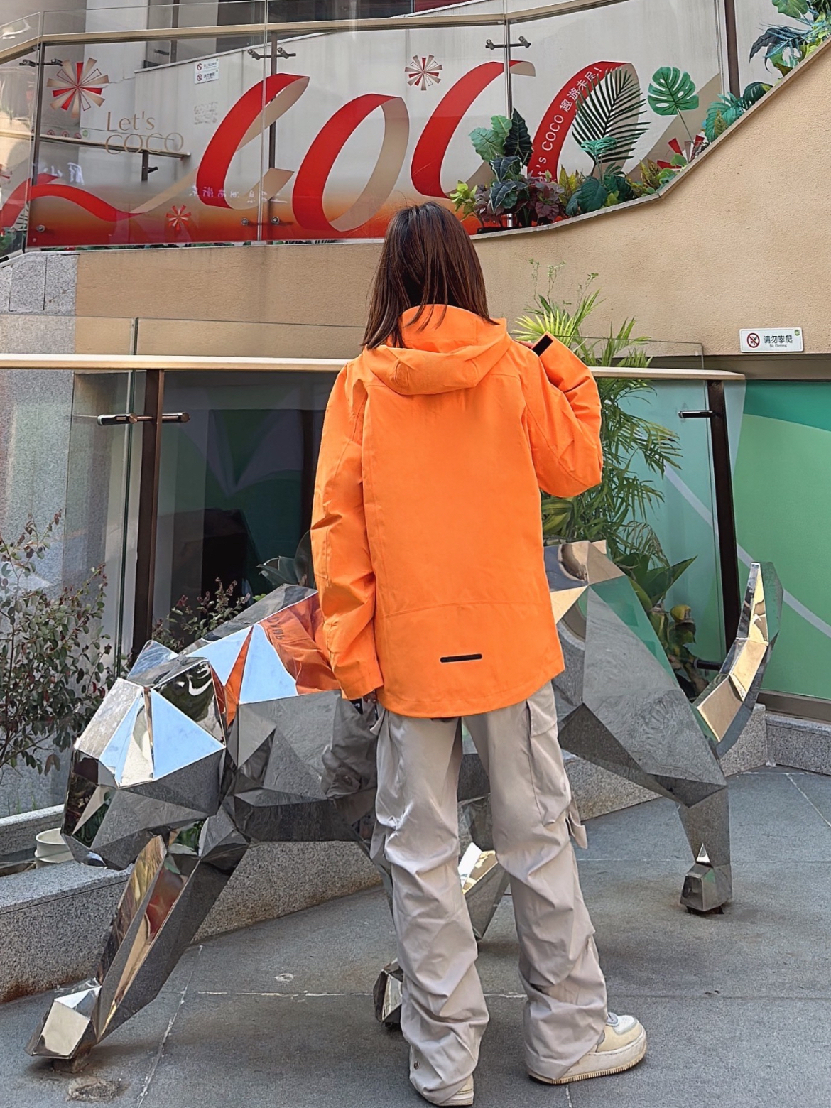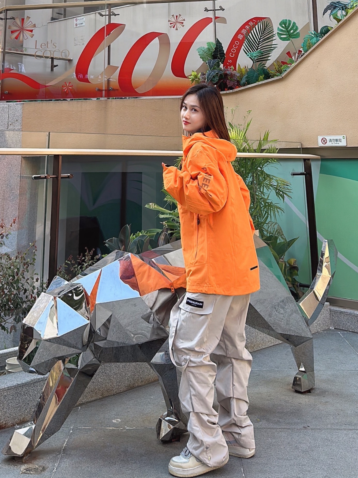 今天这件拓路者的橙色冲锋衣,强力防水防风,基本的可调节袖口、风帽、下摆都是有的,拉链也是防水的,喜欢手臂上的字母 logo,有辨识度。性价比不错的,就看配色就很满意了。 (图片来自网络,侵删)
