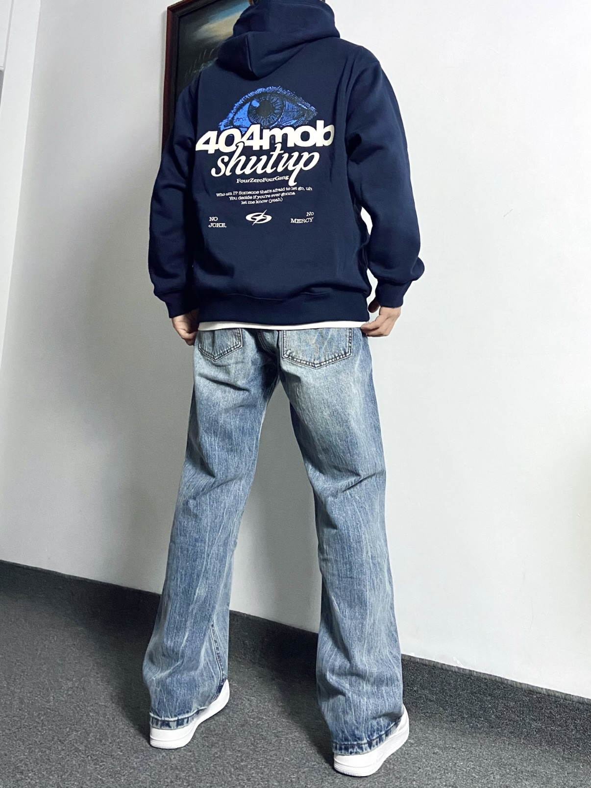 身高|体重:181| 130,今日份穿搭:😌 🫧上衣搭配 0404MOB GANG 美式西海岸字母LOGO连帽卫衣,藏青色搭配蓝白色印花超帅,柔软亲肤,上身保暖舒适!叠穿一件白色打底衫凸显层次感!🪇@Hao_ww