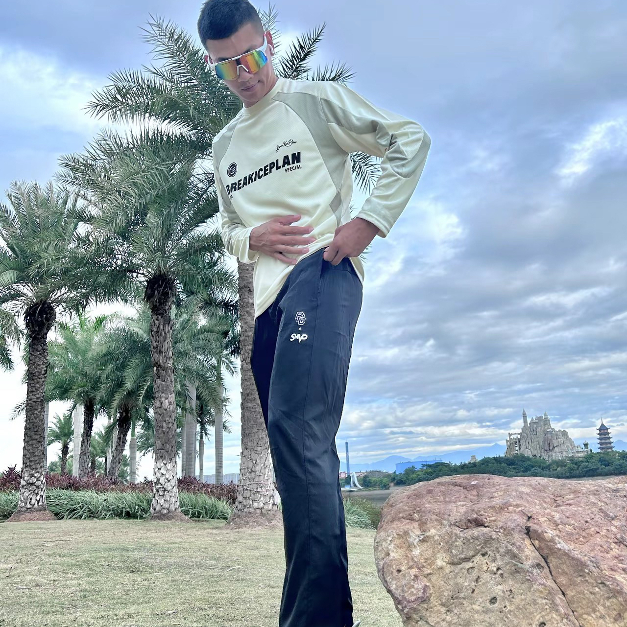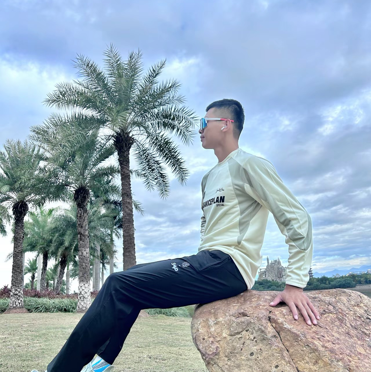 健身也要穿的帅呀~米白色长袖配白色欧文长裤,印第安纳风格的长裤印花很狂野,举铁时候感觉自己也狂野起来!弹性十足,深蹲时就喜欢穿弹力大的,充血了也不怕卡,透气性也很好。日常健身必备哦~ 图片来源于@原来是18啊