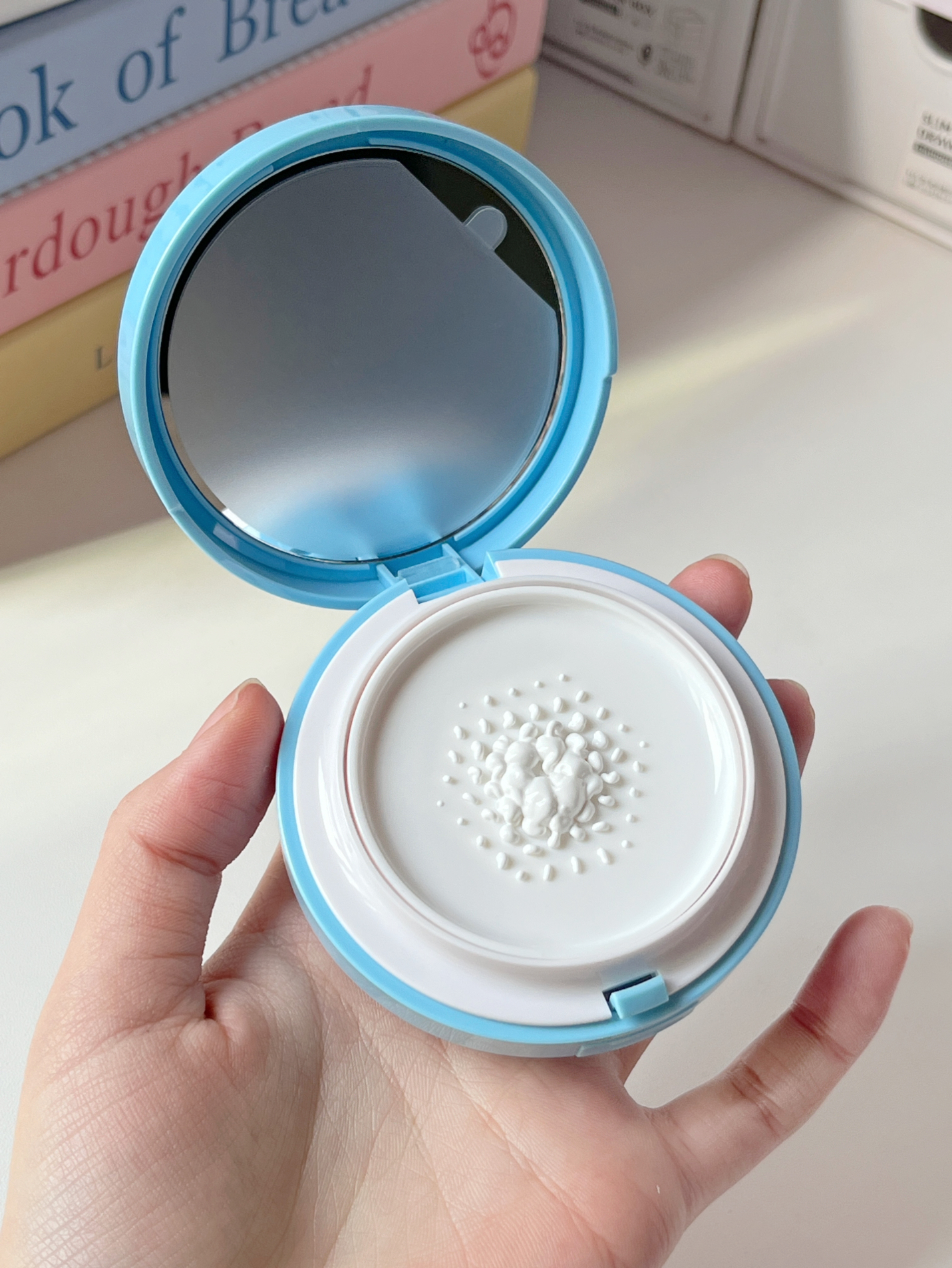 居然是可以防晒的垫垫 不得不说这也太懂大学生了 蓝色的包装外壳好清新 质地润润的上脸也好拍开 好方便呀