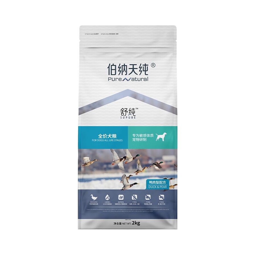 本篇笔记关联了Pure&Natural/伯纳天纯 舒纯鸭肉梨配方全价狗粮膨化粮通用型全犬期清火美毛去泪痕 2kg等商品,为用户提供真实的使用体验和购买参考。