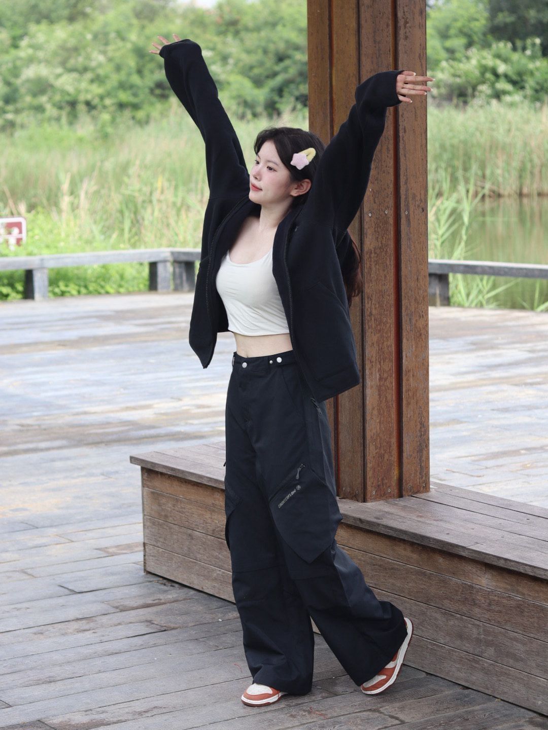一直犹豫去户外要穿什么衣服 可算是被我发现了李宁的这户外系列的套装! 这个卫衣是连帽开衫的 里面套一件小吊带感觉就很适合运动呢 衣服的质量也很不错 我穿小吊带套着这个外套一天了都不觉得扎皮肤 还有这个裤子! 我要重点夸夸! 真的好轻好轻呀 这是户外系列所以主打的就是一个户外机能风 而且还做了松紧绳设计 还有很多小口袋 太喜欢啦! 图源网络侵删