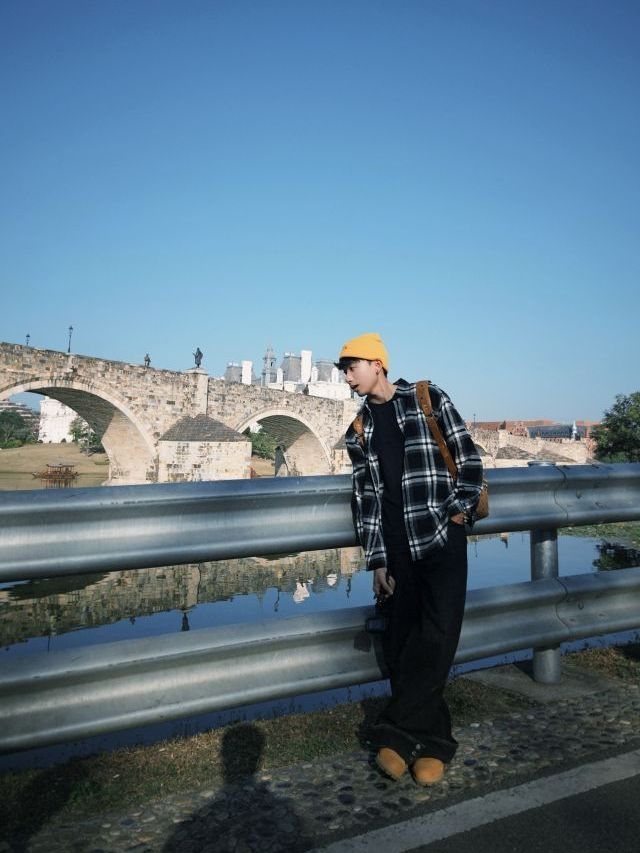 今天是韩里韩气的一套Look 👦🏻----170cm 67kg 👔黑白格子长袖衬衫外套 宽松版型让穿搭更随性,内搭黑T打底,简约却有层次感 再搭配一条黑色阔腿牛仔裤,遮肉显高又显瘦 最后搭配一双大黄靴,一顶黄色冷帽,就可以出门啦! 这一套穿搭少年感满满,很适合日常、约会、上课穿👍~ (图源网络侵删)