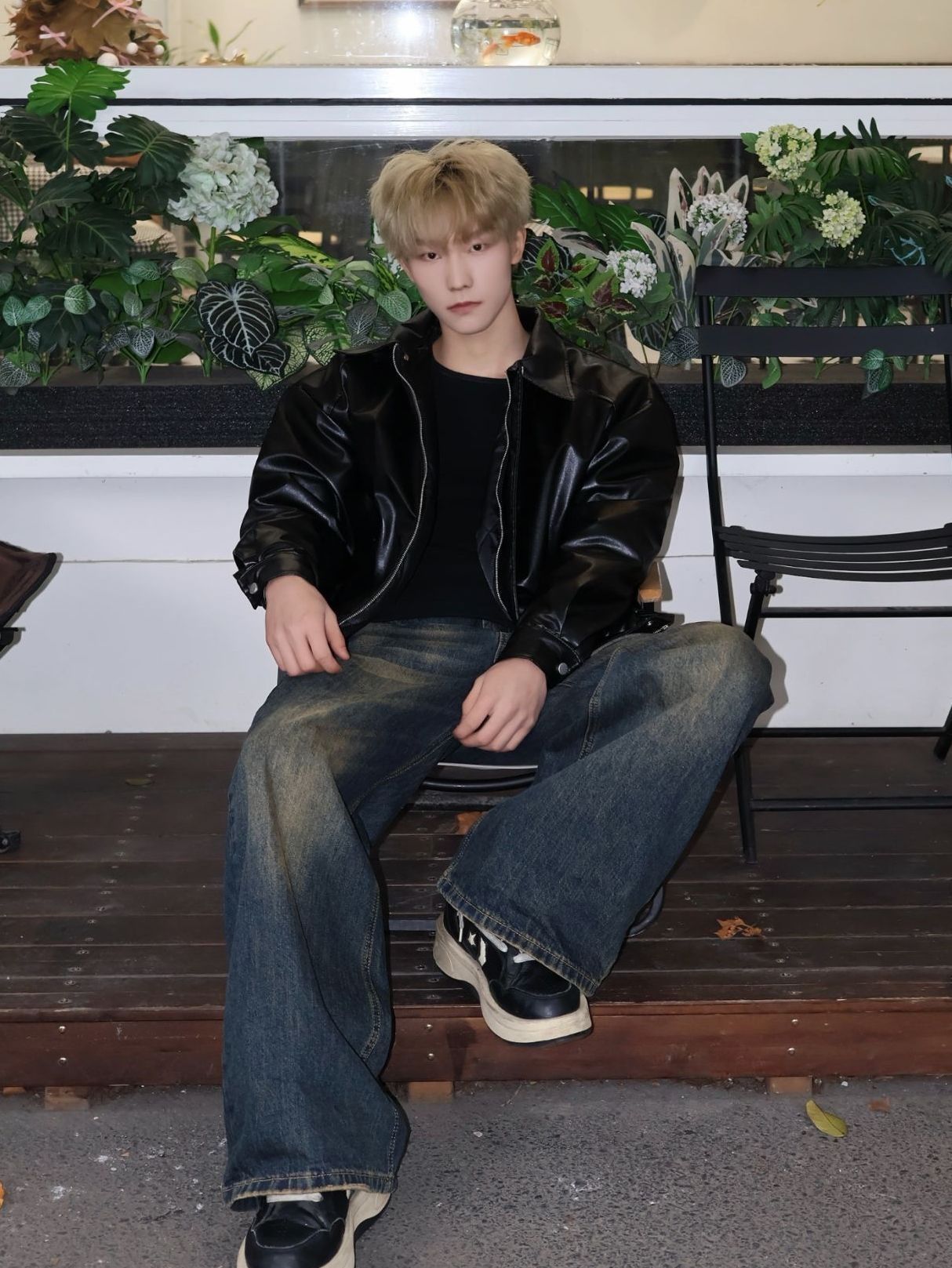 今天给大家分享一套秋冬顶男穿搭Look 上身搭配的是超帅气的黑色机车服外套,质感肉眼可见的棒! 黑色皮衣太显气质了,气场十足,秋冬少不了的唯一单品! 高领设计酷酷的,比较能抗风。 图源网络侵删