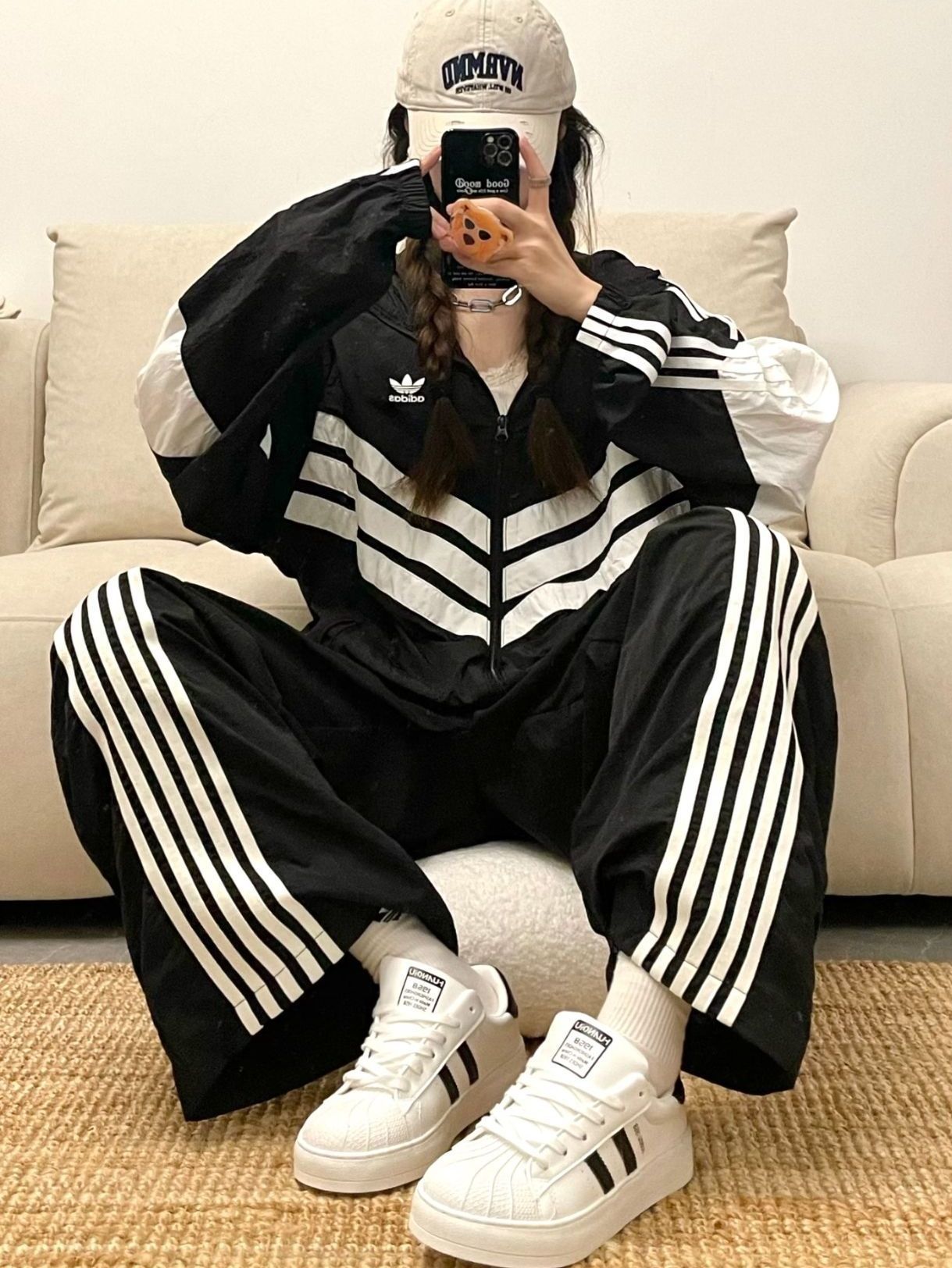 今日份运动休闲girl 来点简约风的穿搭吧,秋季主打一个美式复古风哦~ 三杠外套十黑色休闲裤,再搭配这双小白鞋,校园感满满 整体黑白撞色,百搭干净又耐看,不会🈶多余的色彩出现 图源网络侵删