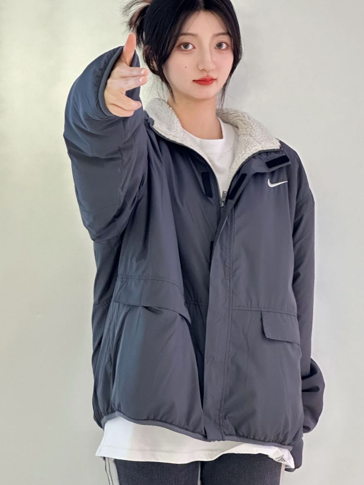 双面穿外套,两面都有特色,黑色的钩子简单经典 这衣服男女穿都很帅,关键两面是两种不同风格,一衣两穿,性价比拉满 这件真不赖,还得是nike啊,nike的仿羊羔绒夹克搭配直简休闲卫裤🆗 图源网络侵删