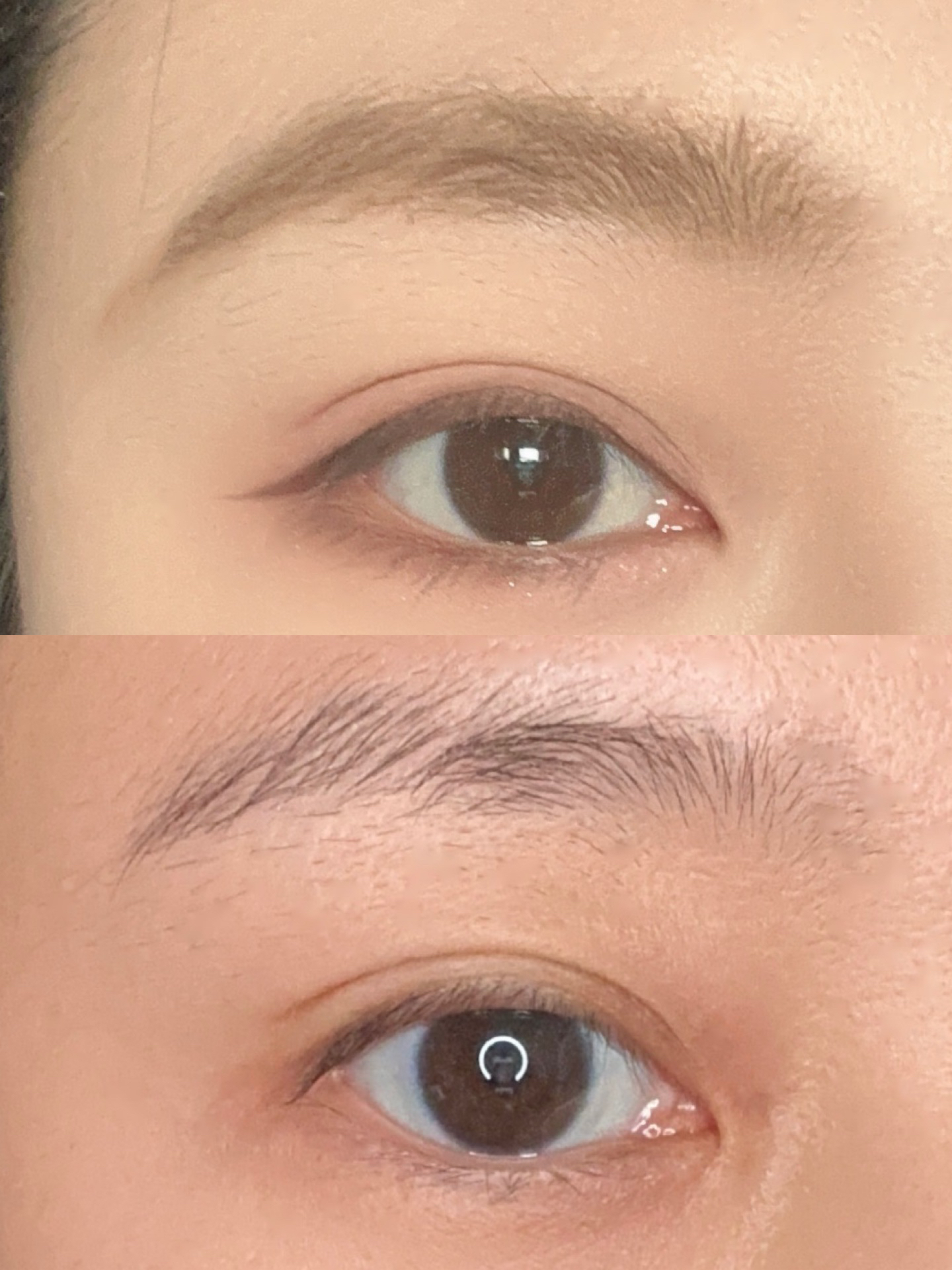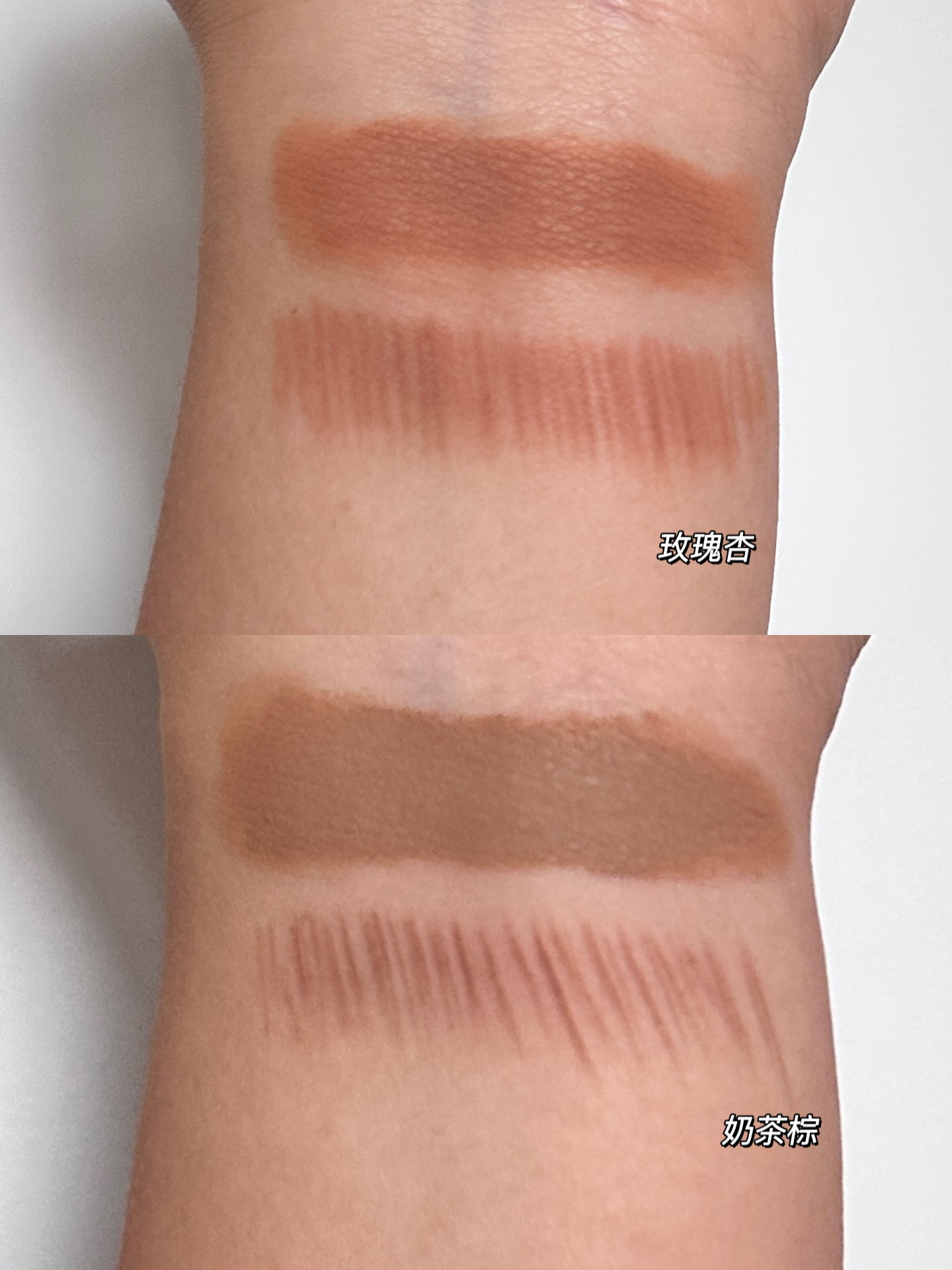 谁懂,砍刀眉笔➕染眉膏也太绝了 向日花这支也太绝了 砍刀眉笔➕染眉膏,就很方便 先用眉笔勾出形状,然后填满 另一个边同色系染眉膏晕染眉型 还能梳理出毛流感 刷头很精致很好上手 玫瑰杏和奶茶棕,是温柔显白的颜色 第一次尝试带给深发色一些震撼 一整个有被温柔住!!