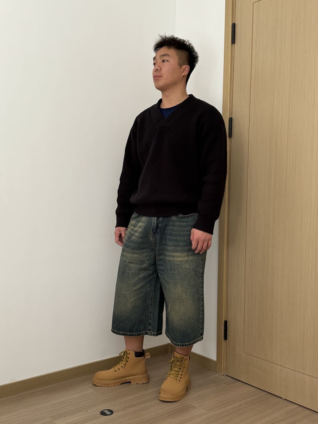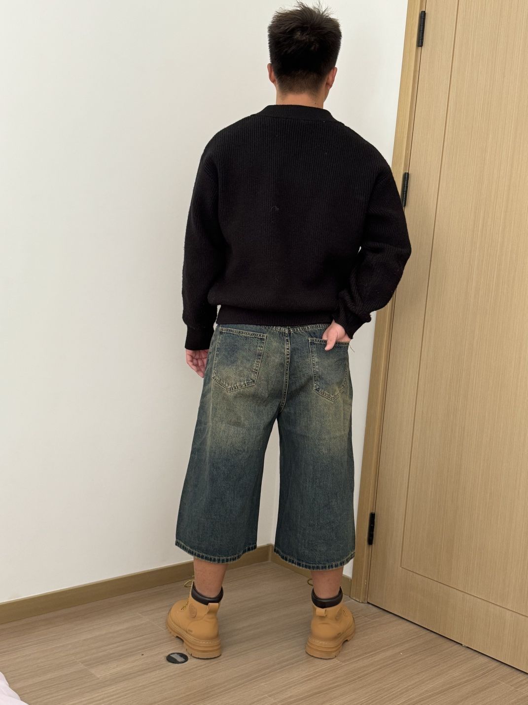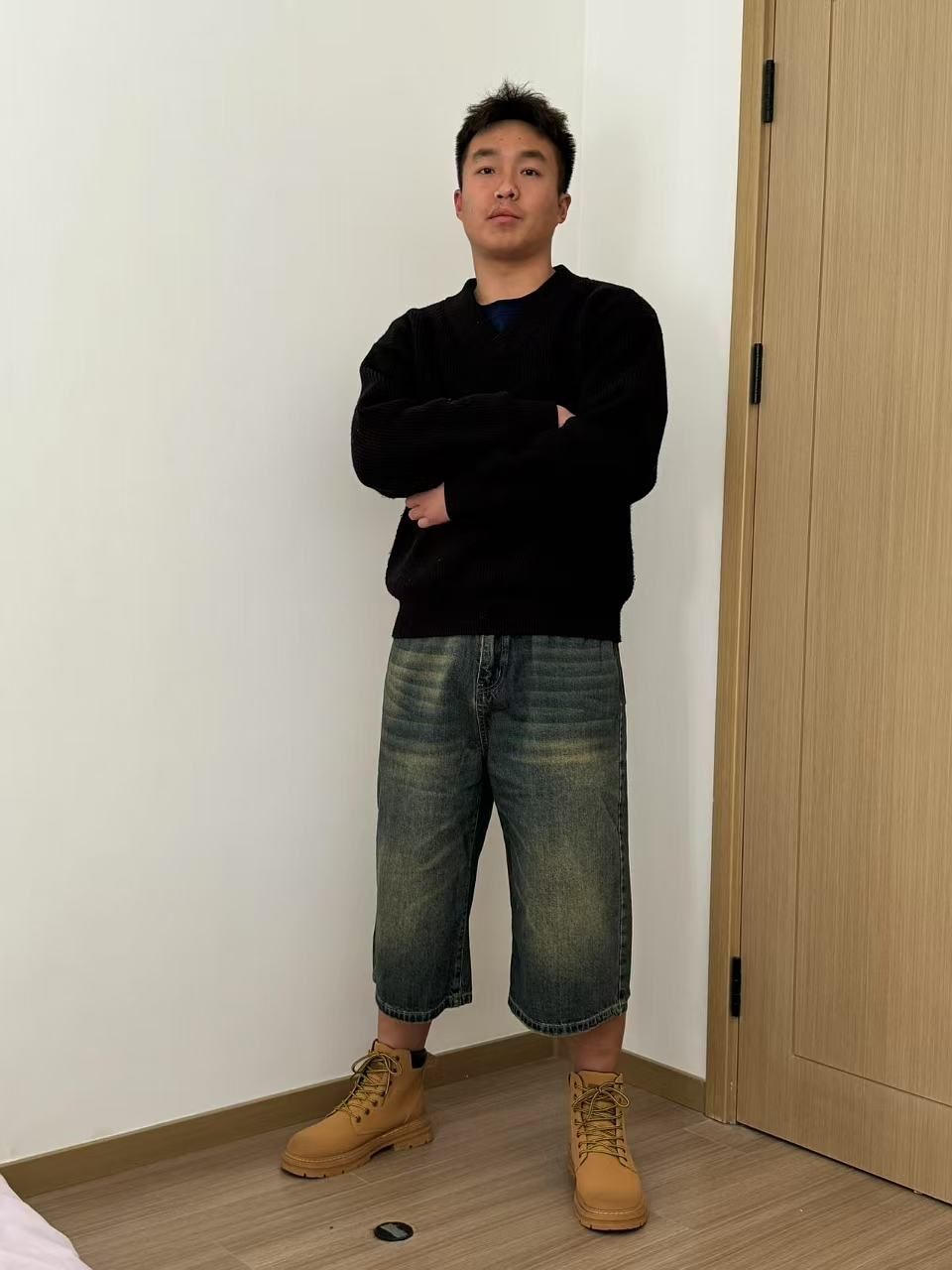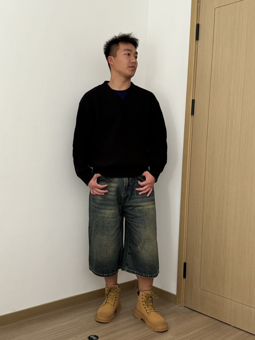 👚:黑色毛衣 👖:VOGUO RELAY七分裤 这款牛仔裤版型非常宽松,就很适合我这种大粗腿的人。 宽松版型的设计风格,非常受喜欢。穿在身上质感也很好。而且裤子又很容易搭配, 身高|体重:180 85公斤 2XL没问题