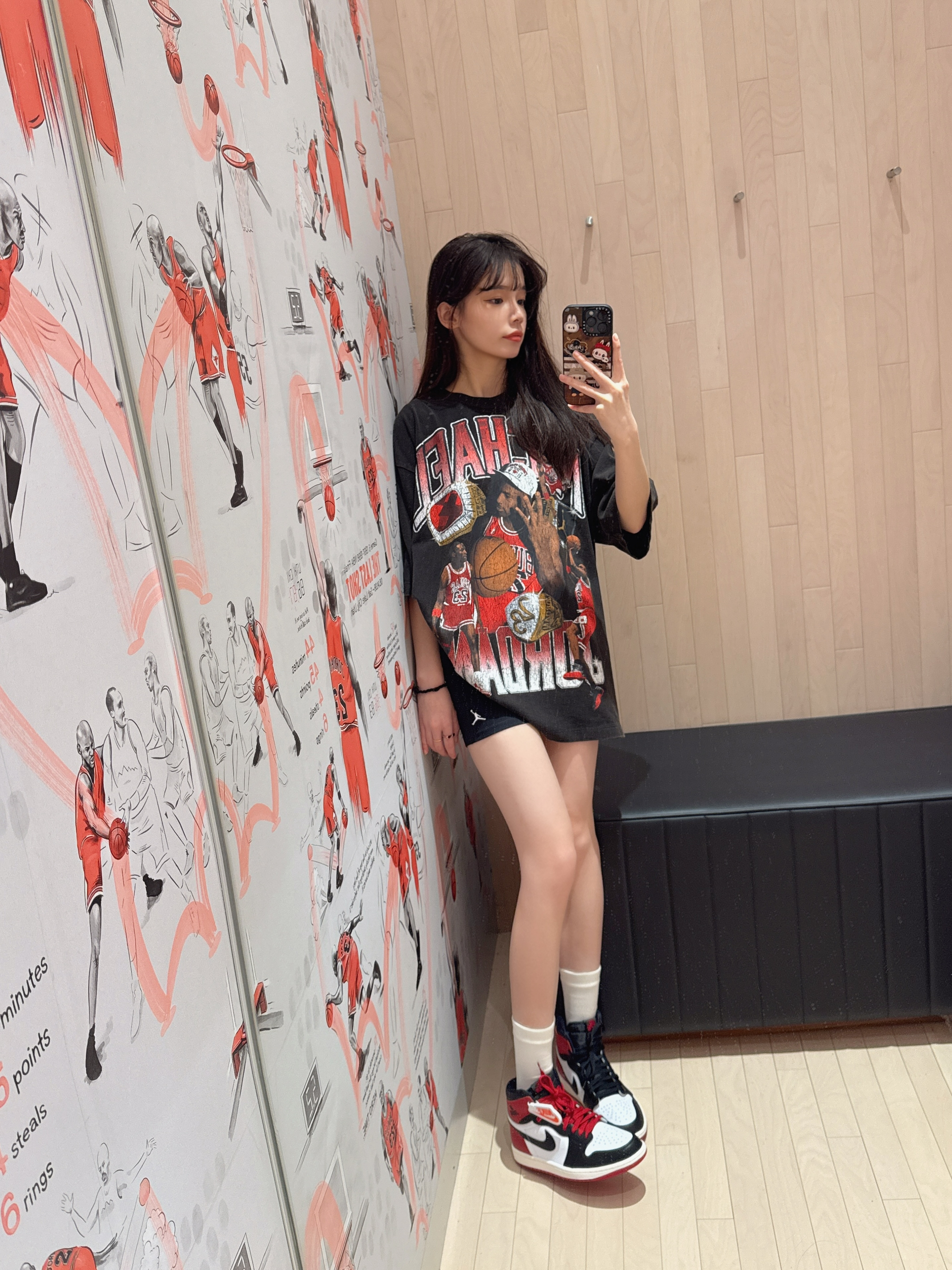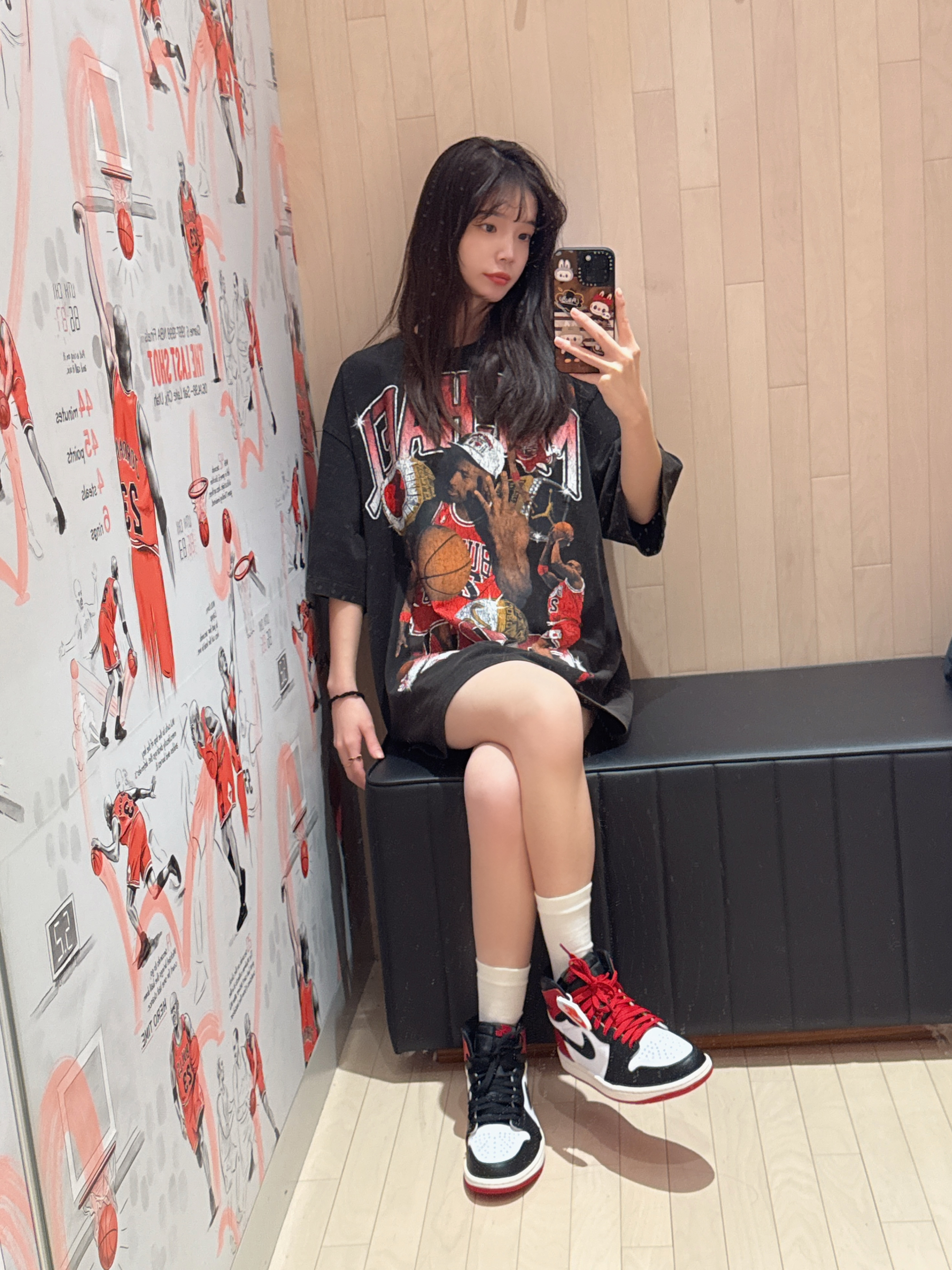 今日穿搭宽松T恤搭配AJ1高帮黑红脚趾 这套太爱穿了😭 👕男女都🉑穿哦 做旧款 宽松版型 不会太薄 立体感很👌 👟AJ1黑红脚趾主打百搭 很适合当👫款👍
