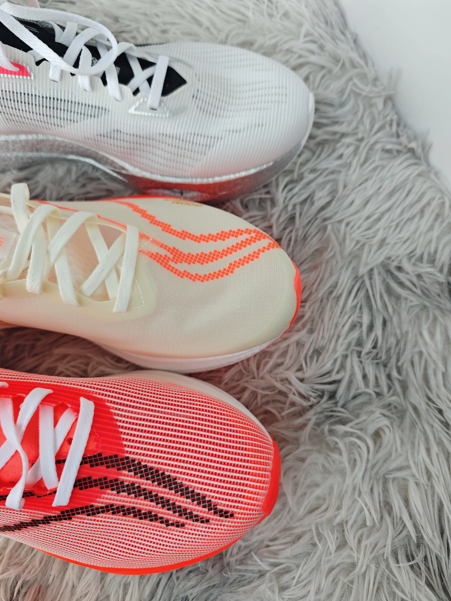 哈喽朋友们,这里是小虎 今天给大家分享三双宁子的新品跑鞋 赤兔8Pro:中底是全掌䨻➕TPU板,脚感韧弹适合通勤竞速,是三双中最适合学生党的一双 飞电5C:中底是超䨻➕碳板,脚感很软弹比较适合长距离竞速马拉松 追风Pro:中底是双层䨻➕短碳板➕弜结构,能跑能跳适合竞速,场地感很强,但是目前这个配色有些溢价 具体细节,跟着我一起来看一下吧!! 鞋 集合