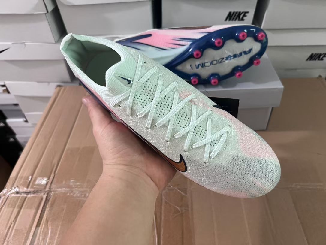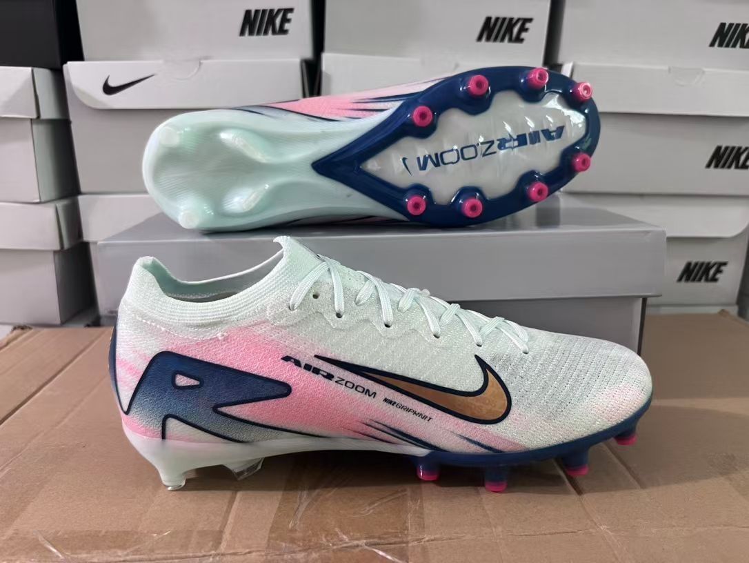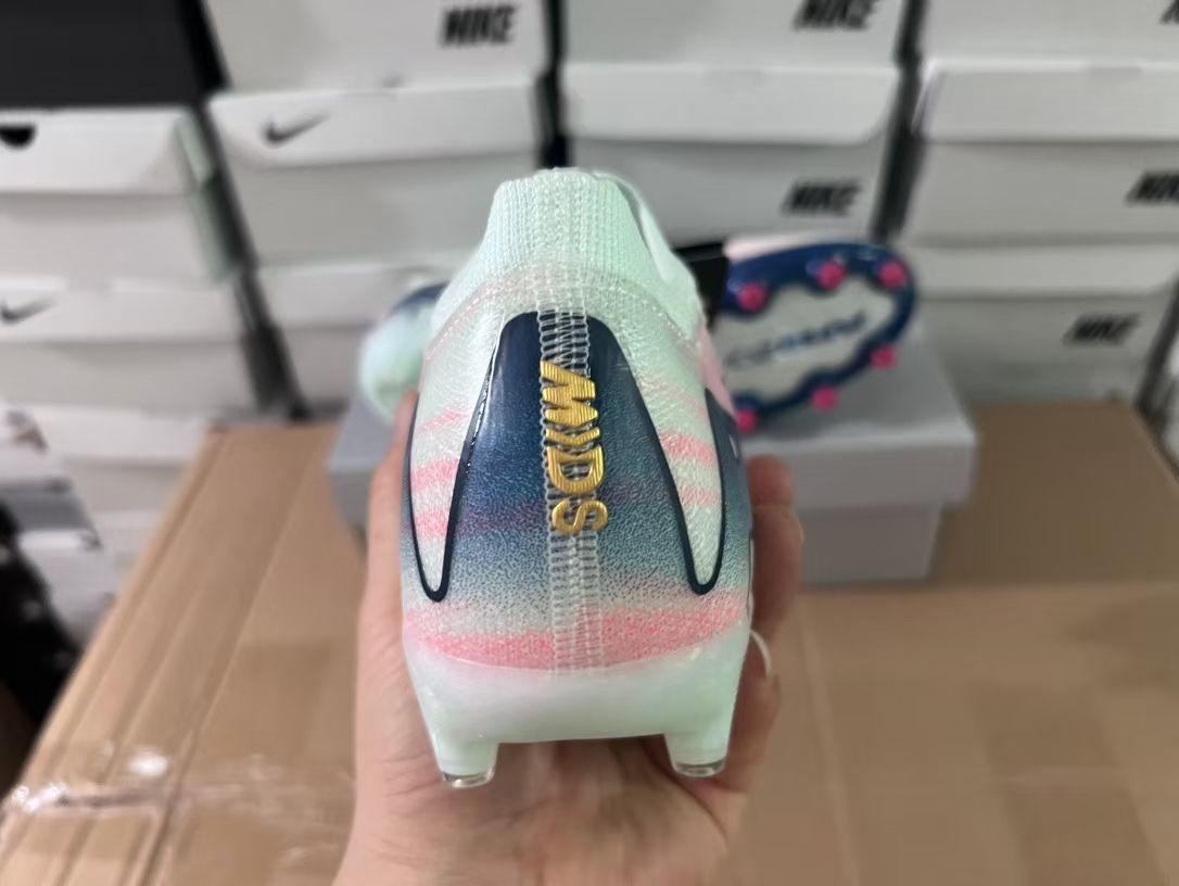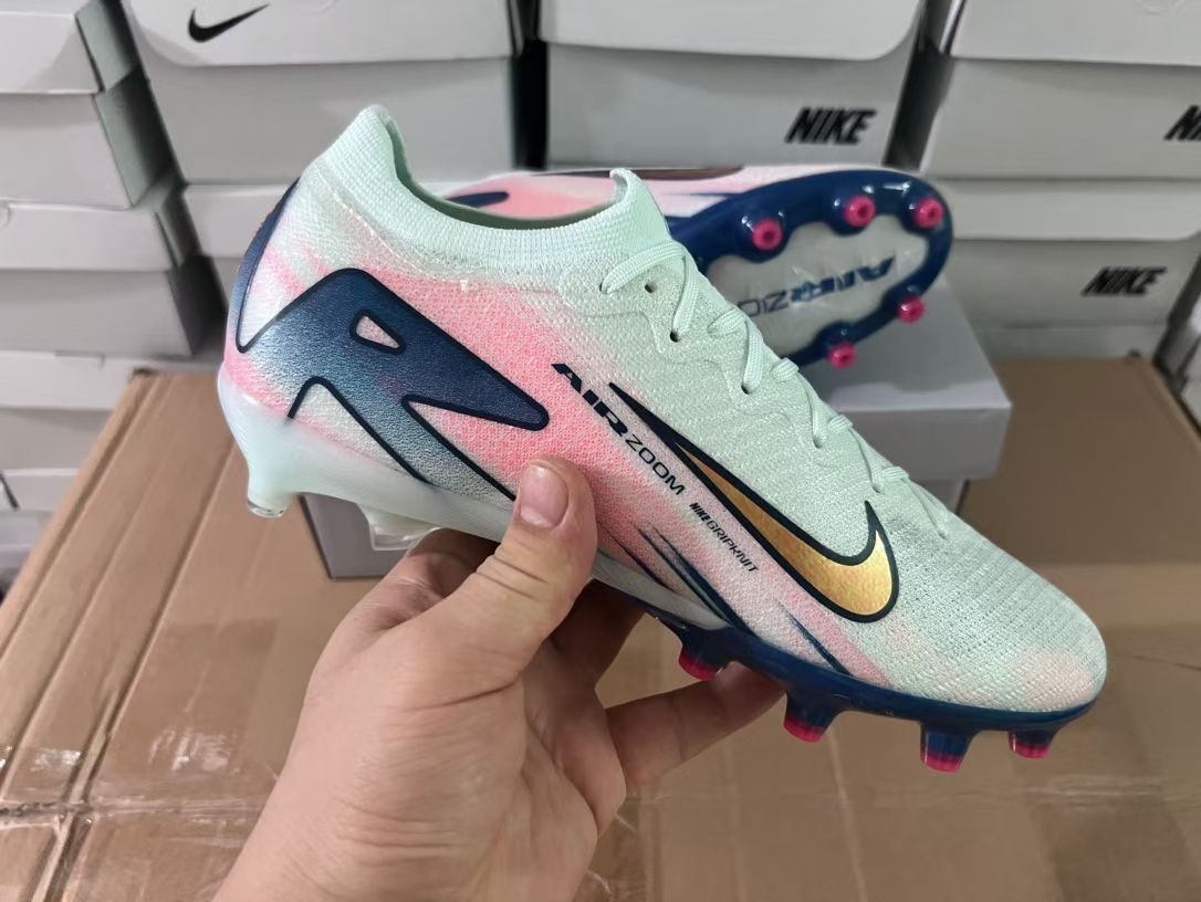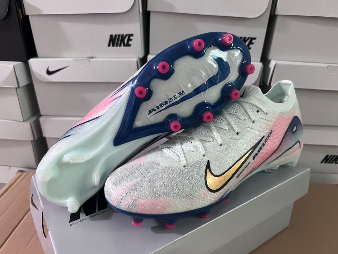 这款耐克刺客16足球鞋采用了独特的渐变色设计,由淡蓝到粉色的过渡自然流畅,给人一种清新脱俗的感觉。鞋身采用轻质材料制成,搭配AGPlate技术,提供了良好的抓地力和稳定性。金色的Nike标志点缀在鞋面上,彰显了高贵与奢华。适合追求时尚与性能兼具的球员