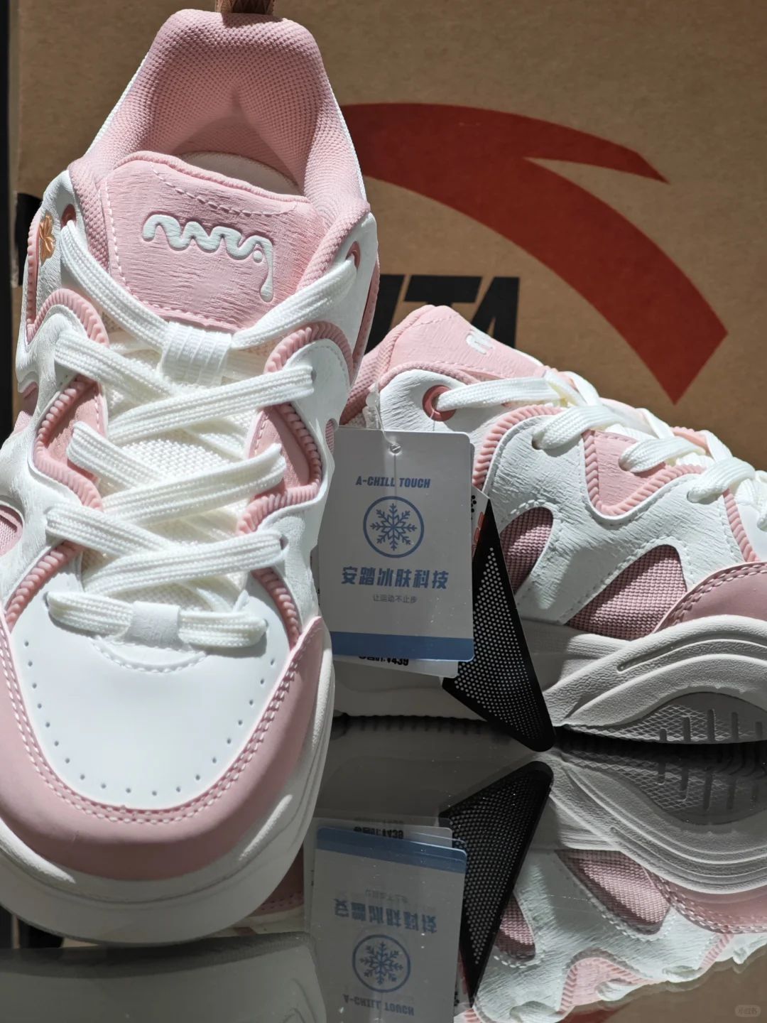 这双粉白配色的运动鞋,简直是少女心收割机🎀 波浪线条设计,时尚感拉满,细节处的小花装饰,精致到犯规。而且它还有冰肤科技,穿上超清凉~ 日常出街搭配小裙子或者休闲裤,都能轻松拿捏氛围感,走路都带风💨 别管我了,我要穿着它美美的过春天! #安踏