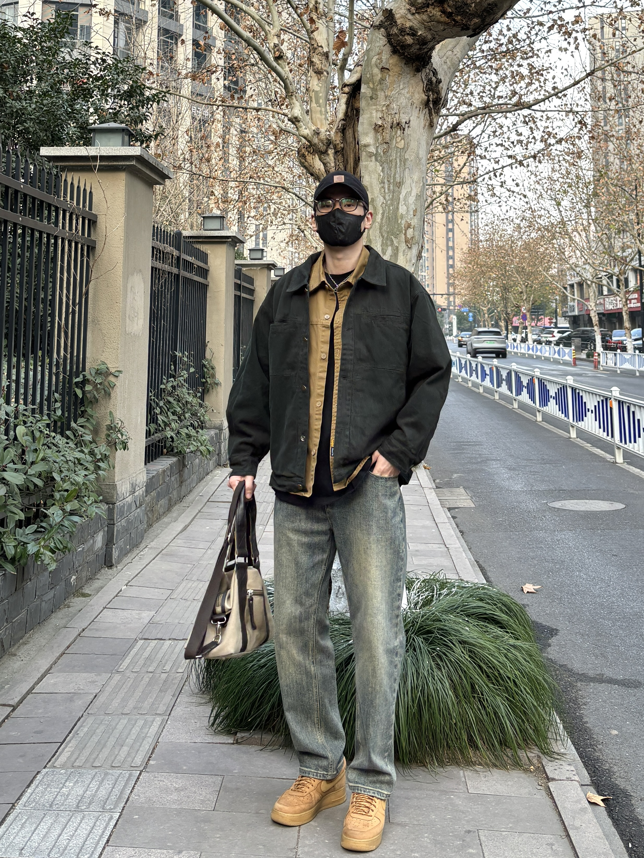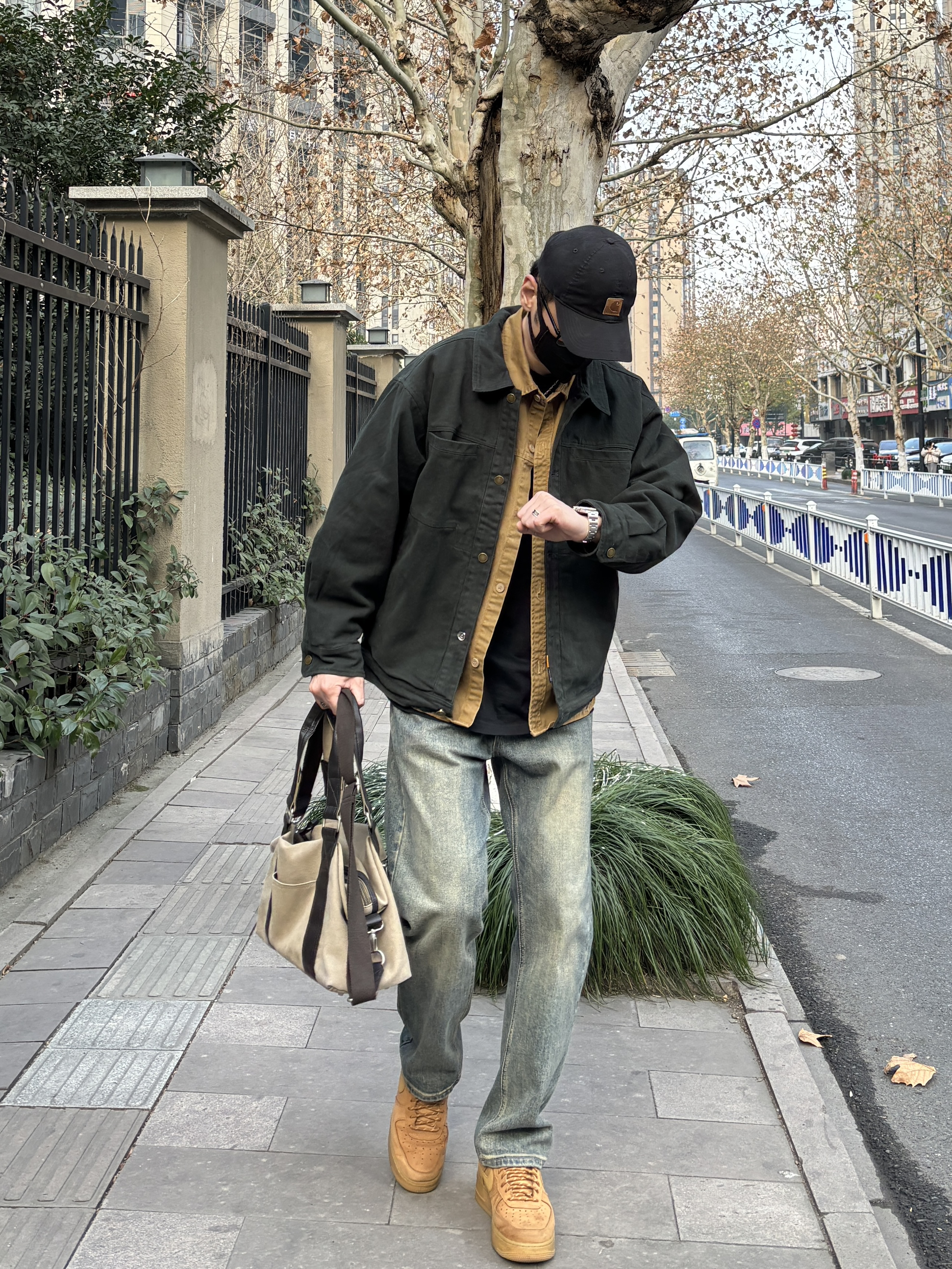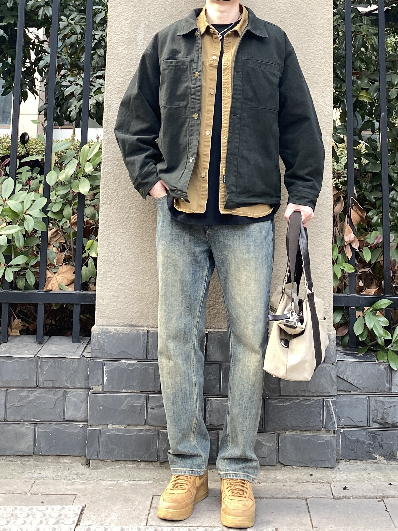 今天这套先用卡其色做旧工装衬衫做叠穿 ⬇️ 裤子选择经典百搭的蓝色直筒水洗牛仔裤 ⬇️ 鞋子上脚简约大方的小麦色af1 ⬇️ 接着套上质感十足的绿色宽松阔版多口袋翻领工装夹克 ⬇️ 最后戴一顶棒球帽点缀下整体穿搭 - 今日搭配 衣服裤子:NICE LILI 鞋子:timberland