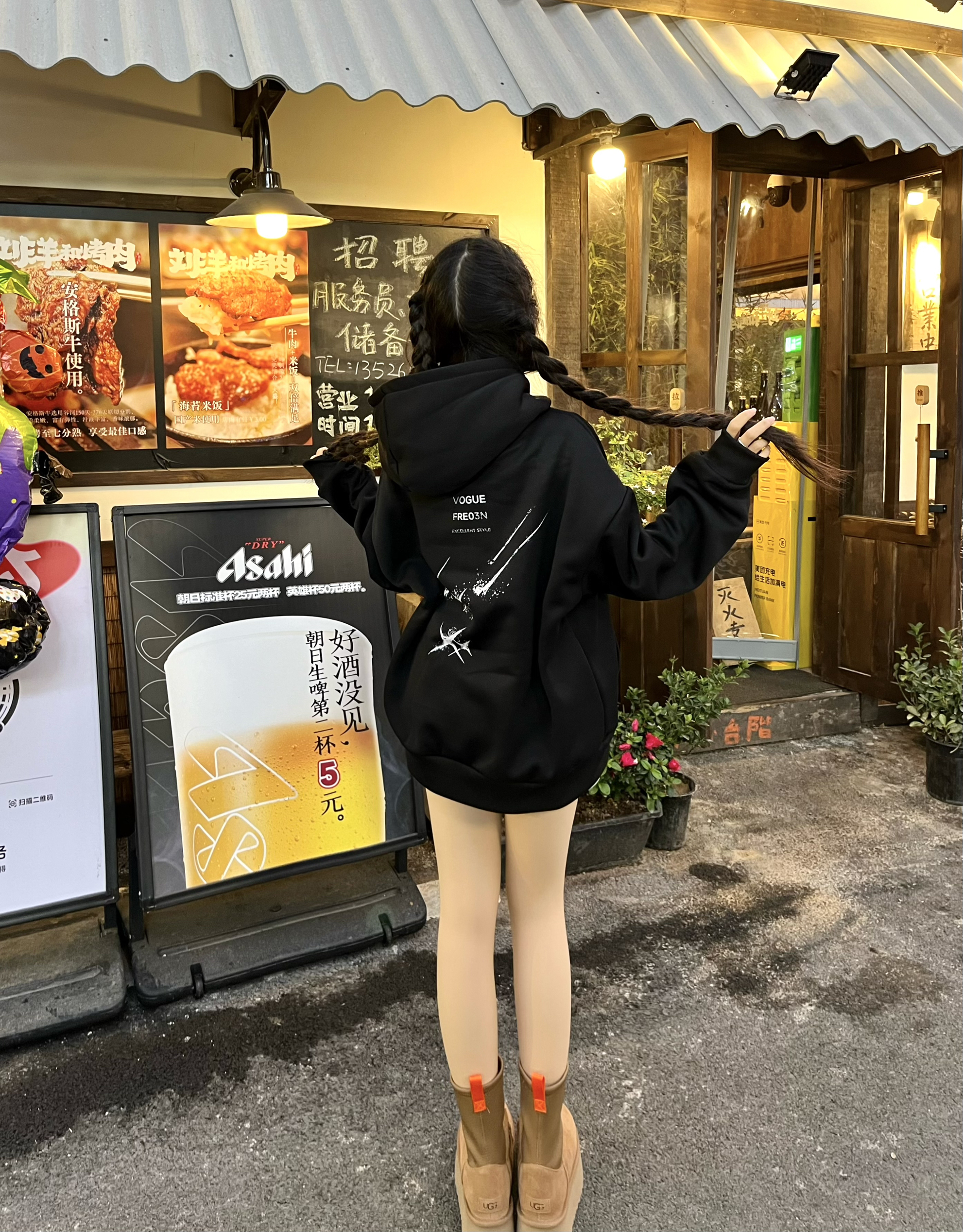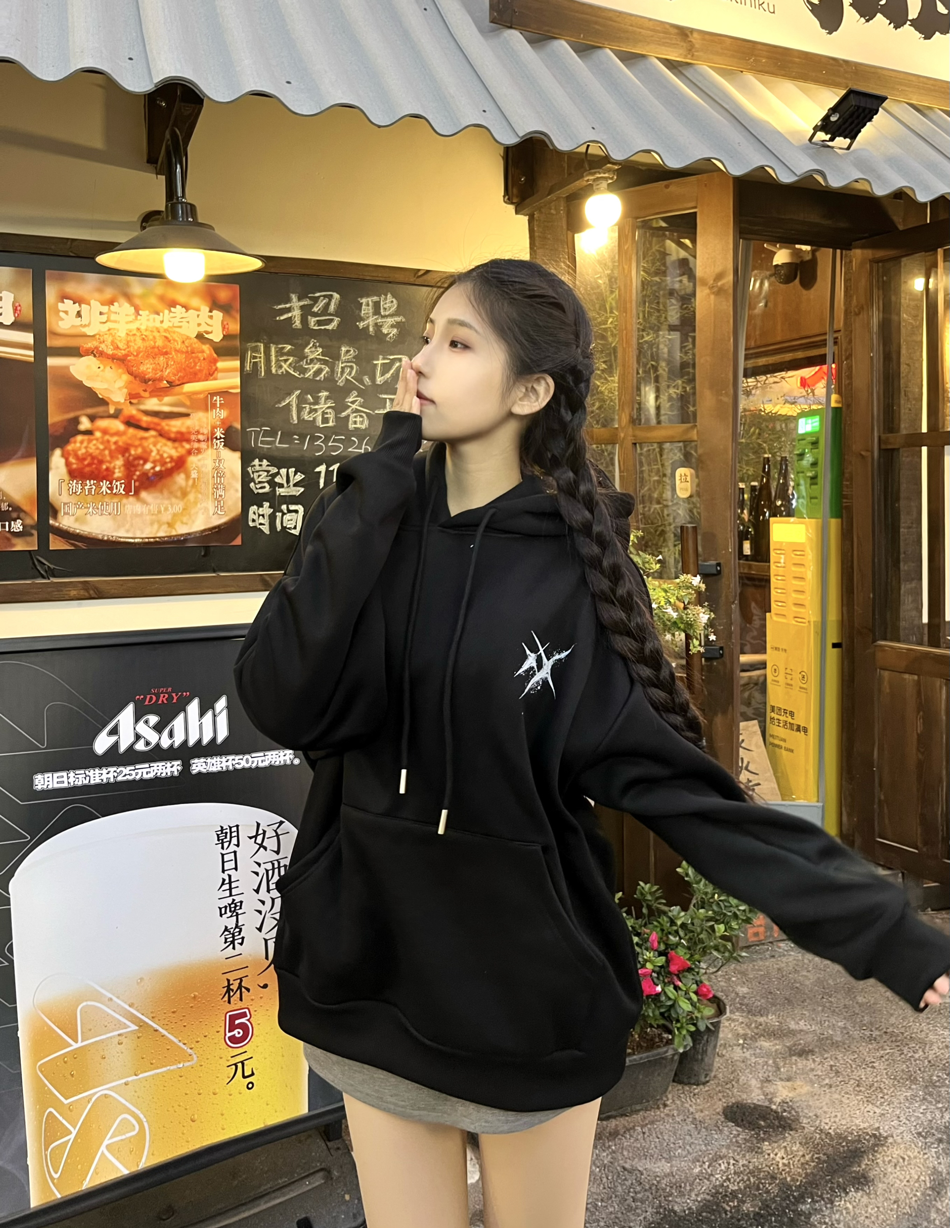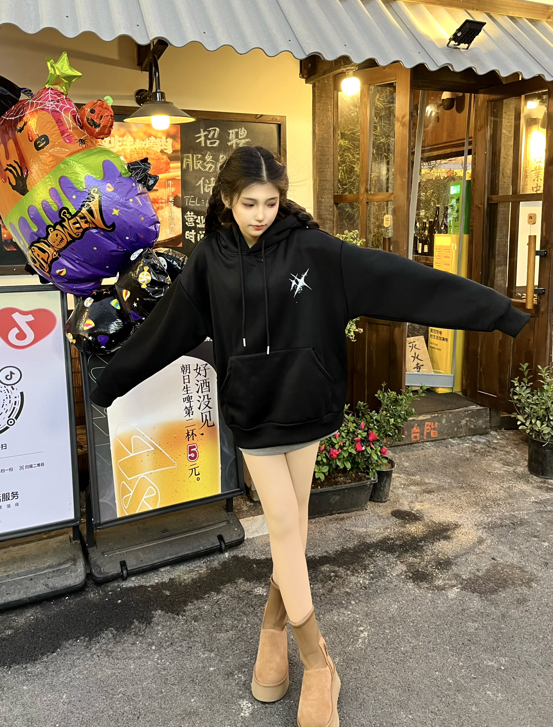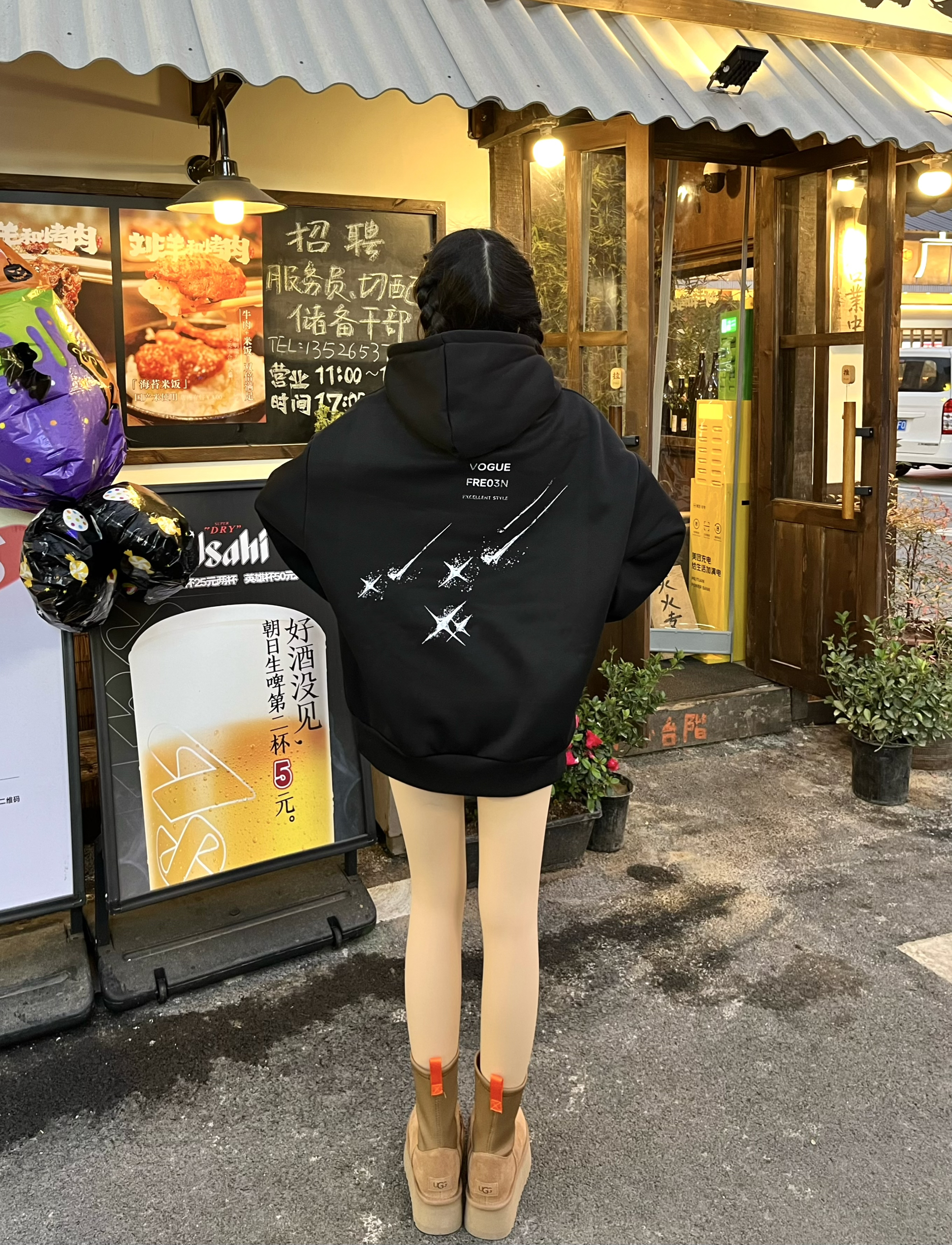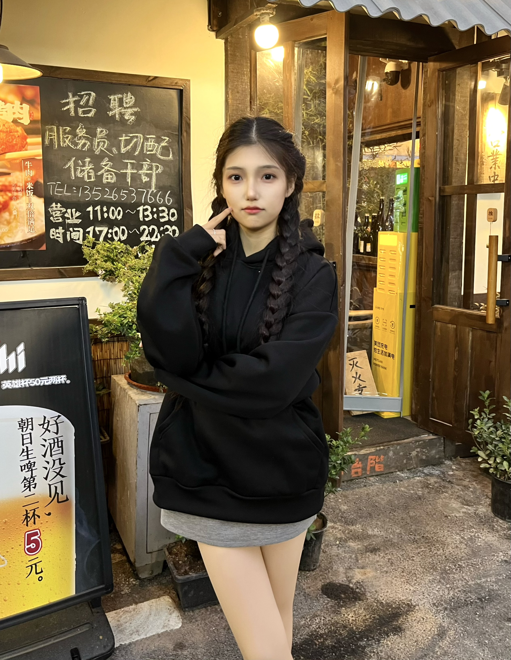 一件潮牌又高级的黑色连帽卫衣! 舒适慵懒还显高👌 男女都可穿的连帽设计 既能保暖拍照凹造型更是绝了! 挺阔有型🤩🤩🤩 适合各种身形的宝子~ 领口设计尺寸也不勒脖子! 帽子上抽绳一拉不仅防风保暖☁️ 还秒变街头最酷的崽! 无论是搭配牛仔裤 还是休闲裤都能轻松驾驭🆙🆙🆙