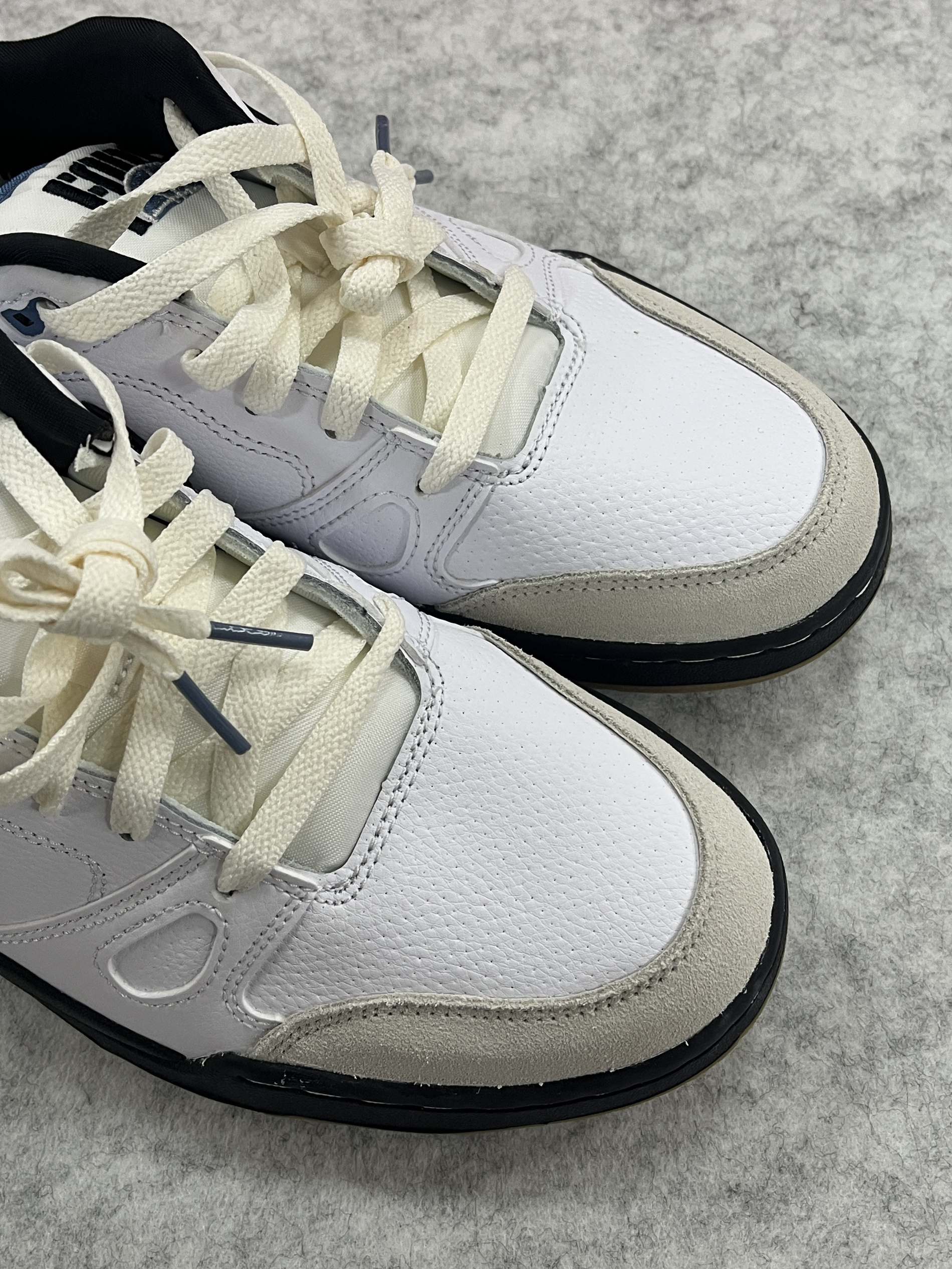 尼克家的小板鞋 撞色拼接还怪好看百搭的 鞋头用的麂皮 挺耐造 虽然是白色但好再好打理 脚跟经典的刺绣1ogo 质感满满~