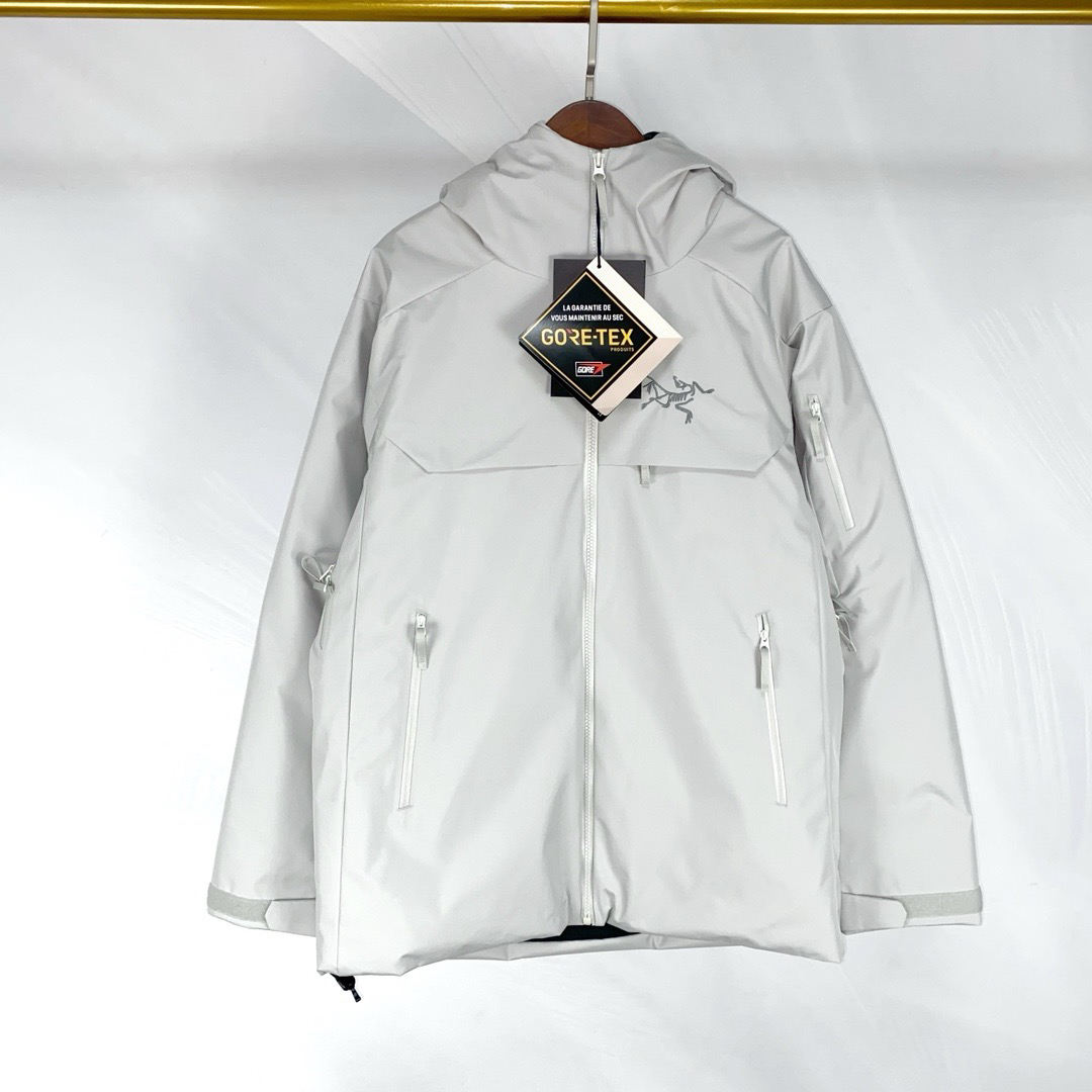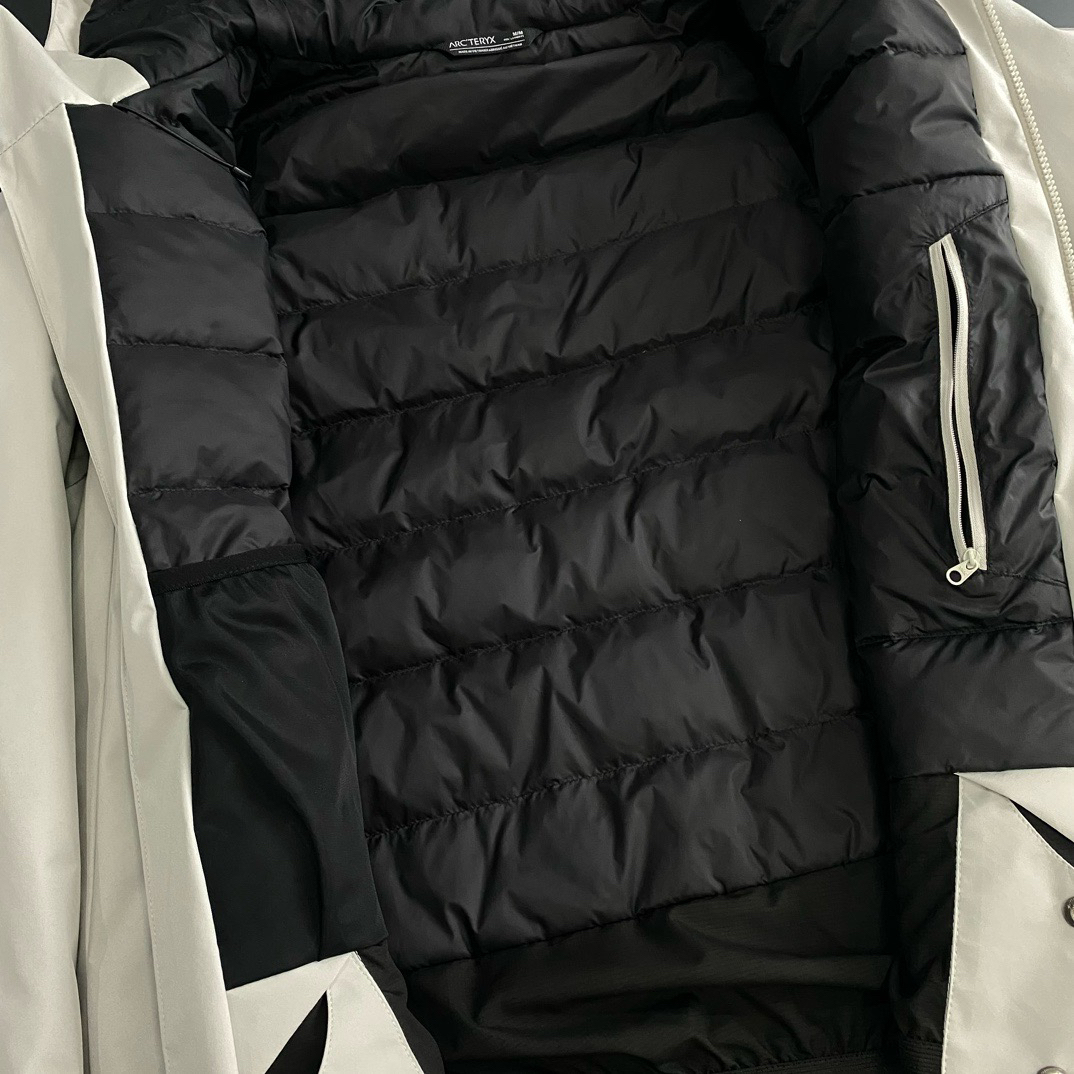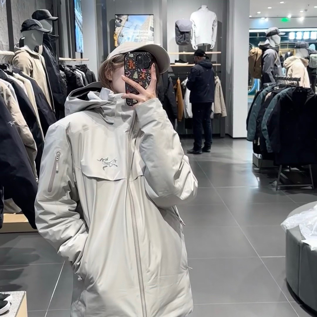 **颜值与性能并存** 暖石灰配色高级百搭,硬壳+羽绒设计,户外滑雪、城市通勤都能hold住,一衣多穿超值! #### 2. **保暖性能MAX** - **850蓬松度鹅绒**:轻盈又保暖,-10℃也不怕! - **Corelo™棉复合层**:肩肘加固,背包滑雪也不压扁,保暖不打折。 #### 3. **防风防水硬核防护** - **Gore-Tex 3L面料**:暴雪大雨都不怕,全压胶接缝滴水...
