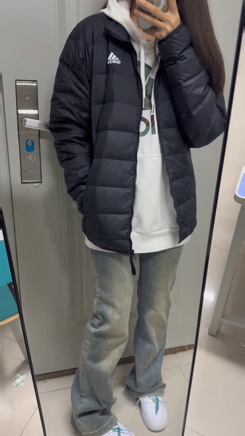 这么大的羊毛被我薅到了 经典三条杠设计 袖子上还有个阿迪的logo 穿上很有古早感 性价比很高 学生党闭眼冲