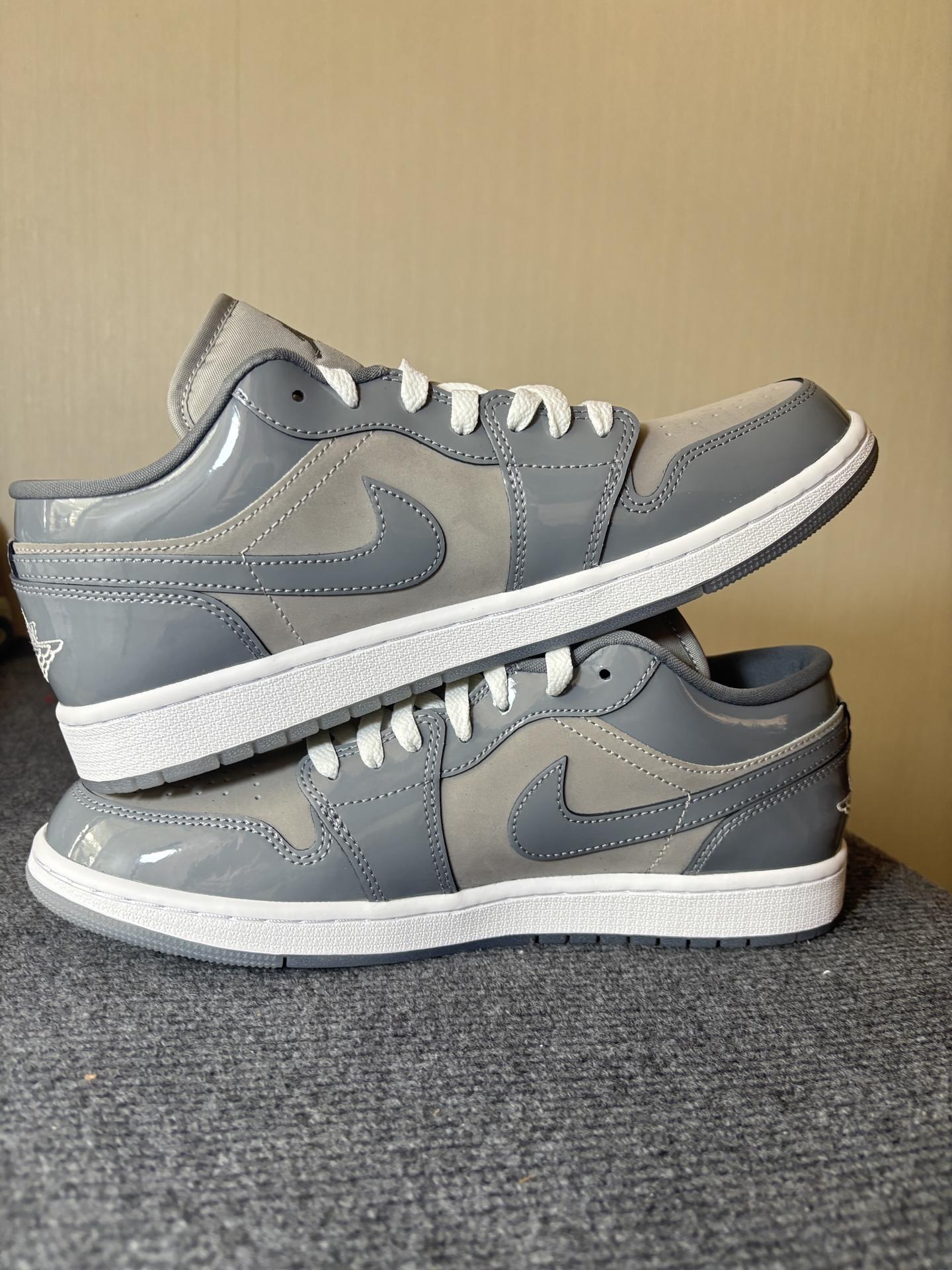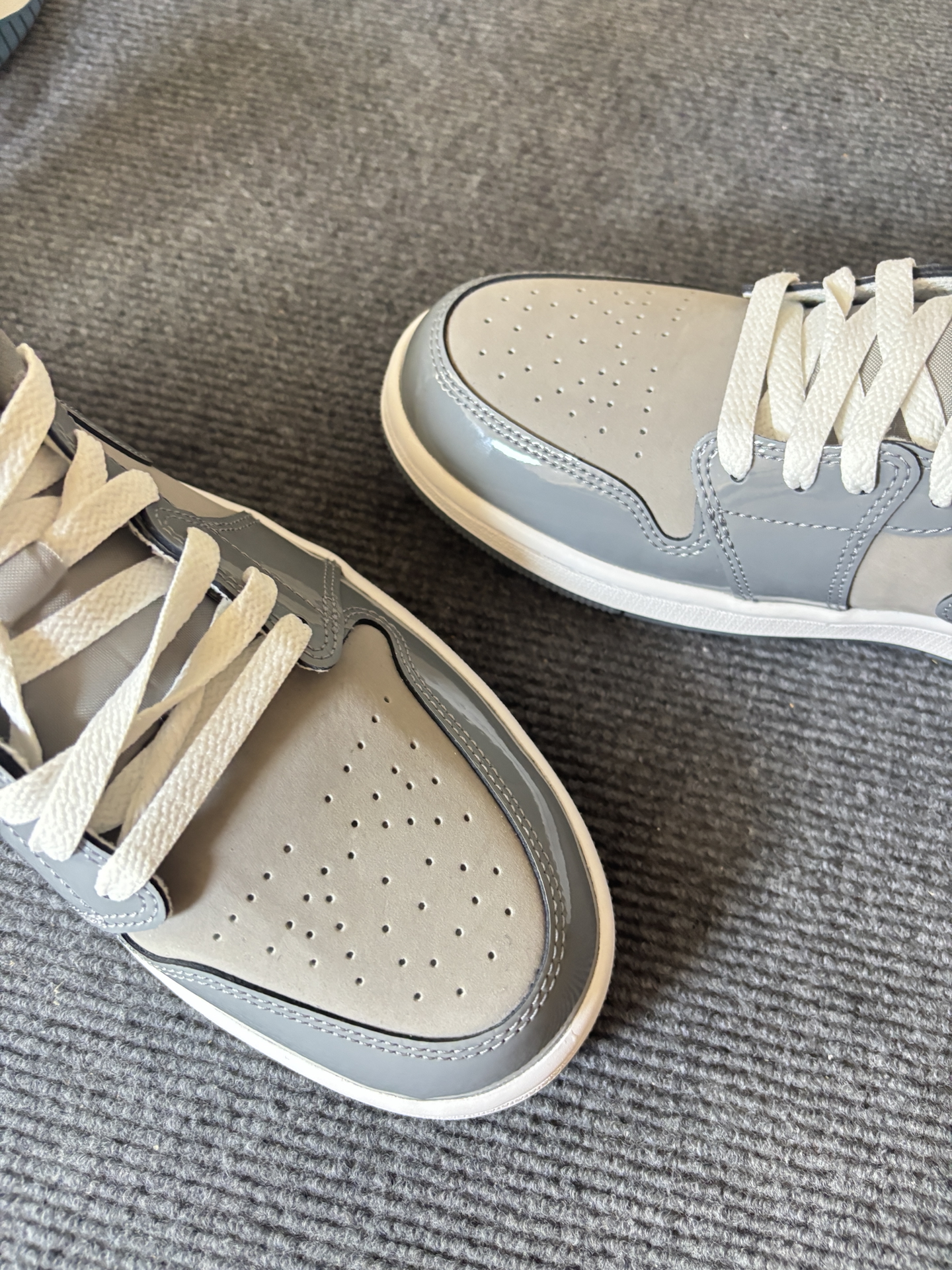 哈喽大家好,我是东契奇__77 今天分享一双百搭又好看的AJ 1 今天分享一双好看又便宜的AJ 1 漆皮与牛皮革拼接的一款🌈 这次的材质还是较好的 鞋头容易褶皱(搭配个鞋盾比较好)👍 颜色还是比较耐脏的☁️ 脏了的话也比较容易打理 皮革亮面低点又奢华的烟灰色 气质完美拿捏❤️ 日常穿搭真的是炒鸡好看 穿上它出门得有多帅气啊 尺码正常选择就行 鞋