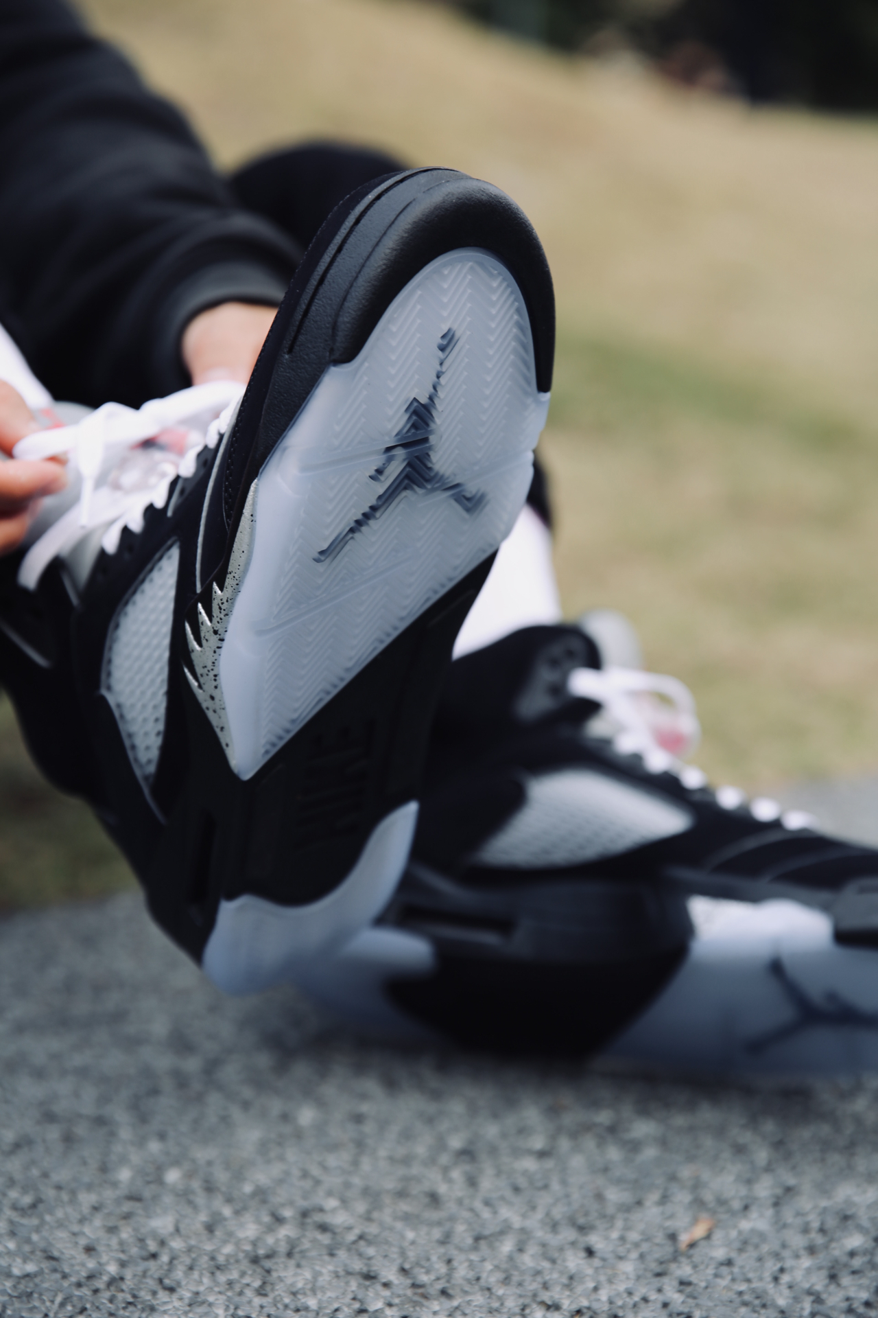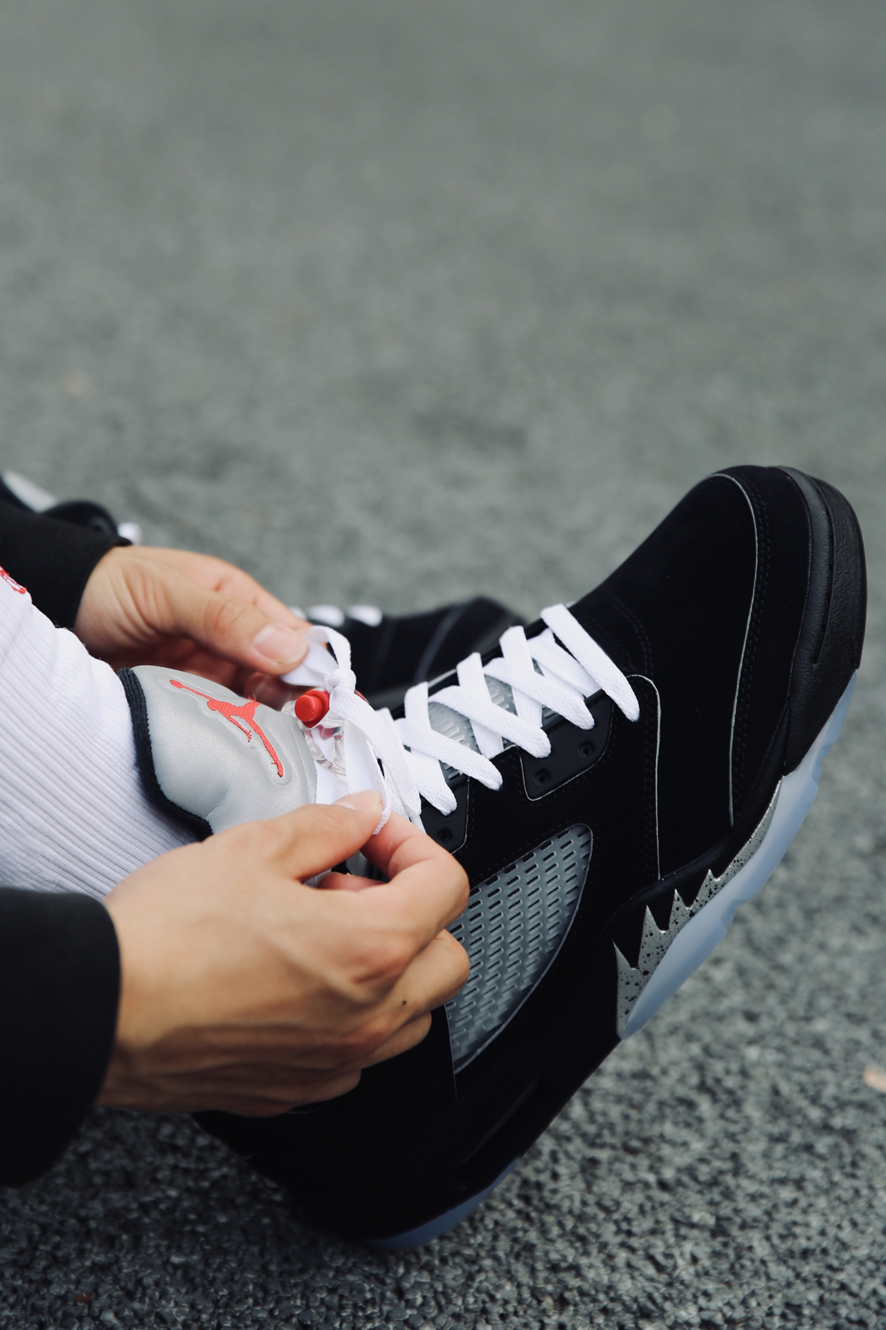 最近几天一看价格吓一跳: aj5什么时候这么火了? 不管了 先穿上再说[耍帅_blue] 不得不说麂皮上脚确实帅啊 白鞋带系上,一整个就是清爽![冲鸭_blue] 这次的做工也蛮不错的 溢胶褶皱我这双都没有 鞋带厚实,不像aj4那样薄 皮质细腻,就是容易粘灰,得不定时清理一下 后期等个1300不知道能不能实现[偷看_blue]