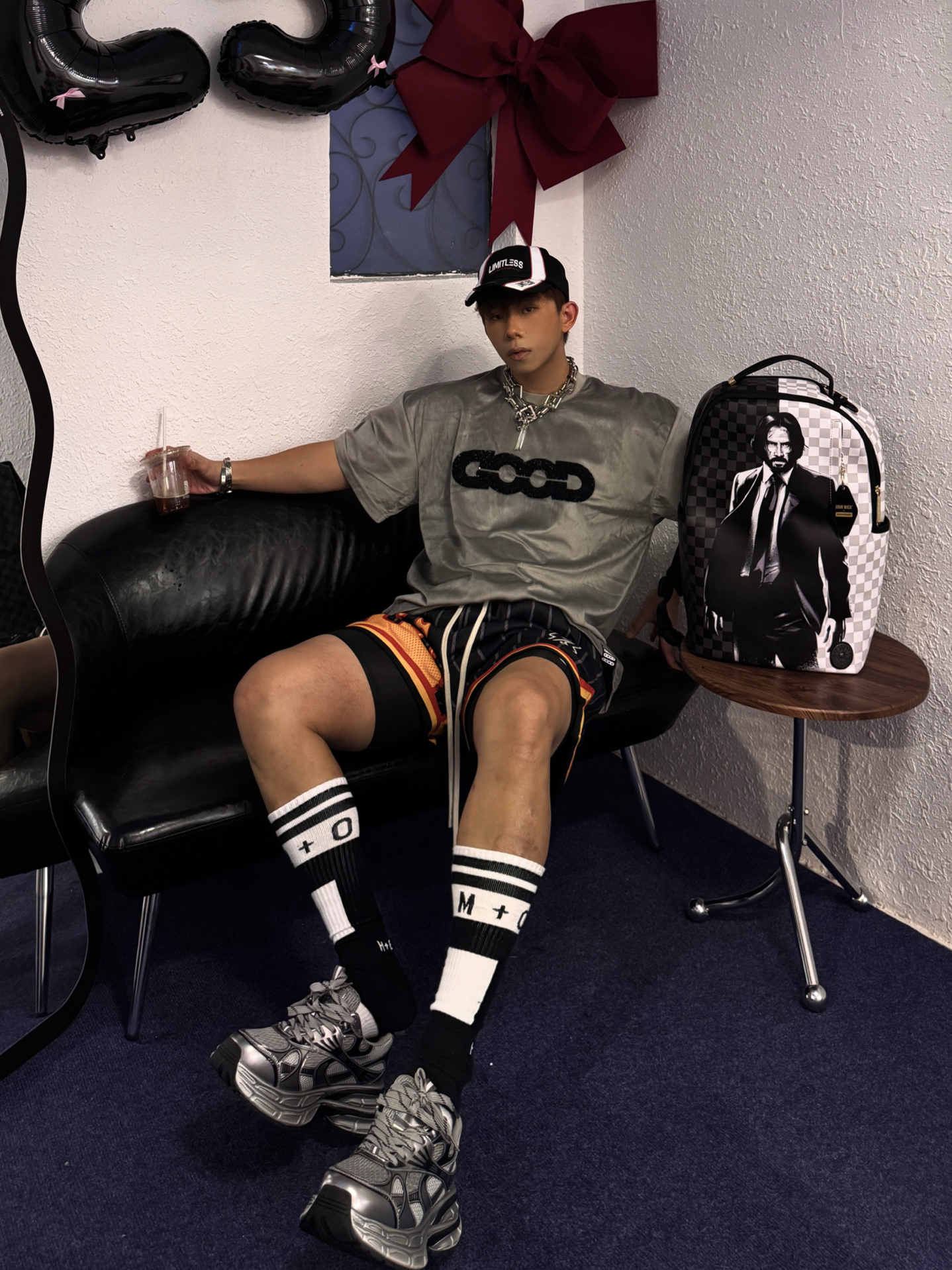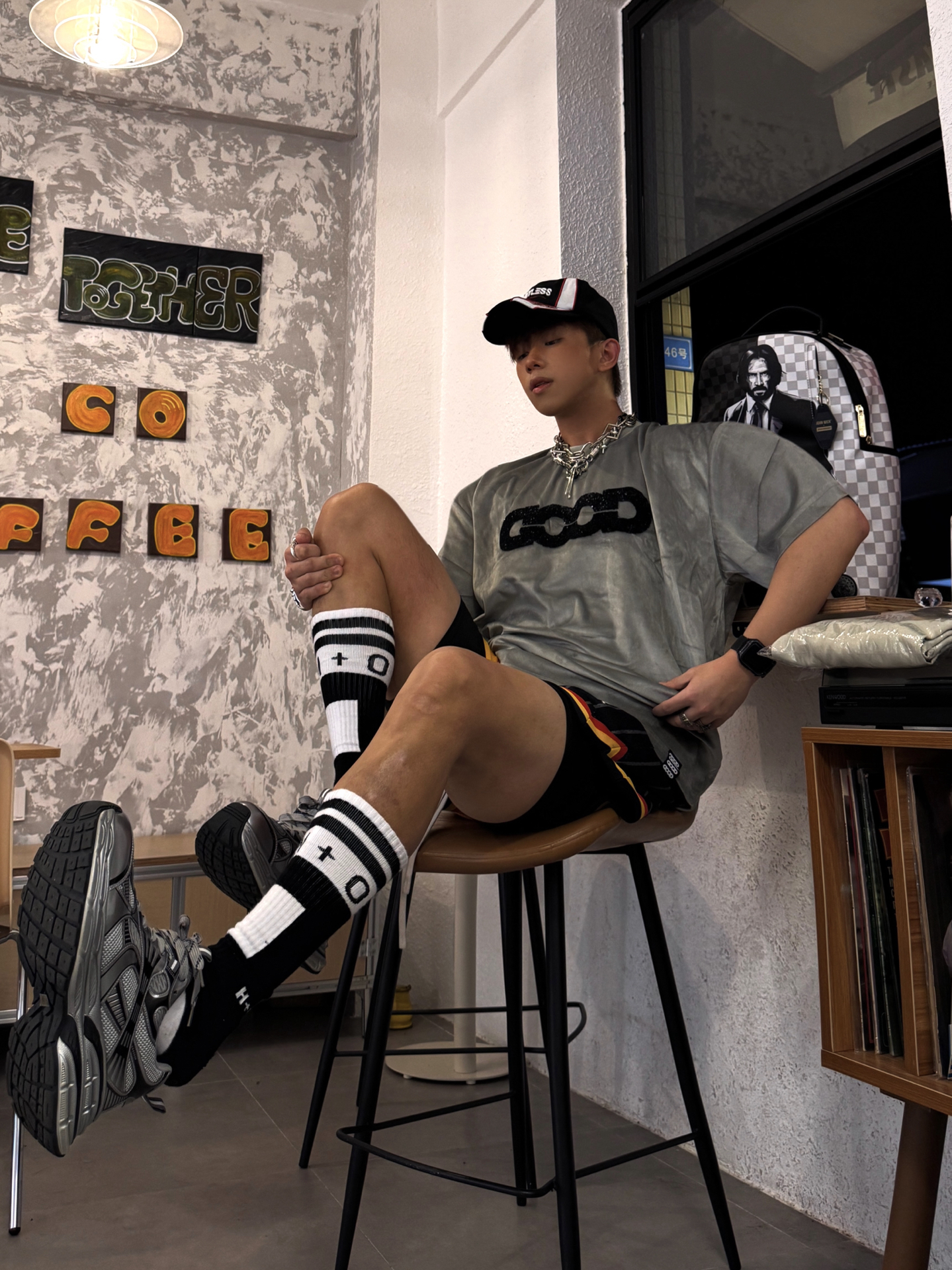 广东天气逐渐升温了♨️ 这不开始穿短袖了! 今天上身来自good的闪耀珠片t恤👕 浅灰色的配色 介于白色和黑色之间 更百搭时尚 宽松的衣服版型 上身更显身材比例⚡️ 随意拿捏轻松chill又美式慵懒的风格🤌🏻 丝绒的面料设计 上身更加亲肤和舒适 特别喜欢胸前logo闪钻的设计 十分有设计感和巧思💥 再搭配一条美式短裤➕灰色老爹鞋➕美式鸭舌帽 上下颜色相互呼应 整体协调又时尚 天气逐渐升温 这么...