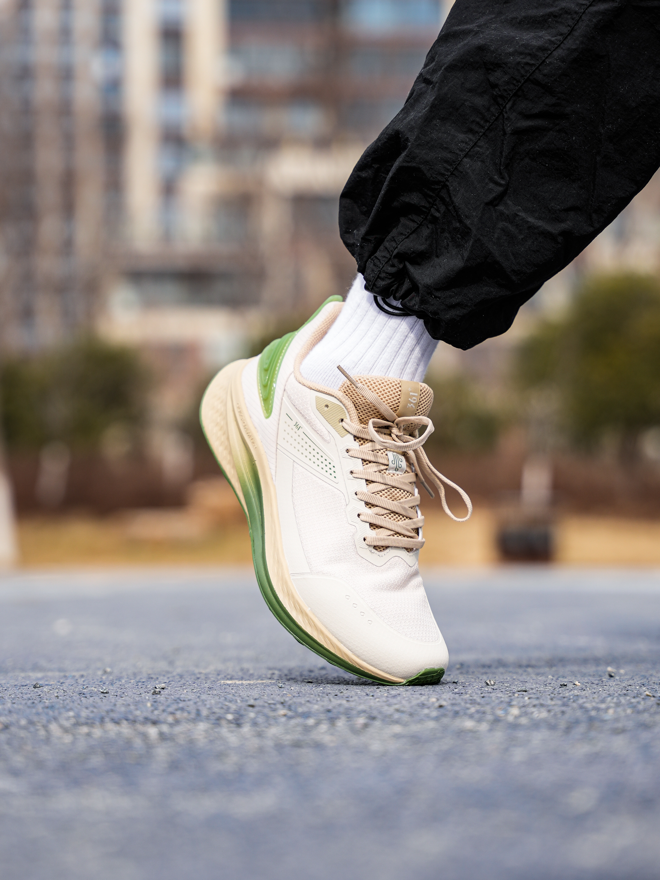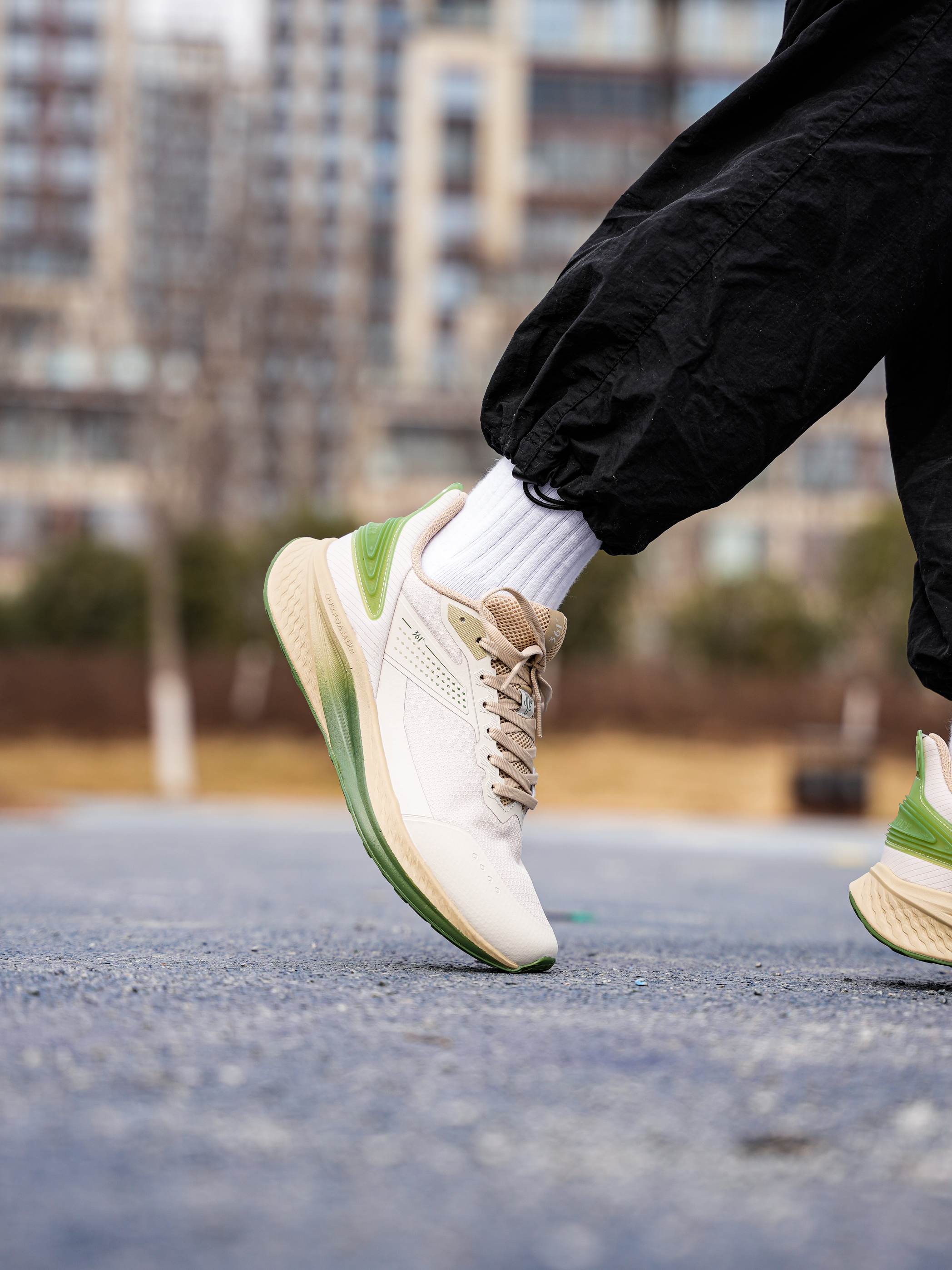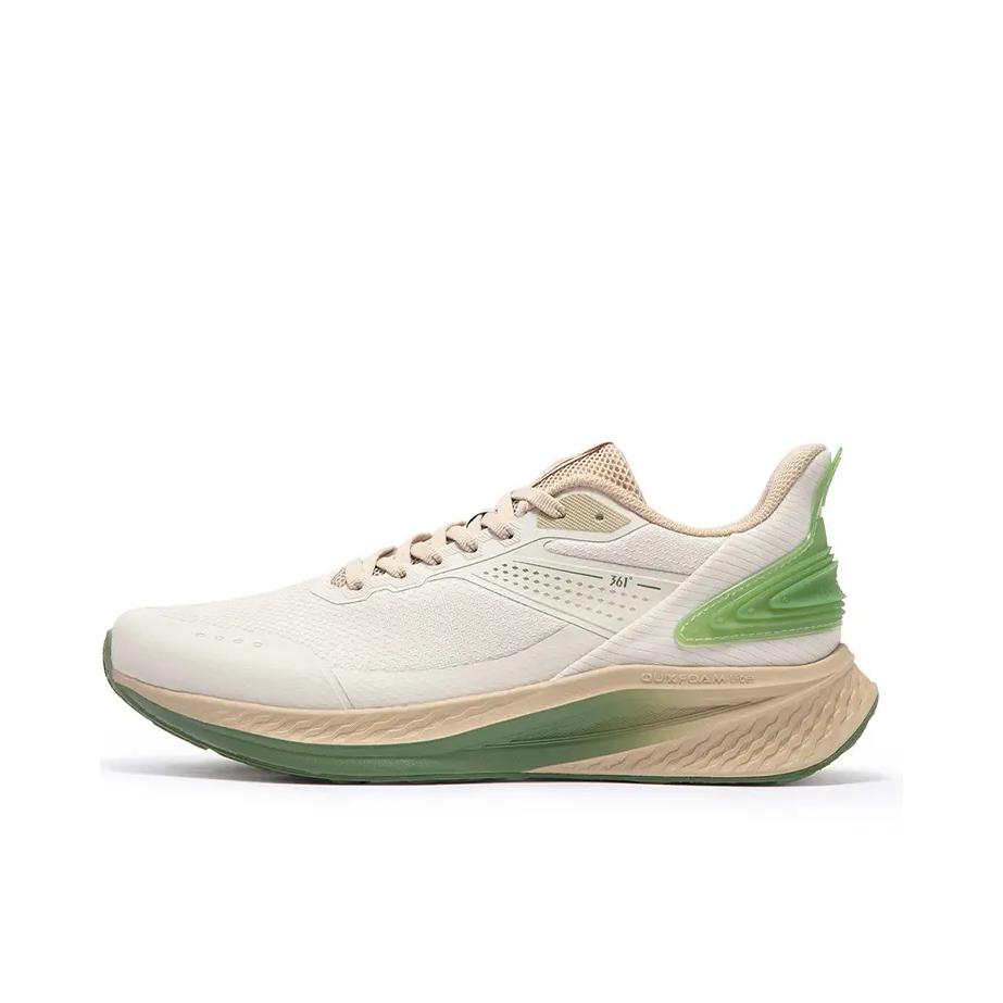 上脚的这双 361° 跑鞋还是蛮适合日常通勤或者体课来穿,一百多也比较平价并且还有不错脚感~ 我这双是米色➕绿色,入春这个配色也比较清爽有活力感! 脚感偏柔软,大体重也可以穿,同时前后弧度平缓,穿起来也不会累脚 ,透气也足够! 尺码不偏 正常选择即可!