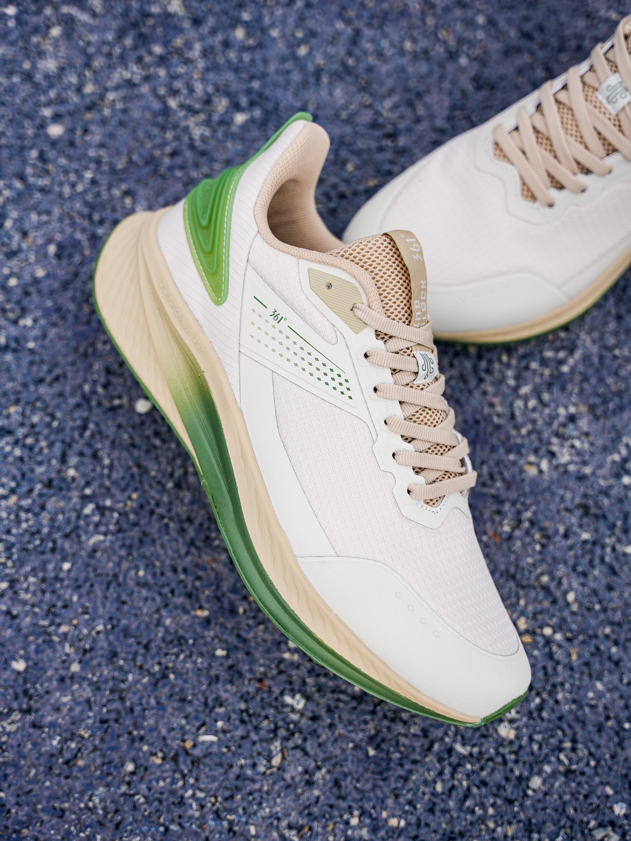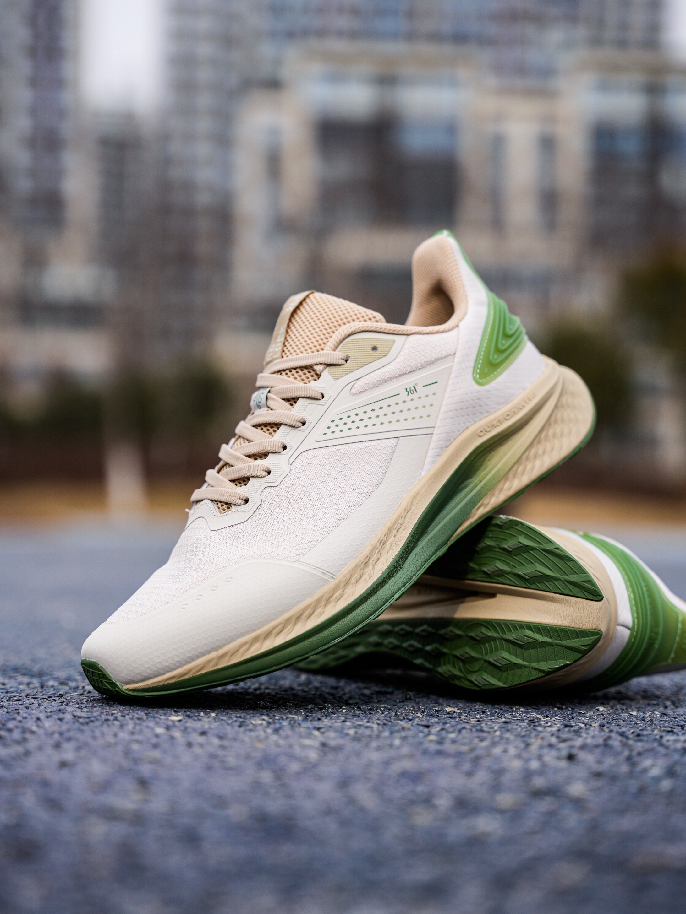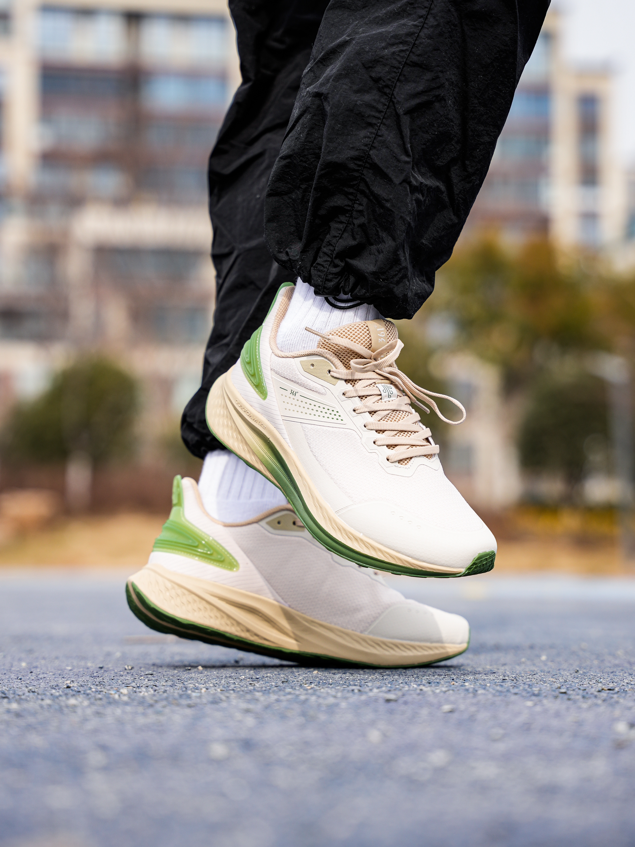 上脚的这双 361° 跑鞋还是蛮适合日常通勤或者体课来穿,一百多也比较平价并且还有不错脚感~ 我这双是米色➕绿色,入春这个配色也比较清爽有活力感! 脚感偏柔软,大体重也可以穿,同时前后弧度平缓,穿起来也不会累脚 ,透气也足够! 尺码不偏 正常选择即可!
