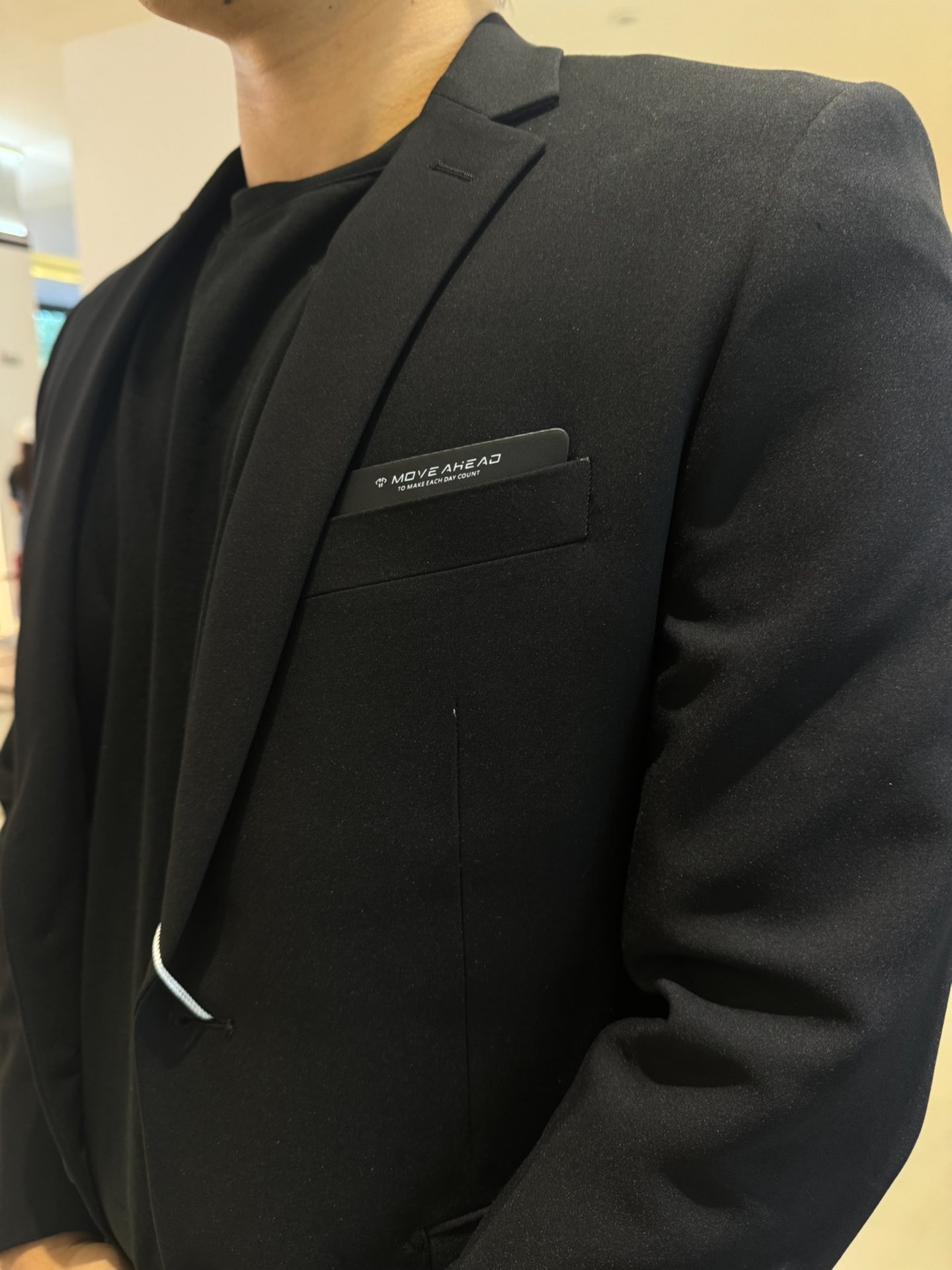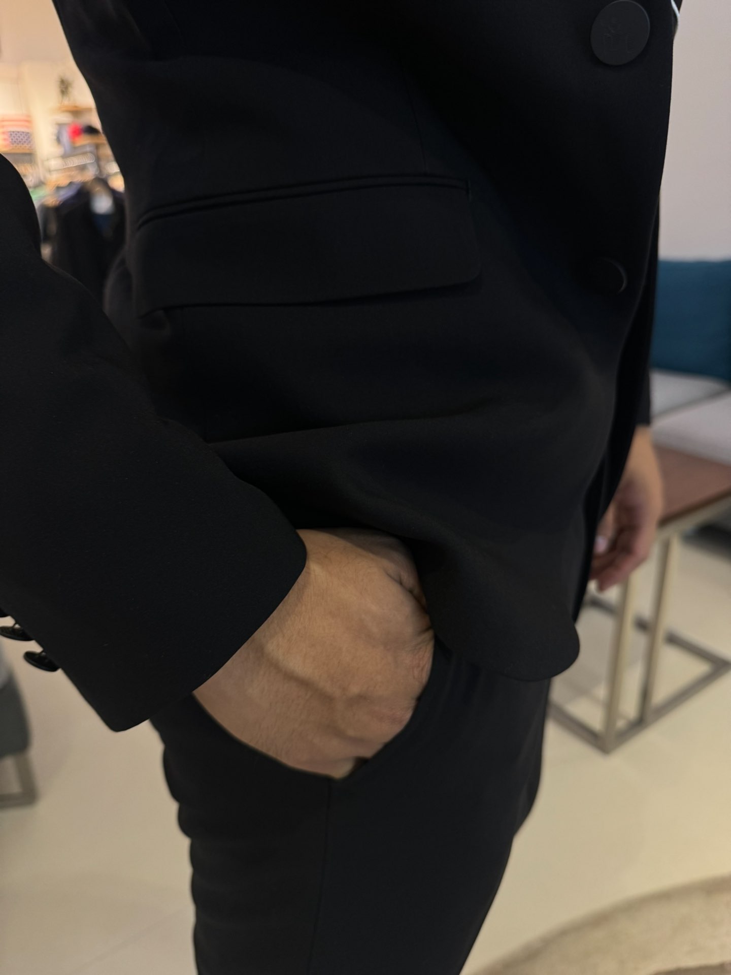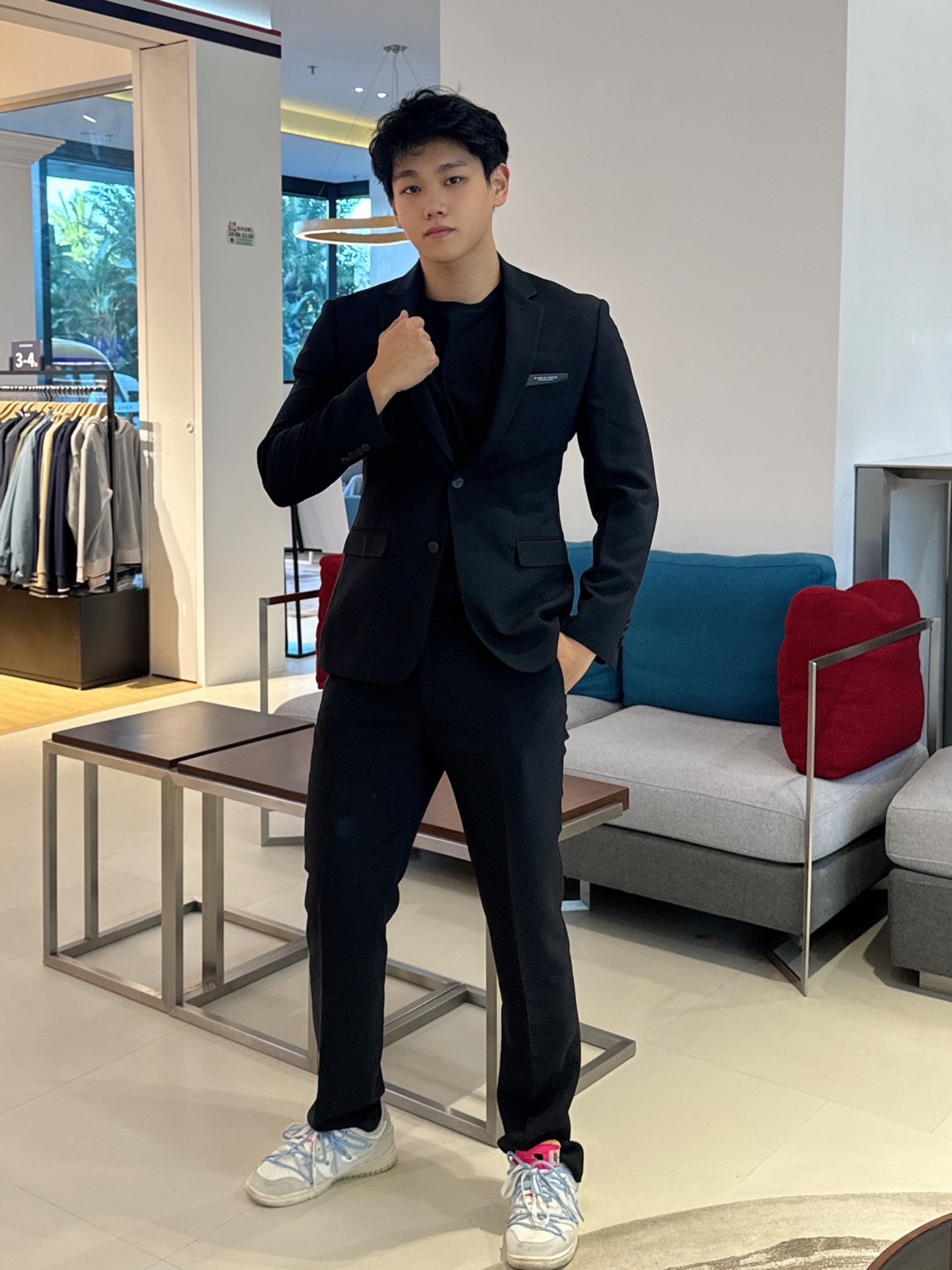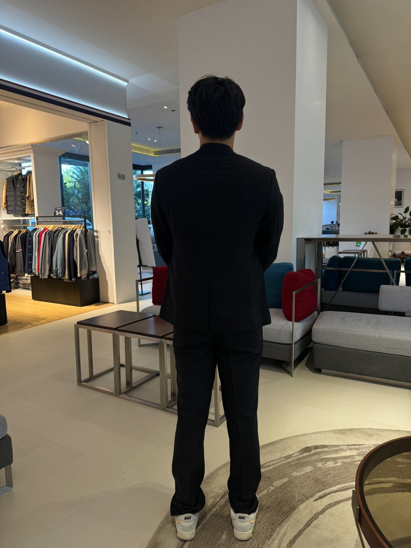 🌟:这是海澜之家的一套西服,整套西服是一个很经典的黑色系颜色,是很适合男士的颜色哦!这套西服的我最喜欢的点是它的版型,穿上之后是很修身的,一点也不会觉得臃肿。这套西服可以驾驭很多场合,有需要西服的宝子可以直接冲了! 🧍♂️:182 75kg ❗️尺码:XL 图片源于网络侵删