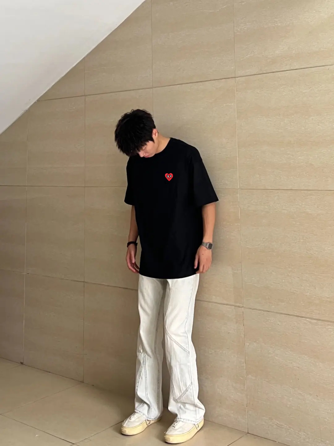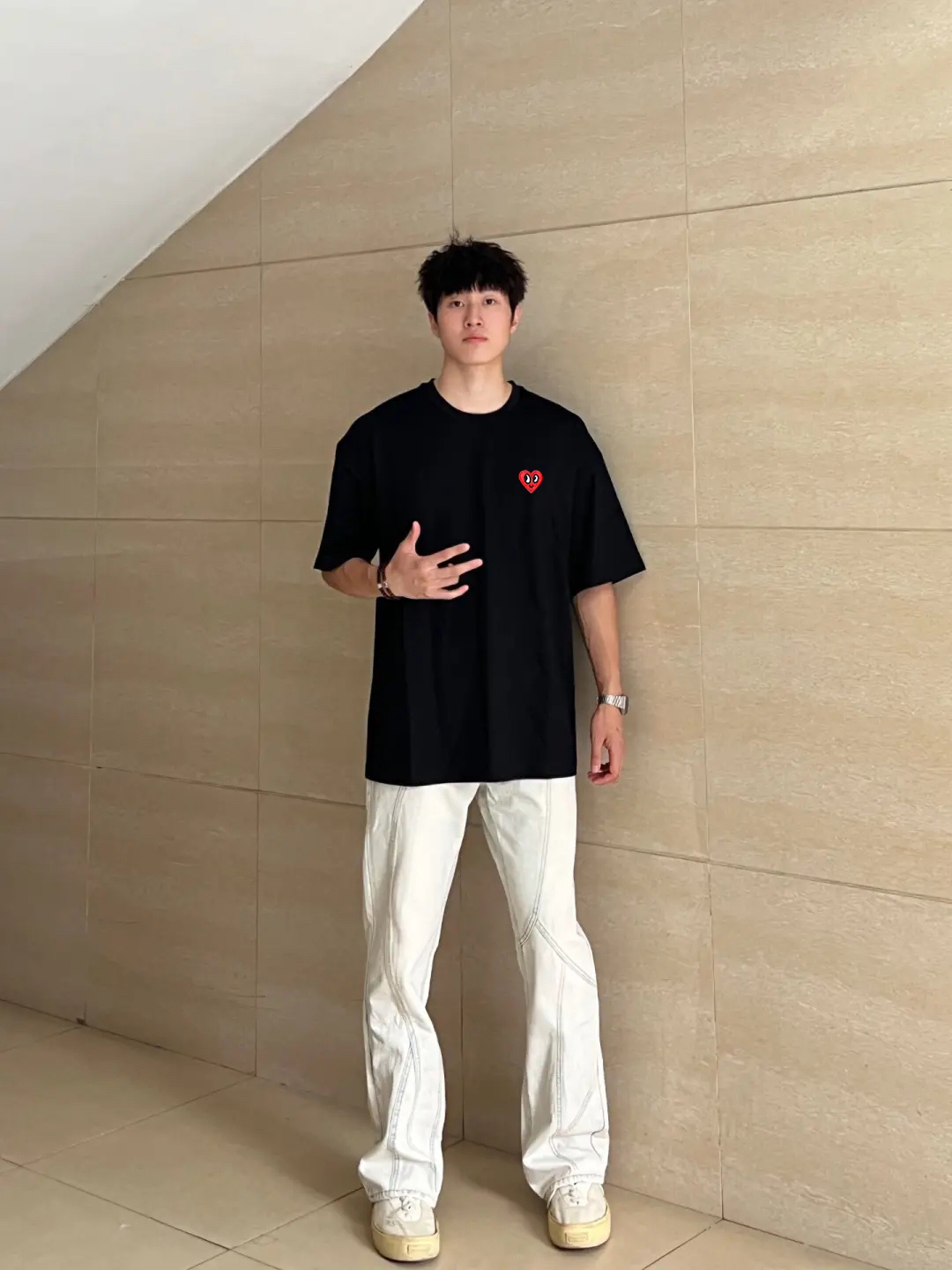 在校大学生的日常穿搭分享,黑白配真的也是很经典的一个搭配组合了,整体简单又干净,这款短袖面料舒适,时髦好穿,清爽又很有少年感