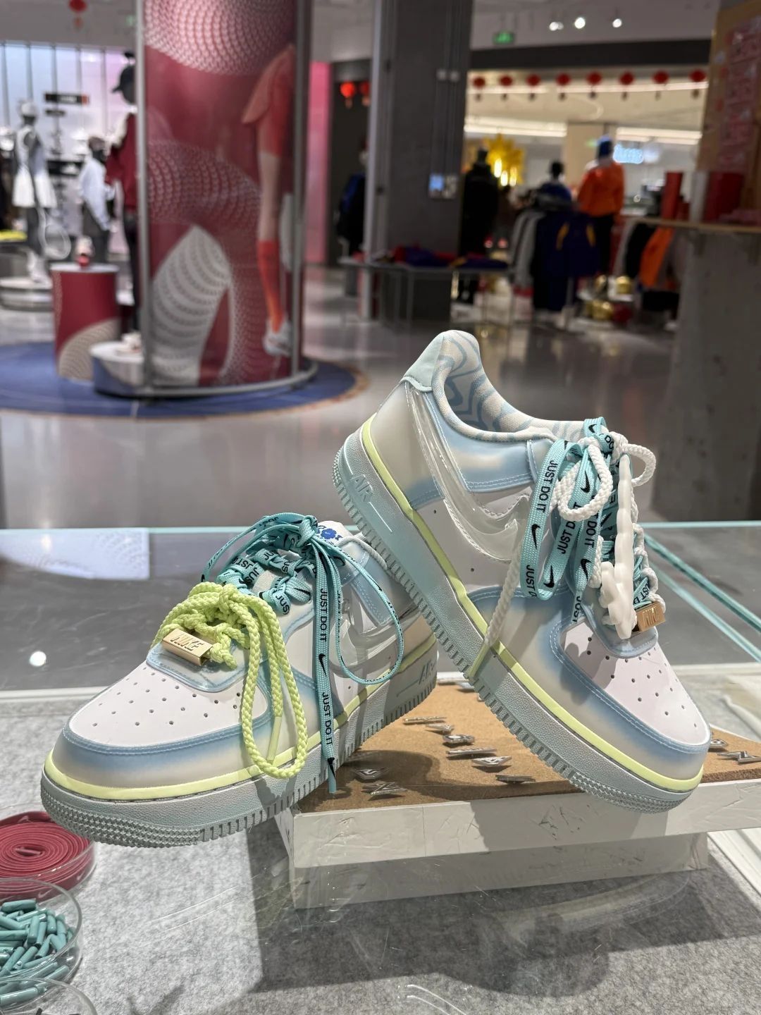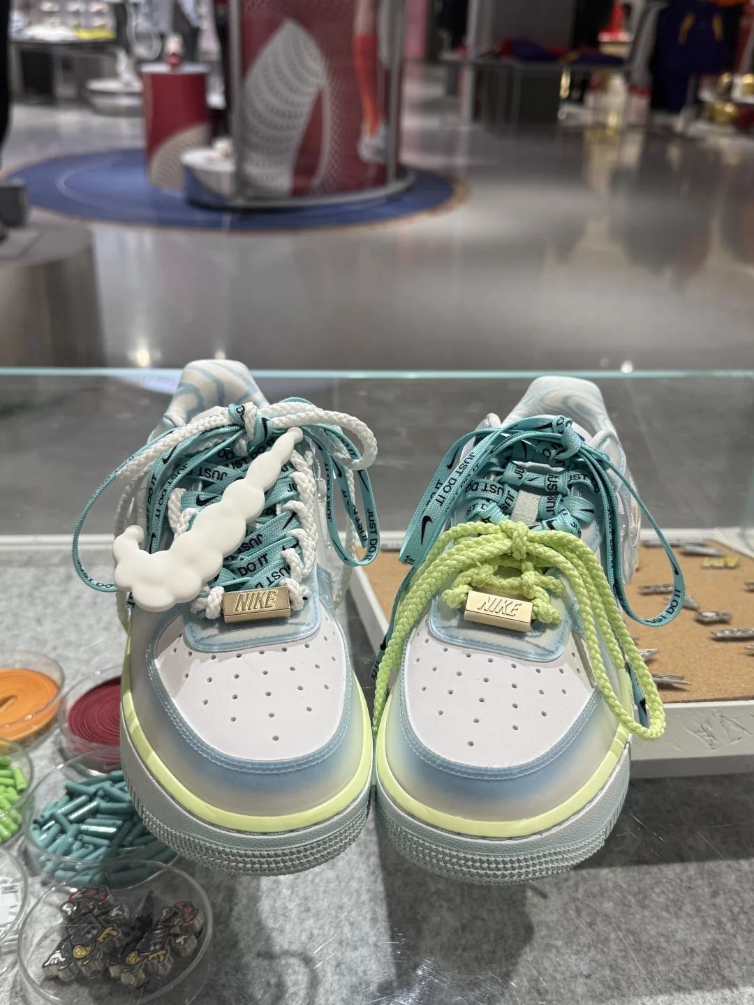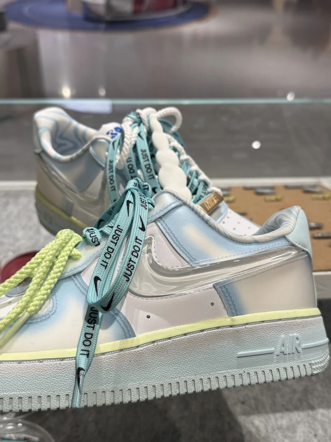 #今天穿什么香[话题]# 小威与耐克联名的AF1🧊真的爱了~ 侧面的Swoosh还是3D立体果冻材质的 荧光绿🆚白鞋带是自带的两幅 其他都是另外搭配的哟 独家定制🌟 #nike#空军#新鞋就按这个标准卷#超好看鞋子推荐 #nikebyyou#个性板鞋 #小众板鞋 #耐克 #威廉姆斯