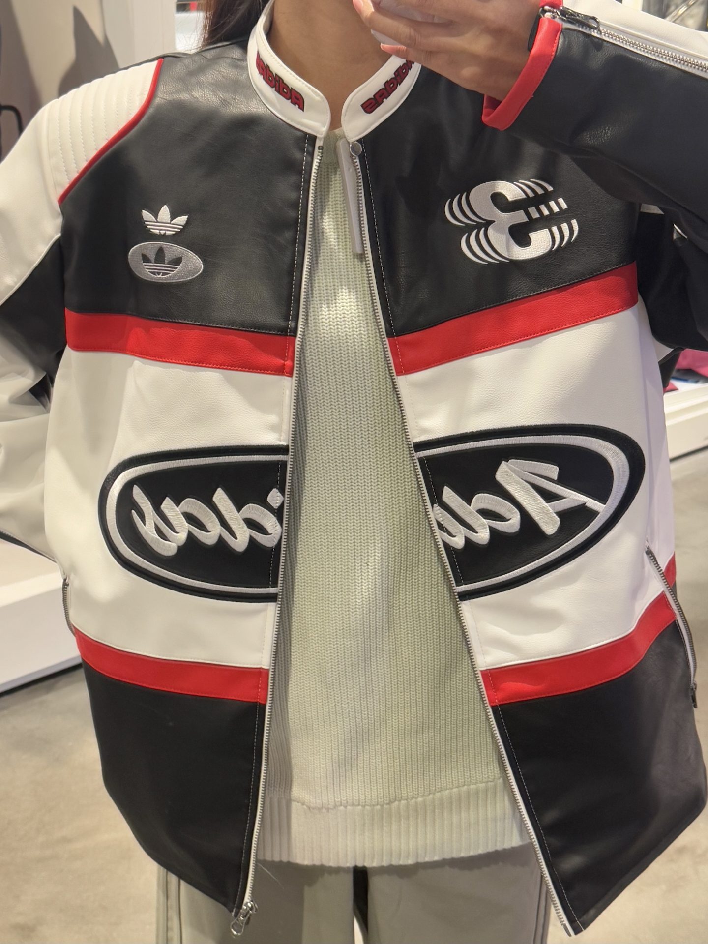 本篇笔记关联了【孙阳同款】adidas Originals/三叶草 赛车风皮质拼接防风立领棒球服夹克 JM8031 黑白拼接等商品,为用户提供真实的使用体验和购买参考。