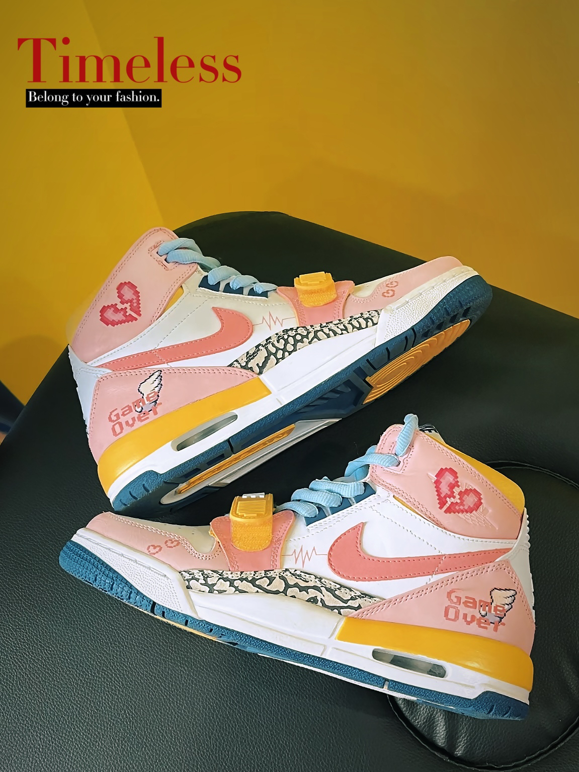 🔥**核心暴击点** - 8-bit像素美学重构复古基因 - 全鞋面UV夜光涂层黑科技 - 隐藏式游戏彩蛋交互系统 - GS专属少女比例调校 🔍**赛博密码库** ❶ **像素元宇宙** 鞋身覆盖16×16像素矩阵,侧翼飞翼LOGO演化为游戏手柄十字键。渐变粉白底色叠加霓虹光晕涂层,黑暗环境中触发32处夜光代码(持续发光>8小时)。 ❷ **游戏彩蛋层** ...