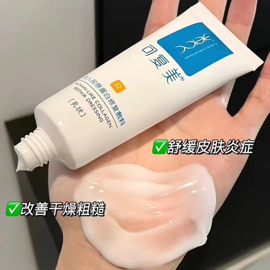 质地是冰激凌状的,但是非常水润容易推开,而且吸收 特别快。上脸推开后能感觉到明显的水润感。因为成分 的选择都是非常温和的,所以对敏感肌来说也是完全无 压力。 主要成分 可复美重组胶原蛋白R乳以重组胶原蛋白为主要成分, 深入肌肤,带来卓效修护力。并且不添加任何酒精香精 色素激素等致敏成分,功效 这款修复乳不仅有效缓解敏感,还能促进创面愈合,挤 痘后避免产生痘印,减轻色素沉着, 在...