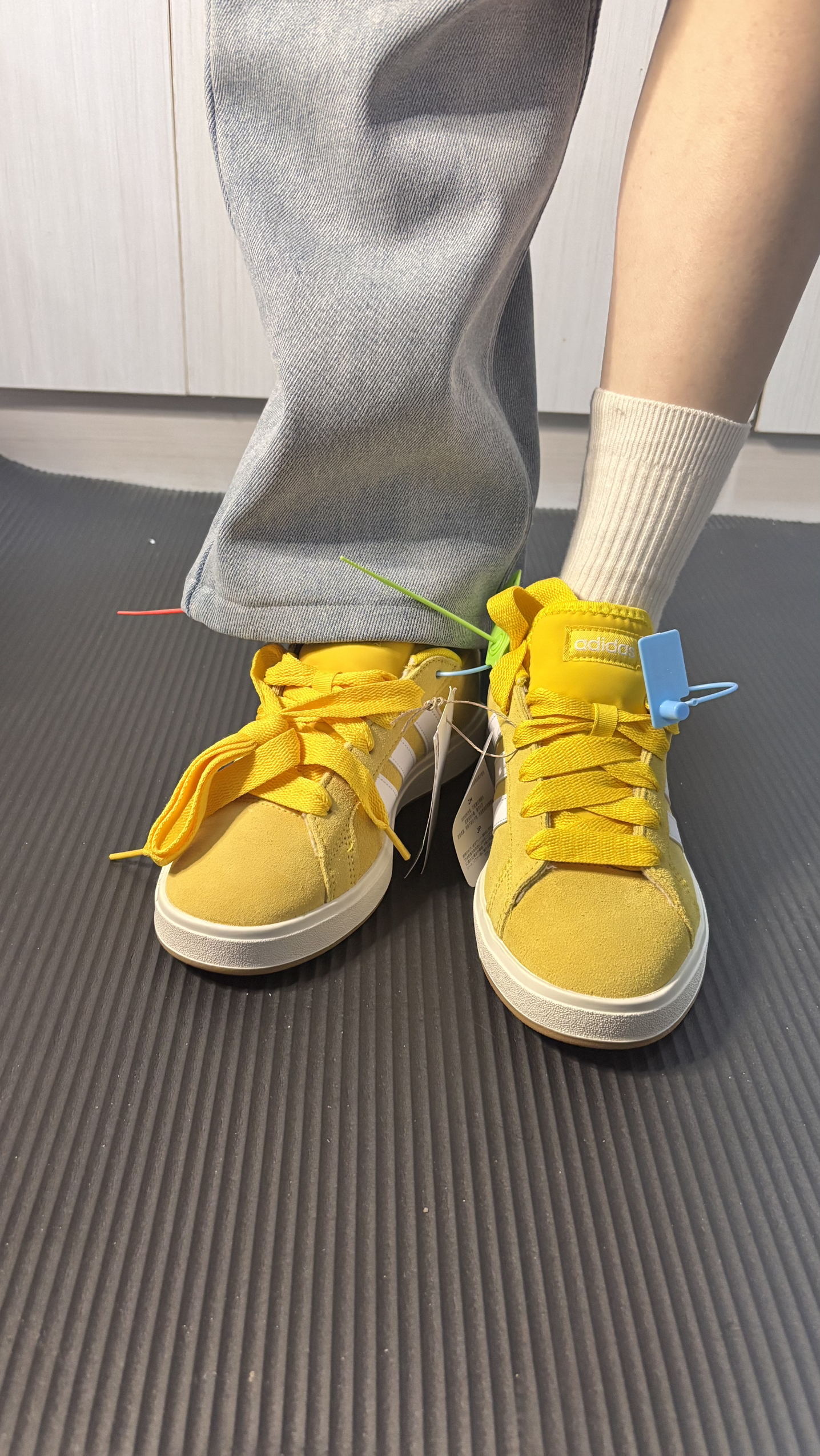 宝子们,今天来给大家分享我最近挖到的宝藏潮鞋——阿迪达斯这双超亮眼的黄色板鞋! 瞧瞧这颜色,饱和度简直绝了,走在街上想不被注意都难!鞋面是绒面材质,质感满满,再配上经典的三条纹,复古又时尚。而且它特别好搭,我今天简单配了条牛仔裤,瞬间氛围感就有了,不管是休闲风还是运动风,它都能轻松拿捏。 上脚舒适度也超棒,鞋底软硬适中,走路久了也不累。尺码也很标准,大家可以按平时的码数放心入。 有了这双鞋,出街回...