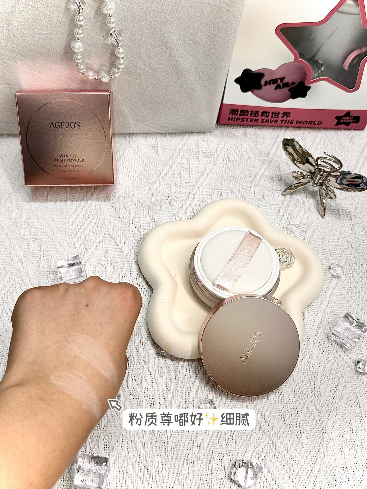 是介款爱敬的散粉 粉质敲细腻~ 上脸清透哑光妆容🔗 直接把脸上油摁住了~ 自然轻薄一点不脱妆 磨皮效果肉眼可见nice 现在化妆根本离不开💕
