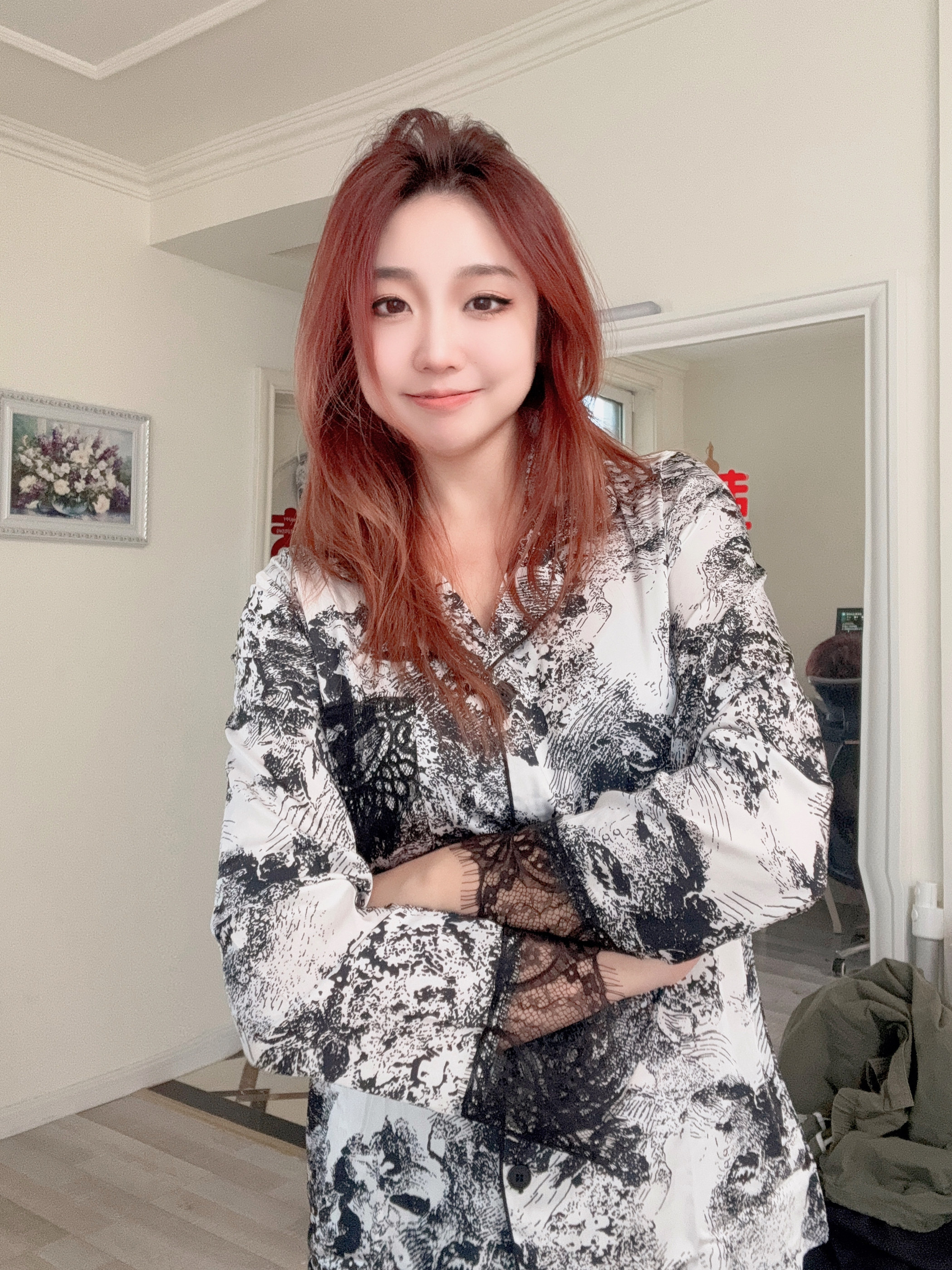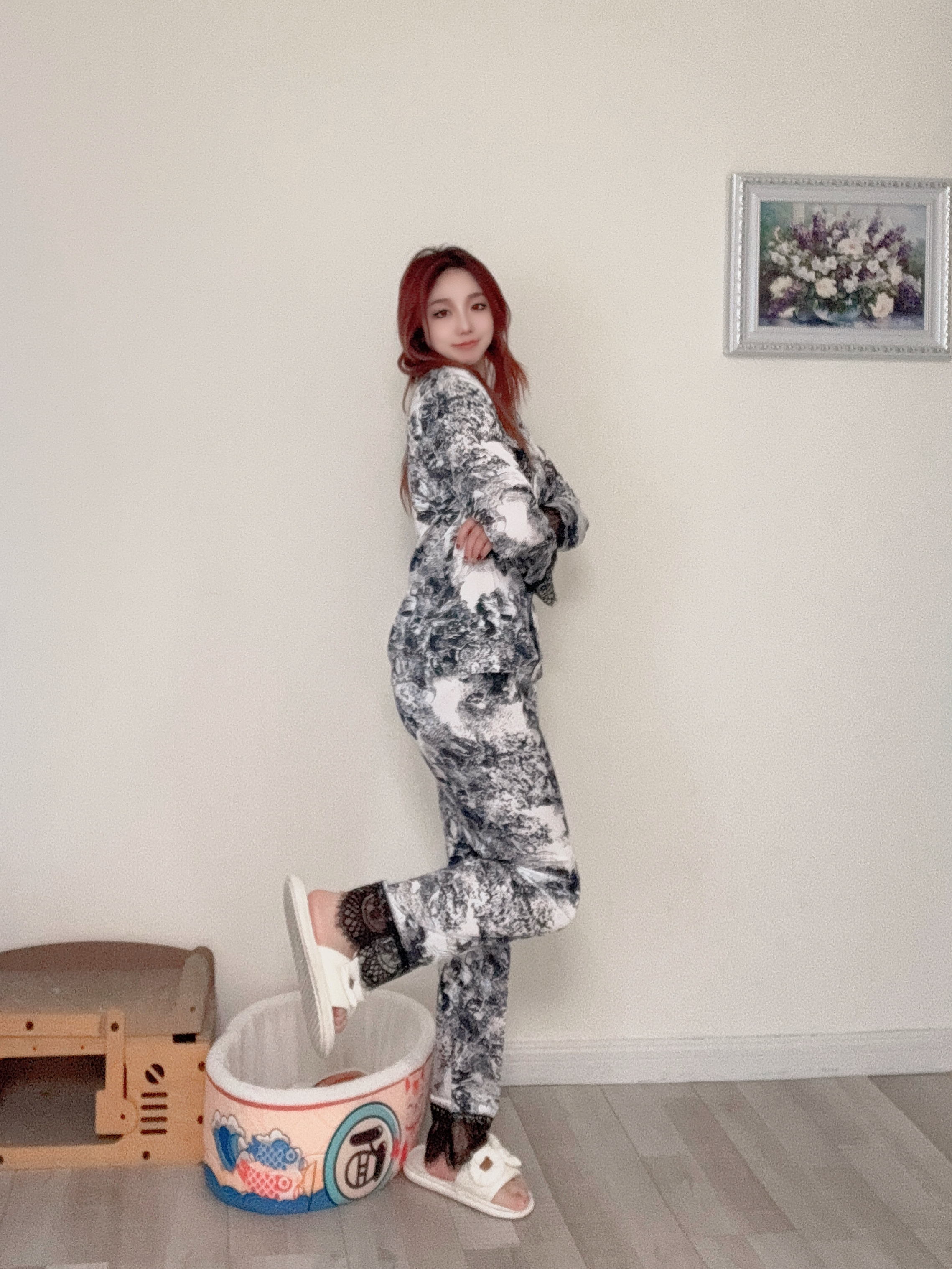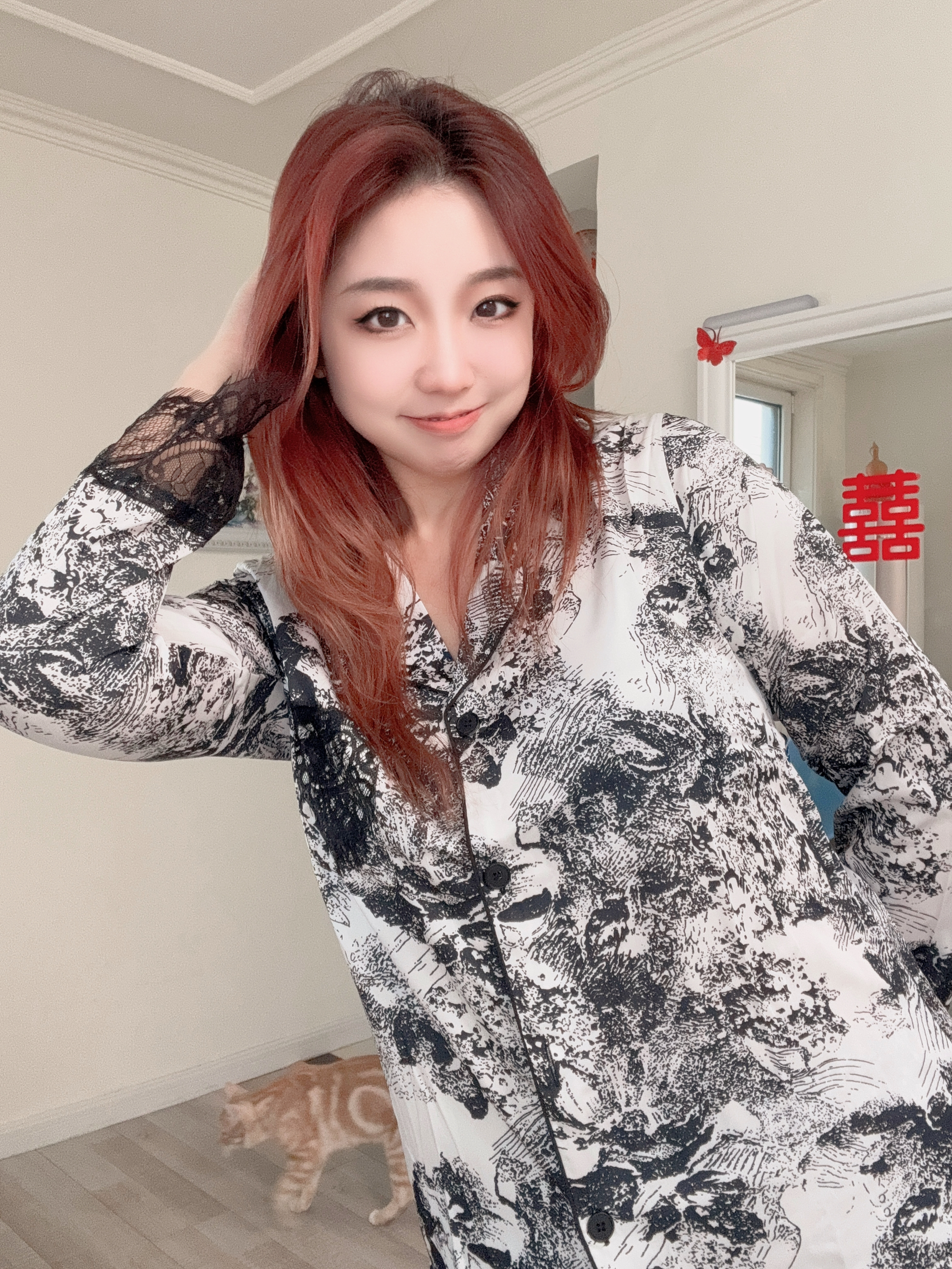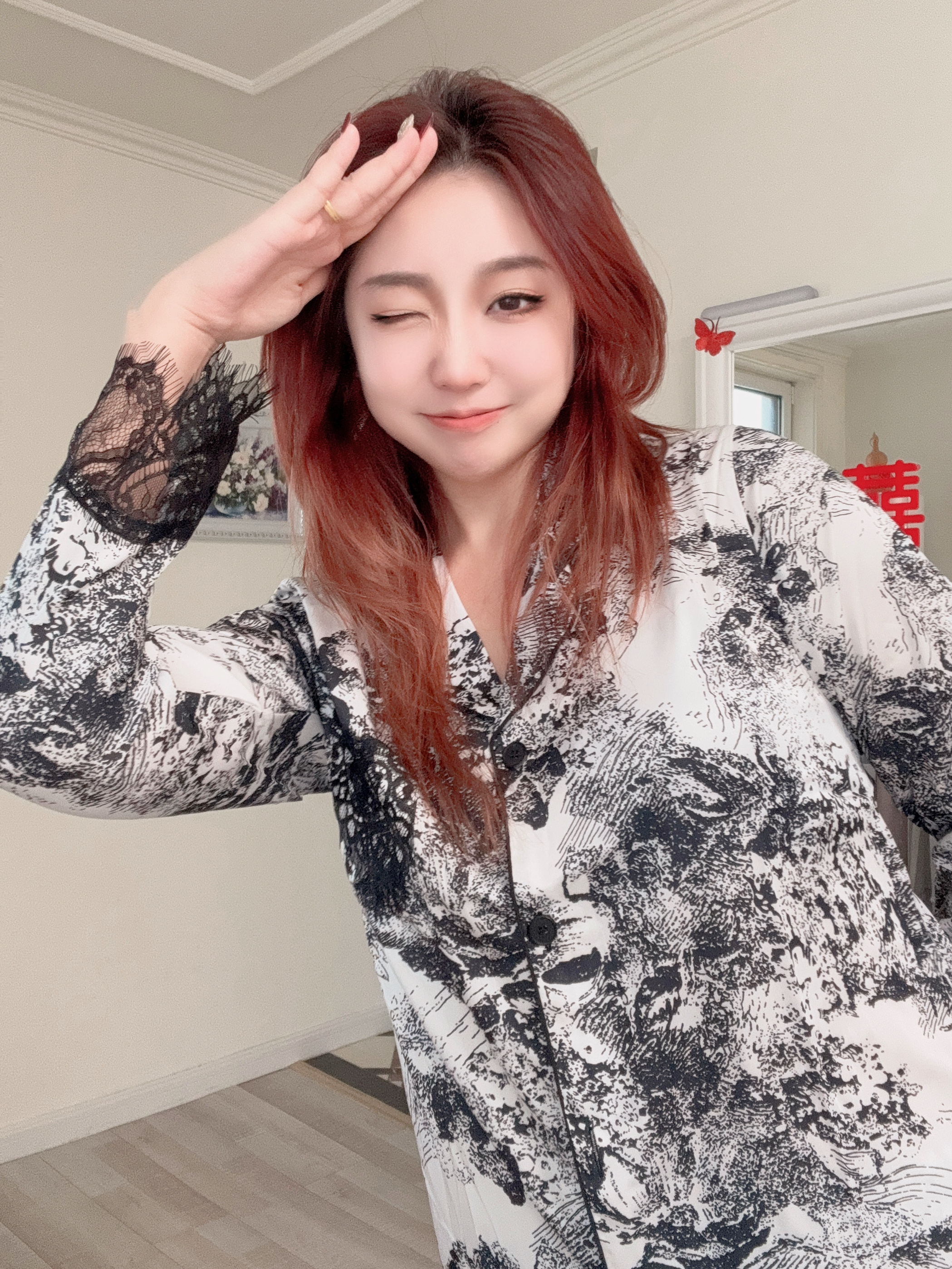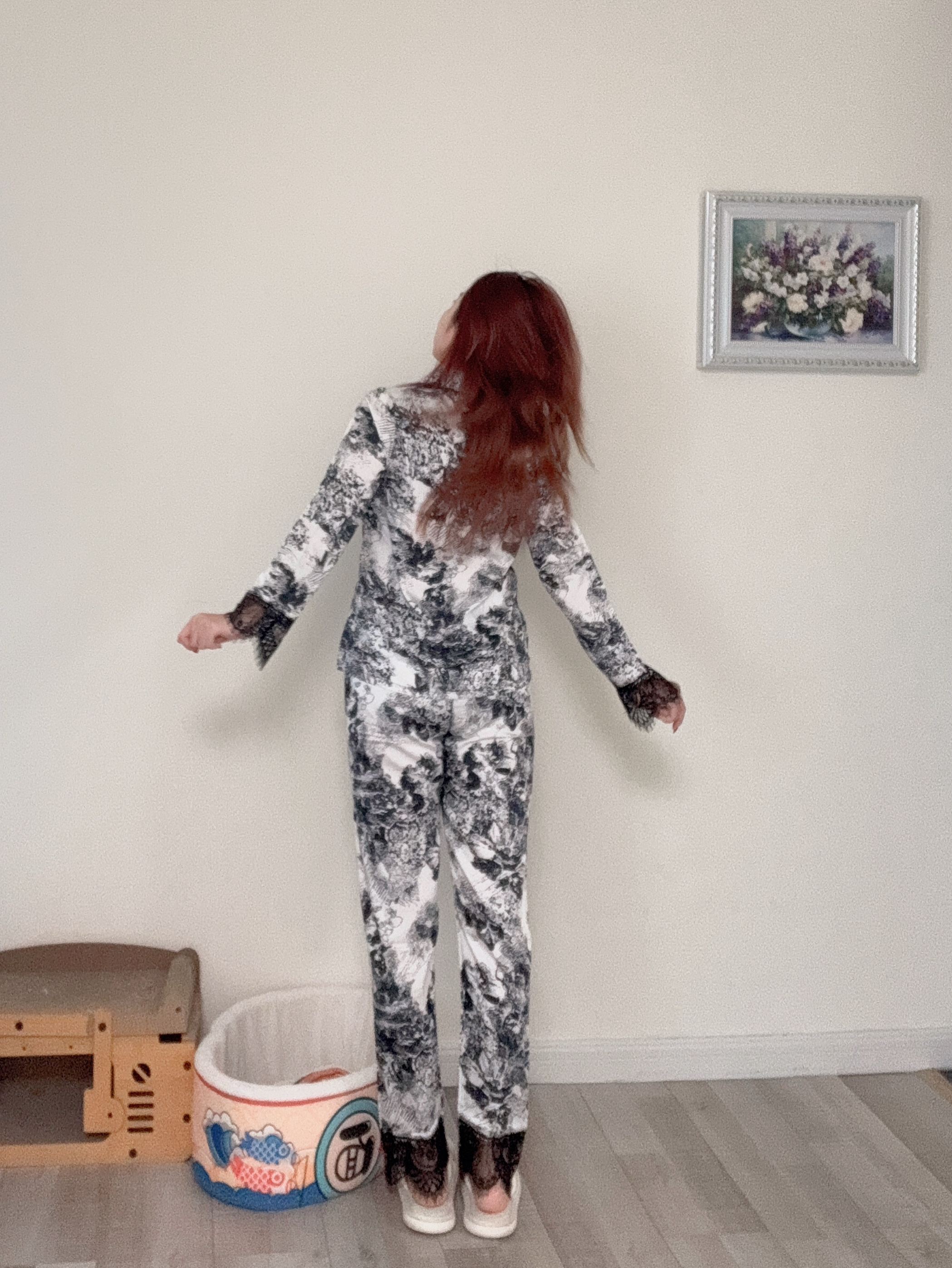 今天穿的是 沁婧 家的蕾丝睡衣 入春入手的第一件蕾丝睡衣 水墨画的图案非常好看~ 冰丝之地滑溜溜的贴在身上柔软又舒适 高级感满满的蕾丝设计 袖边和裤边都有黑色蕾丝设计 给男朋友也入手了一件情侣款~