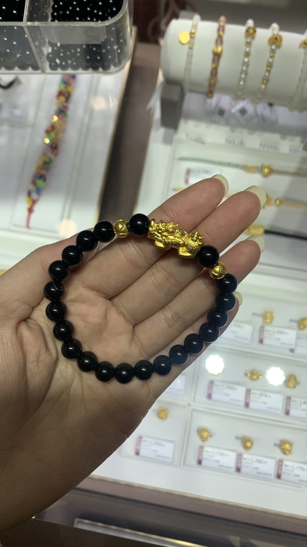 金色貔貅加黑色转运珠 手串大气耐看。实物很精致。 寓意招财纳福