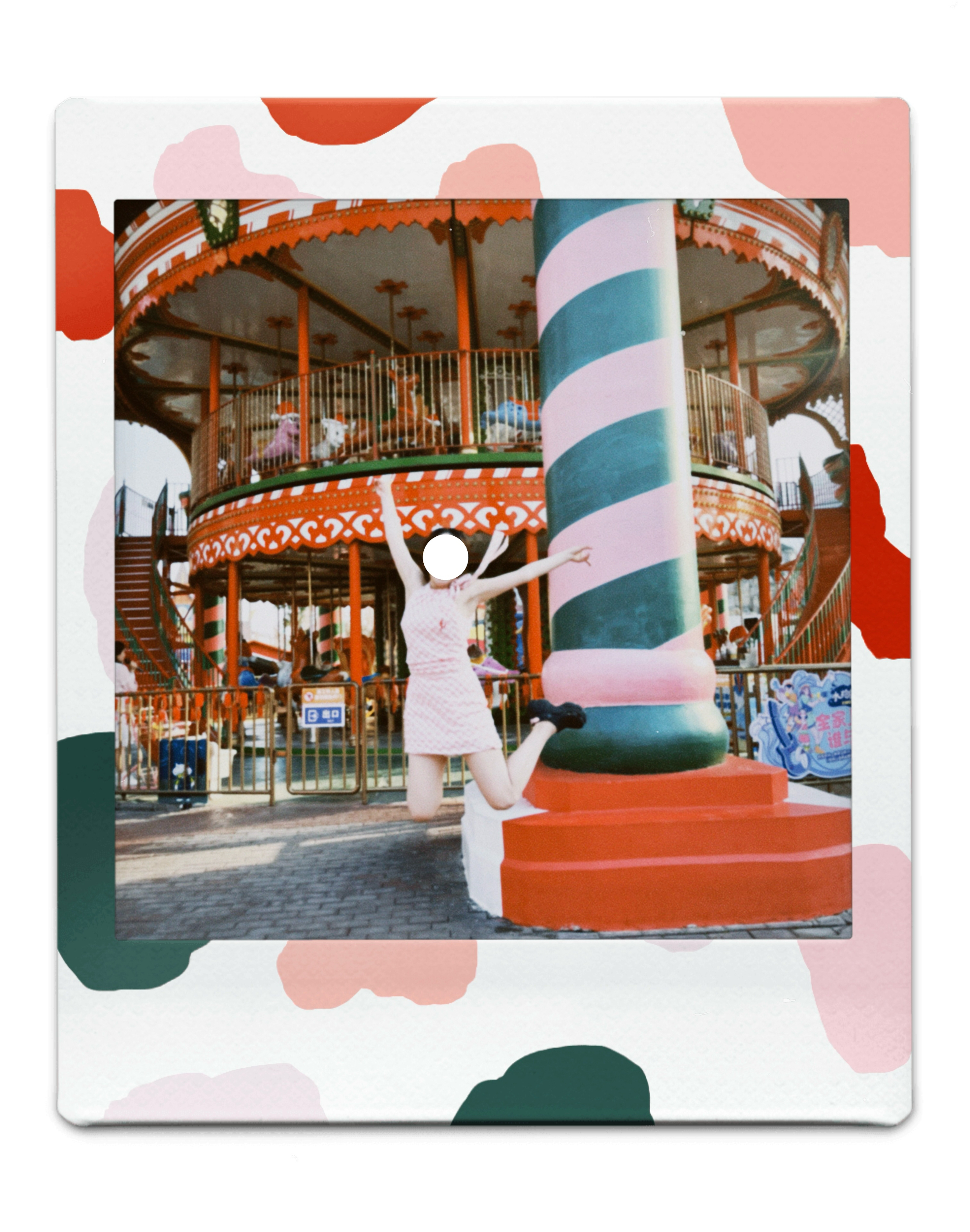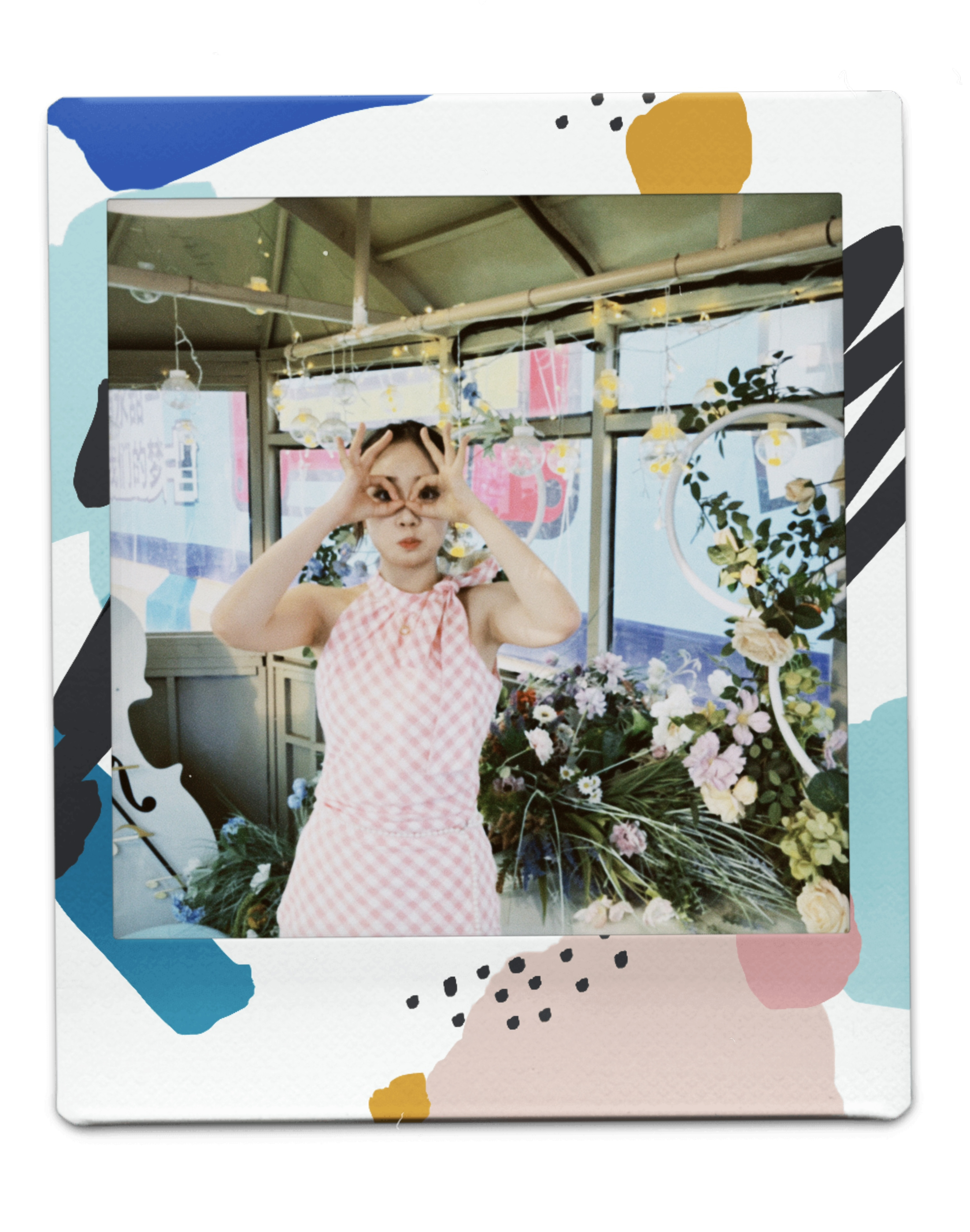 衣服是粉色挂脖连衣裙 非常出片💖 里面加了个白色短裤(外穿) 非常适合想出片的姐妹