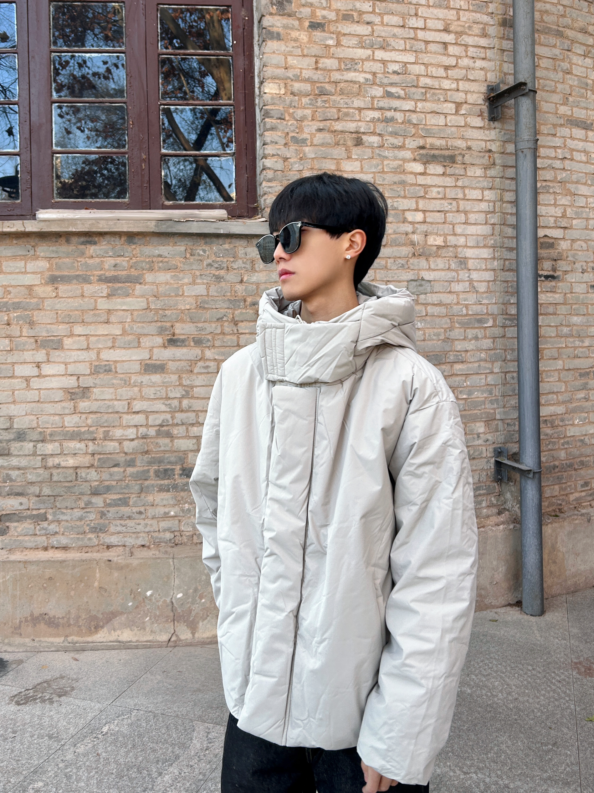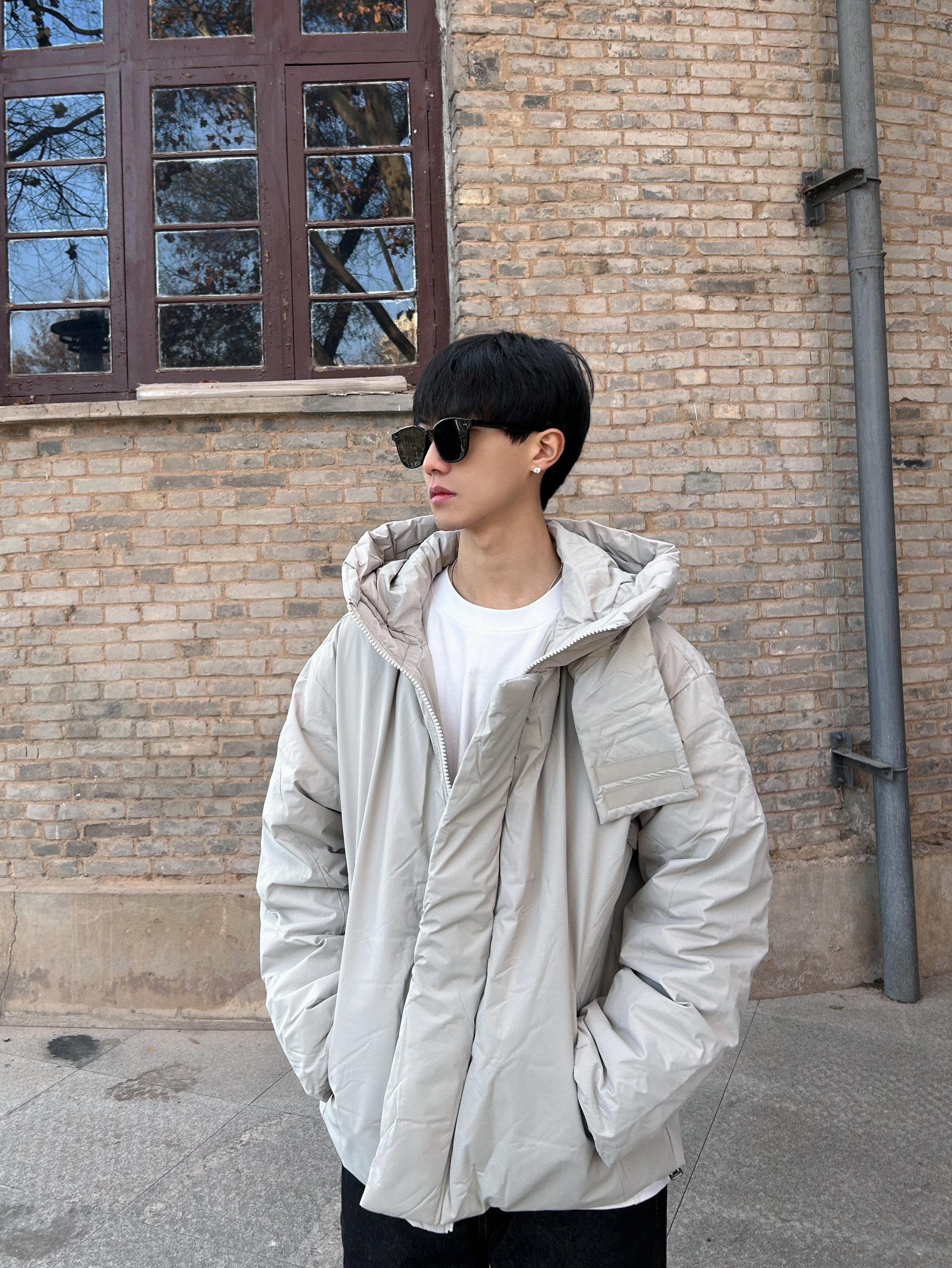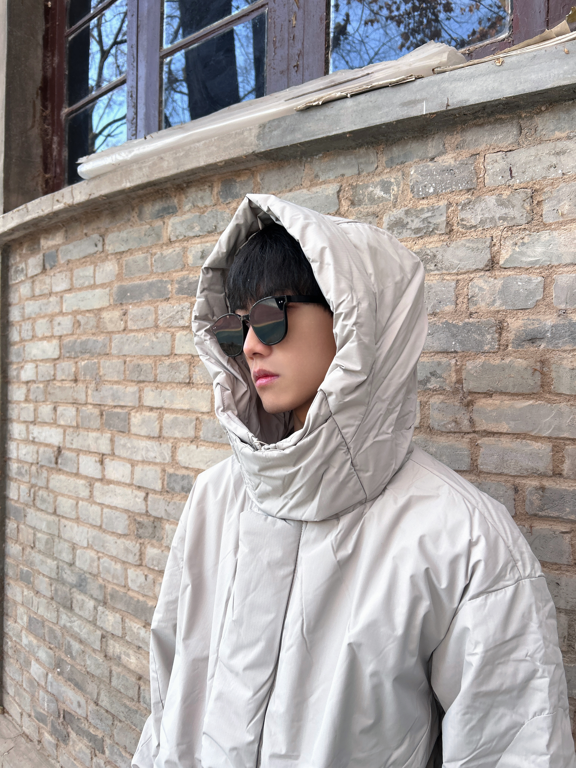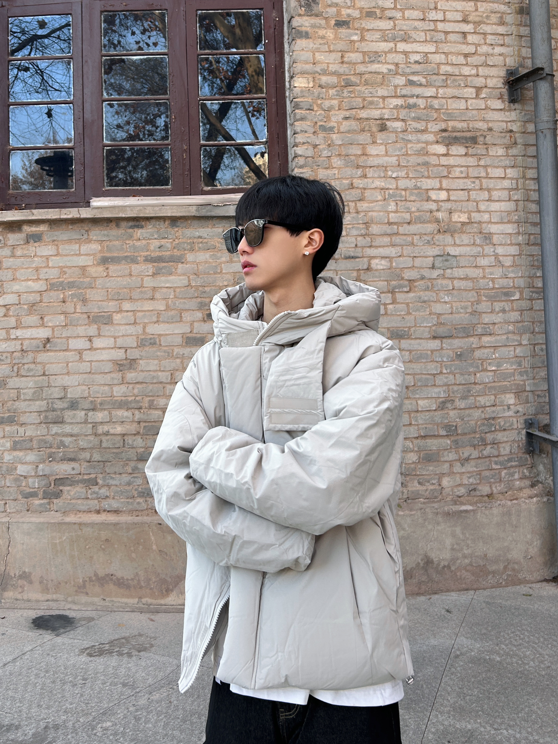 想要暖和就要穿蓬松一点的羽绒服 那我们的裤子就要选择宽松一些的 这样才不会有那种头重脚轻的感觉 上身了一件灰色的羽绒服 这件羽绒服穿上真的很有氛围感 还有我很喜欢的小细节 就是一个类似于围巾一样的设计 灰色的配色在冬天还是很有辨识度的 给人一种很干净的帅气 再来一些线条的设计 比起面包服更有穿搭感 搭配一条水洗牛仔裤 这条牛仔裤的颜色真的有种复古的味道 微喇的版型也是现在很流行的 穿在腿上舒服保暖...