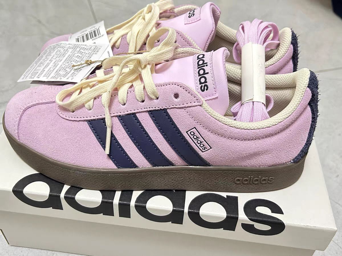 复古控的宝藏板鞋 | adidas VL Court 2.0 宝子们,挖到一双超绝的板鞋——adidas VL Court 2.0! 先被它的复古颜值吸引,经典德训鞋款式,T 头设计,简约又不失时尚感。粉色鞋面温柔又吸睛,搭配深蓝三条纹,复古氛围拉满,不管是配牛仔裤还是运动裤,都能轻松拿捏氛围感。 上脚才知道舒适度有多绝。轻便的材质,走路毫无负担,仿佛踩在云朵上。它的防滑耐磨性能也超棒...