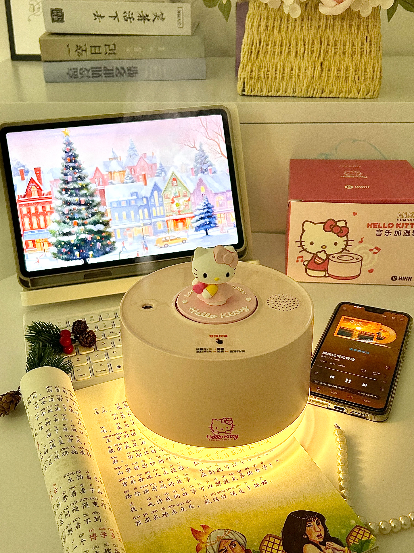 冬天啦,谁还没有这个可爱的加湿器哇 上面的kt 居然还会转圈圈 我真的爱不释手啦 是加湿器也是小夜灯 还是蓝牙音响,这也太全面了吧 放在卧室书桌上都是氛围感满满的 冬天开空调真的少不了它哇
