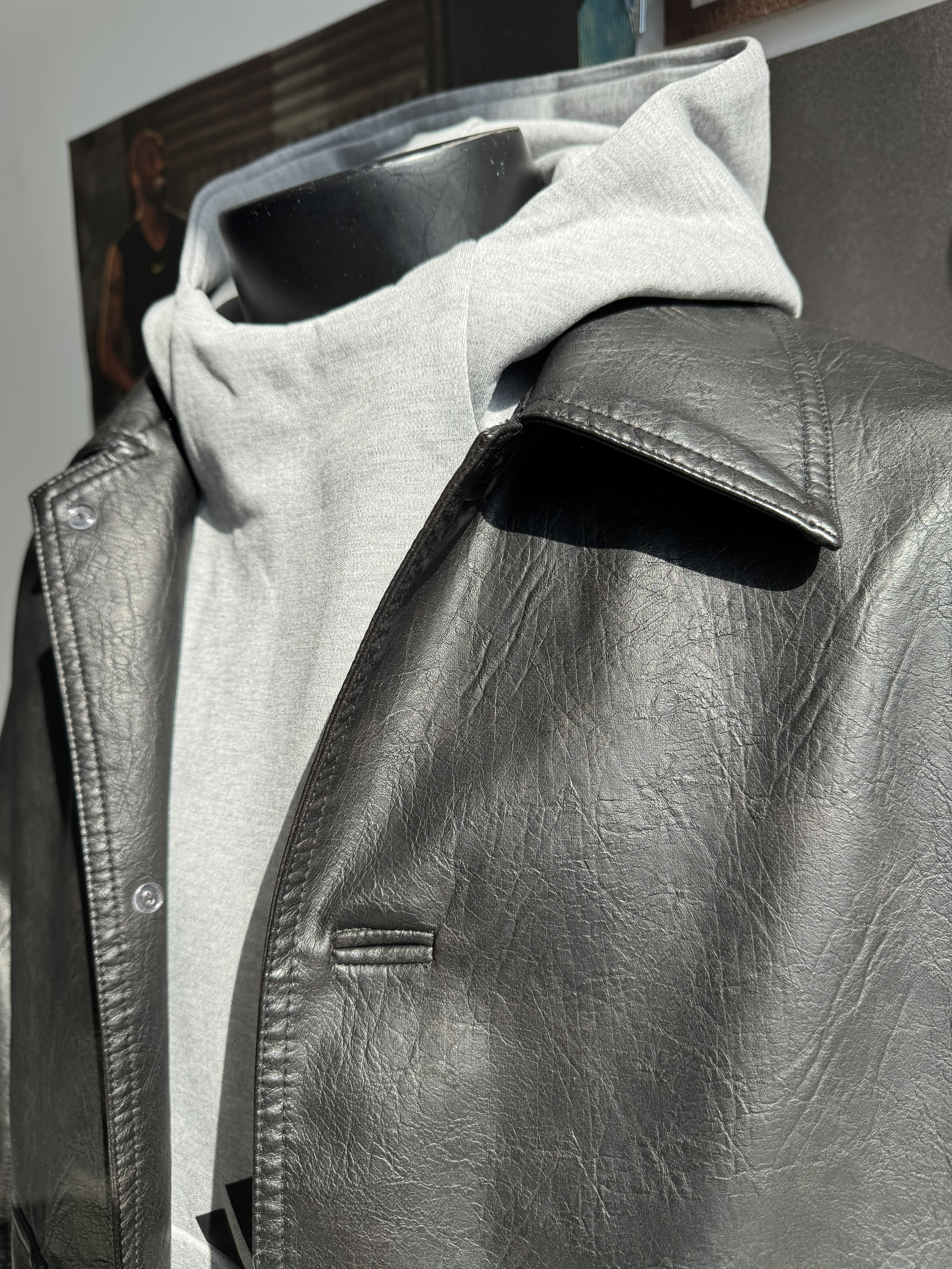 酷感与休闲的完美结合!皮外套质感高级,光泽感十足,防风又保暖,搭配柔软亲肤的灰色卫衣,舒适又有型。整体造型层次感满满,搭配一条牛仔裤或运动裤,立马变身街头潮人,初春穿这套,时髦又实用!
