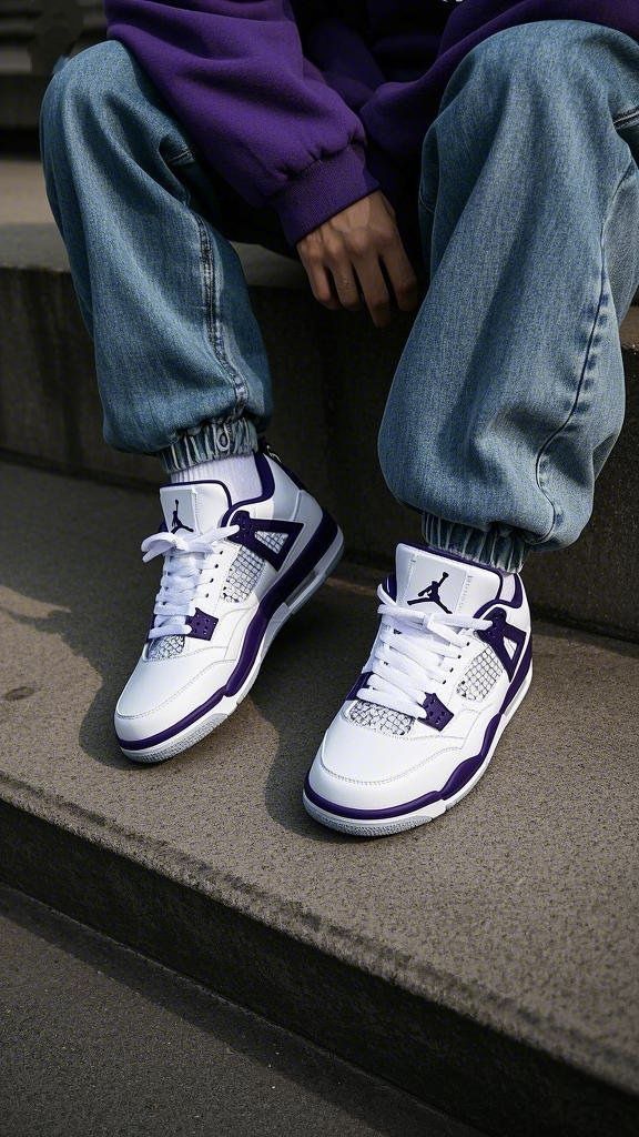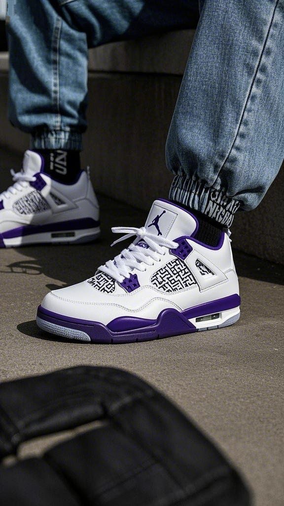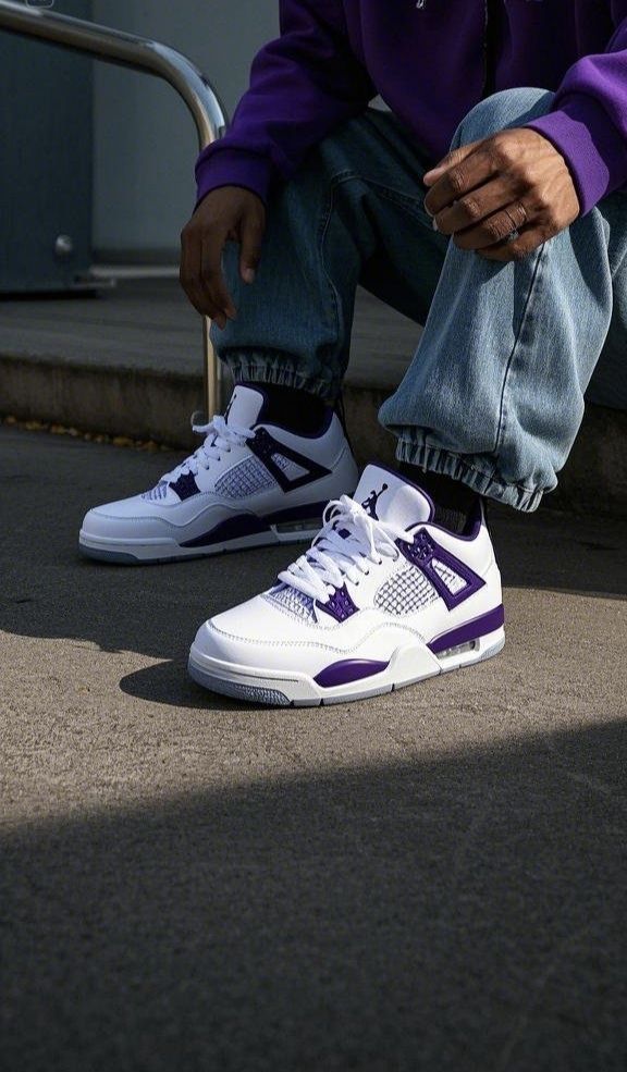 ✨ **仙女必冲!AJ4白紫「紫外线」开箱笔记,春夏出街C位预定!** ✨ 姐妹们!挖到一双神仙AJ4——白紫配色「Hyper Violet」! 纯白荔枝纹皮革鞋身自带高级滤镜,搭配电光紫外点缀,像把星空穿在脚上,温柔又炸街!后跟的Nike Air气垫设计复刻OG灵魂,泼墨中底和鞋带金属扣细节满分,阳光下blingbling的,细节控狂喜~ **女生专属小心机**:低帮设计显腿长一绝!...