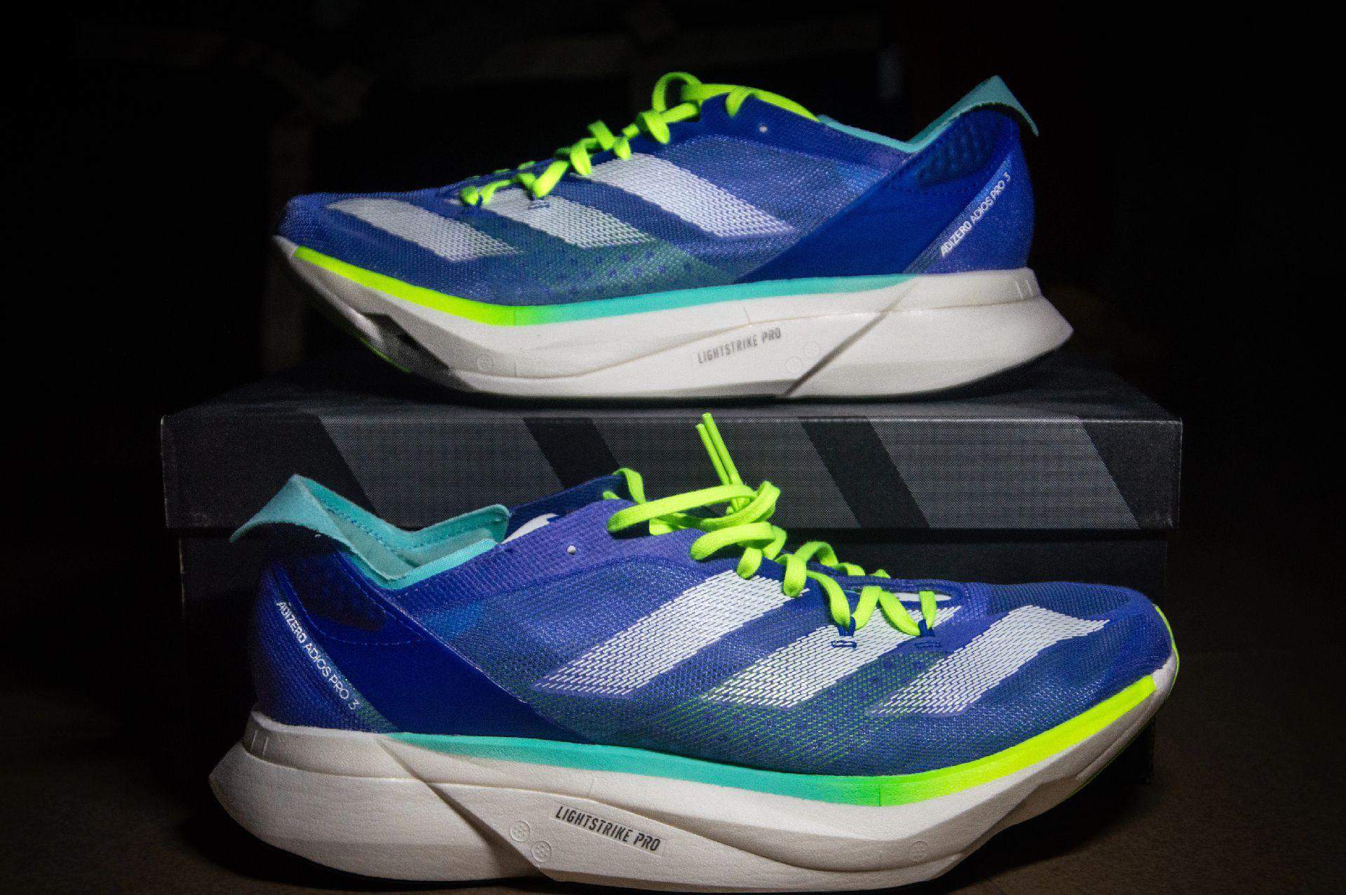 本篇笔记关联了adidas Adizero Adios Pro 3 跑鞋 缓震织物马拉松圆头 钴蓝/金属白/亮柠檬黄等商品,为用户提供真实的使用体验和购买参考。