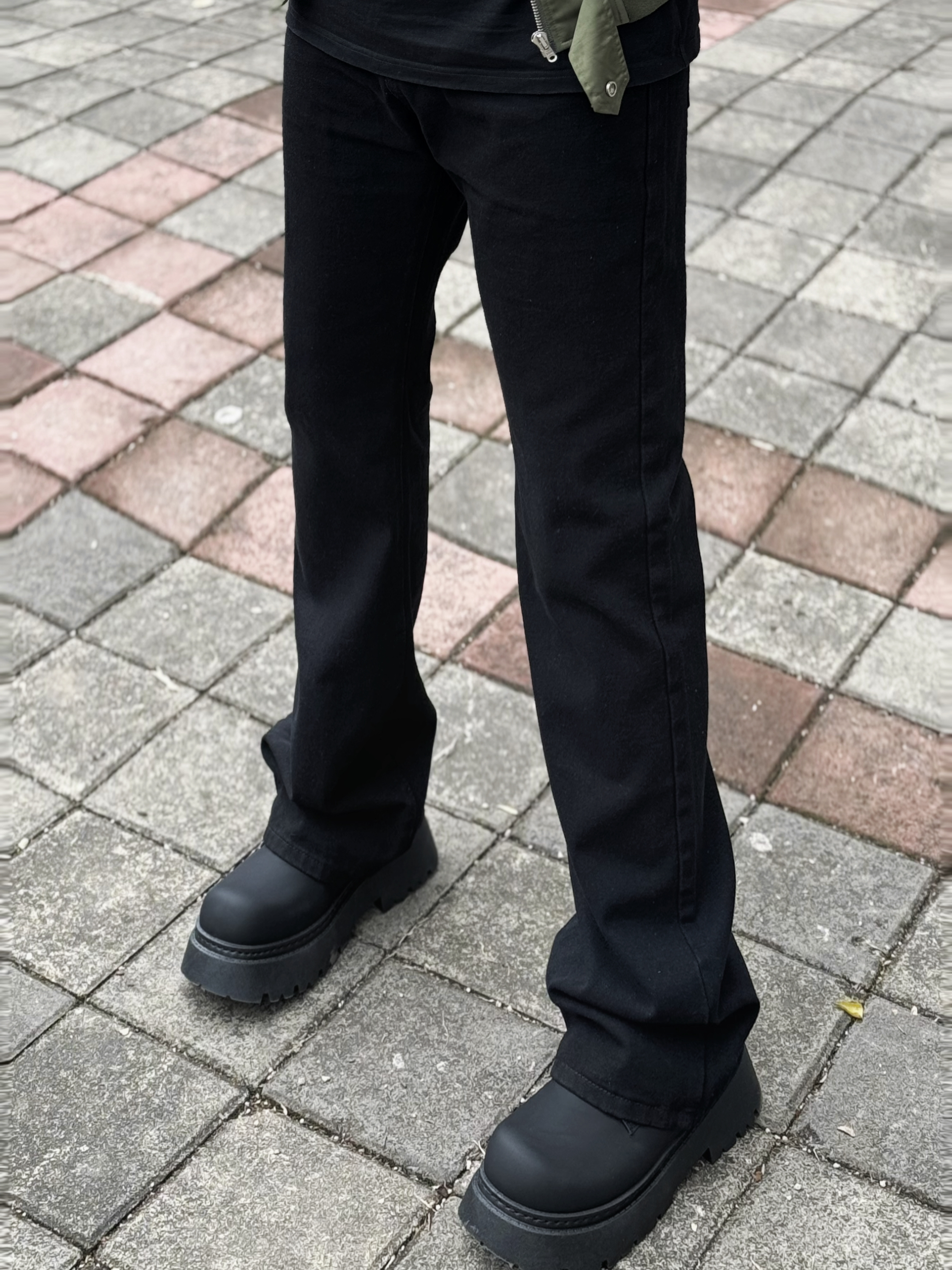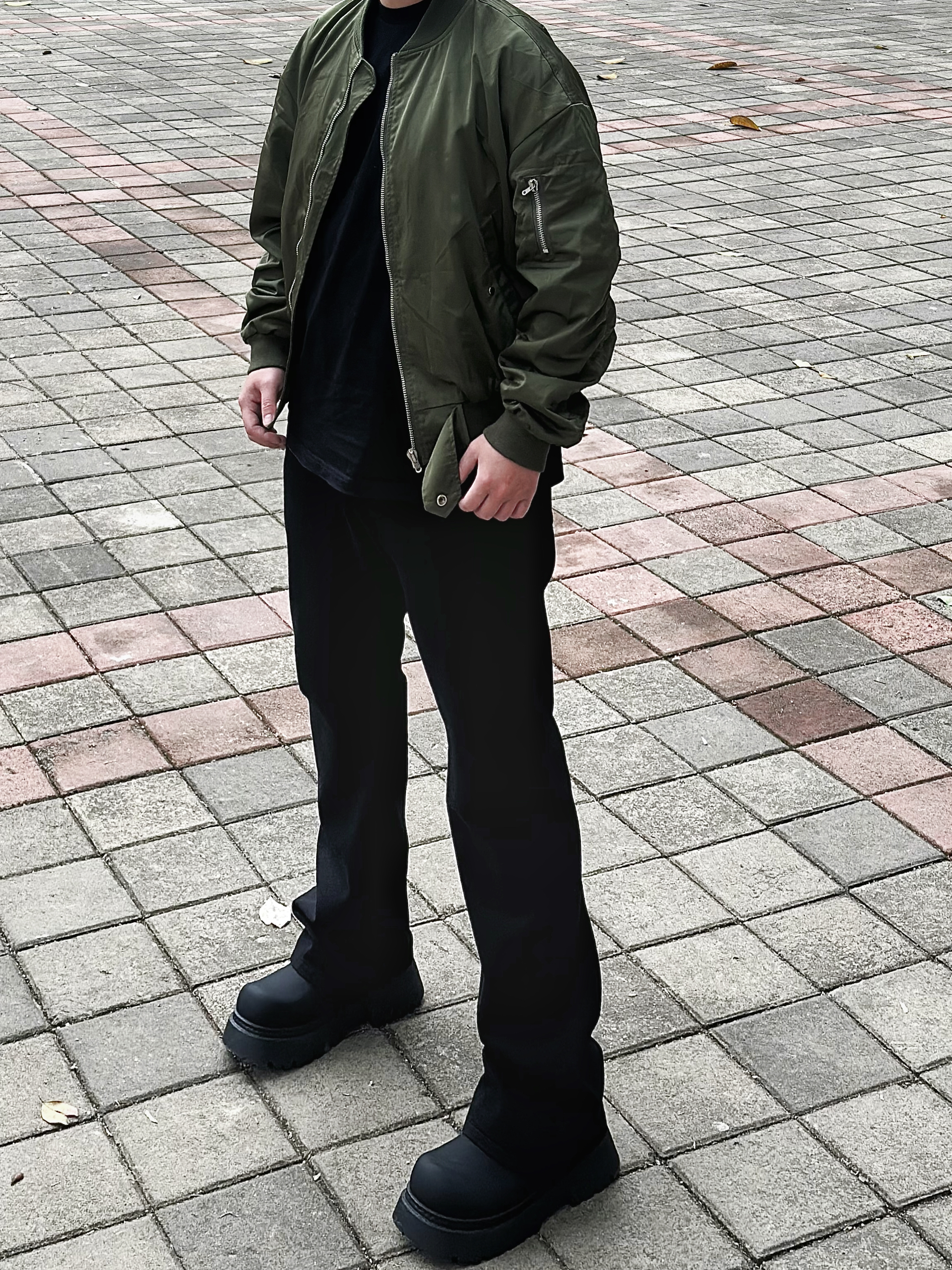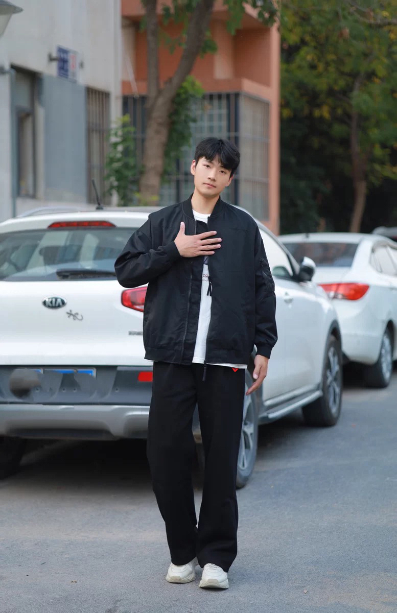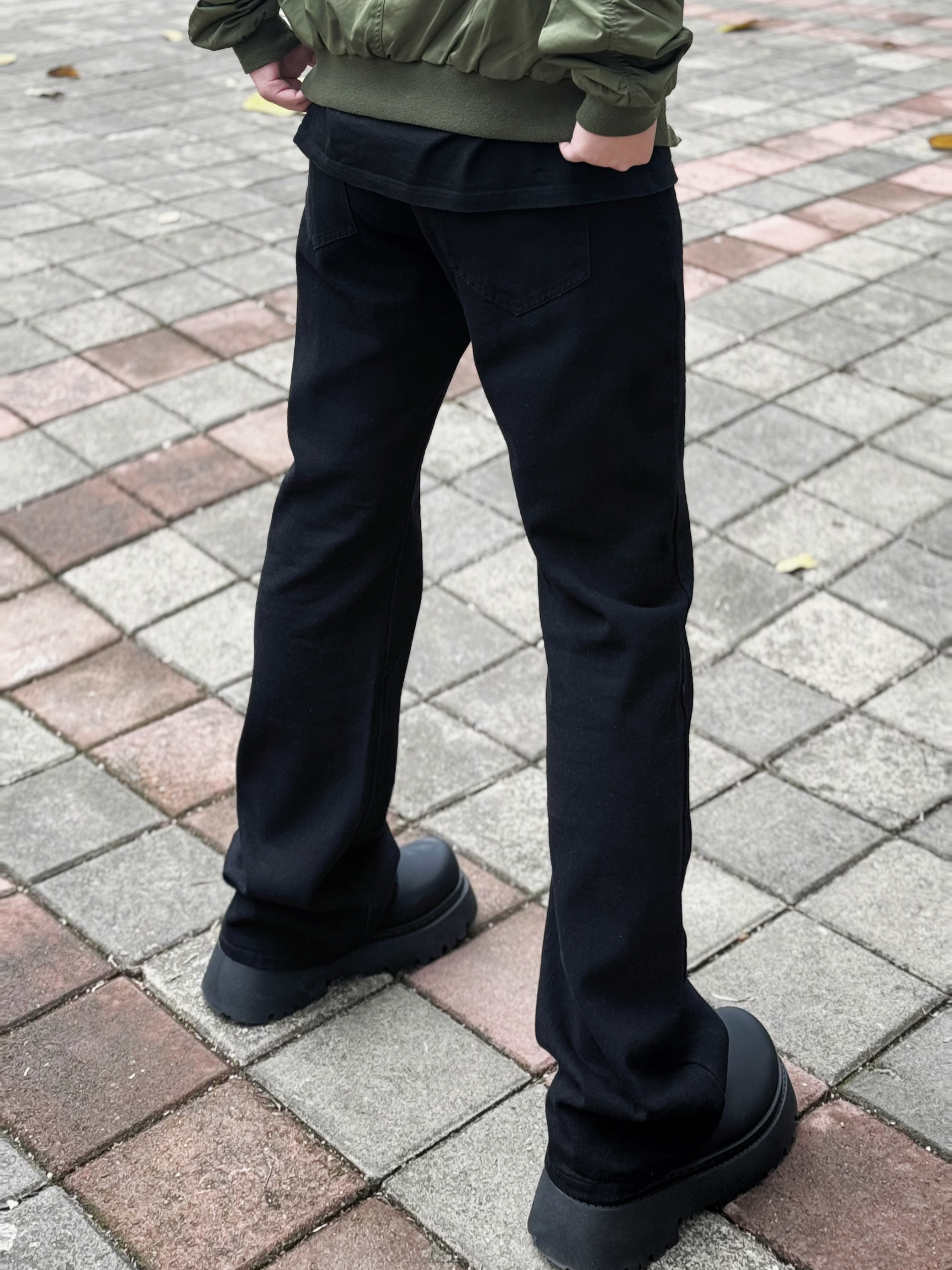 这条弯刀微喇修身黑牛建议男生直接焊腿上 显高显瘦显腿长 一点也不挑身材 什么腿型都能驾驭 上身搭配一件飞行夹克和一双黑色德比鞋 轻松拿捏春日cleanfit! 身高丨体重丨尺码 : 178丨90kg丨3XL