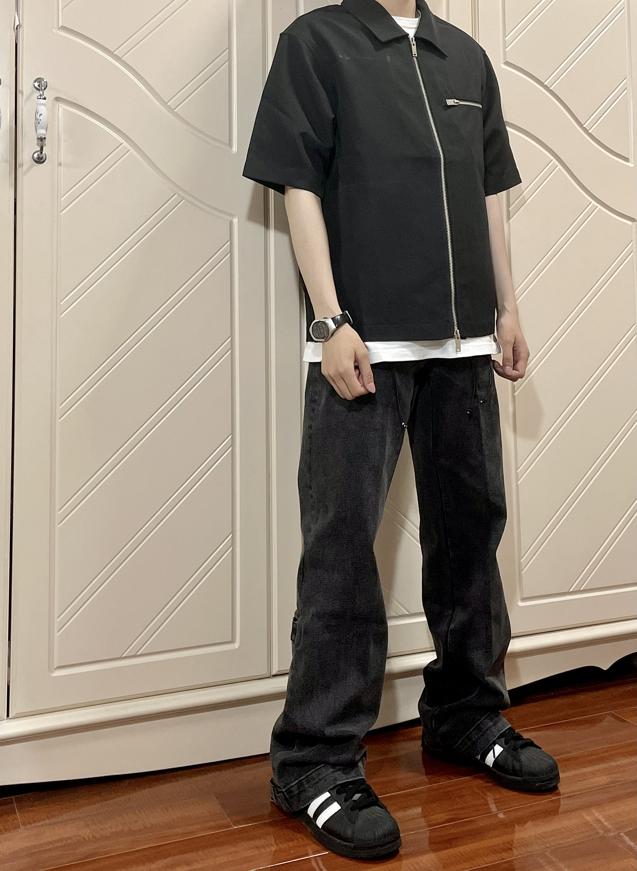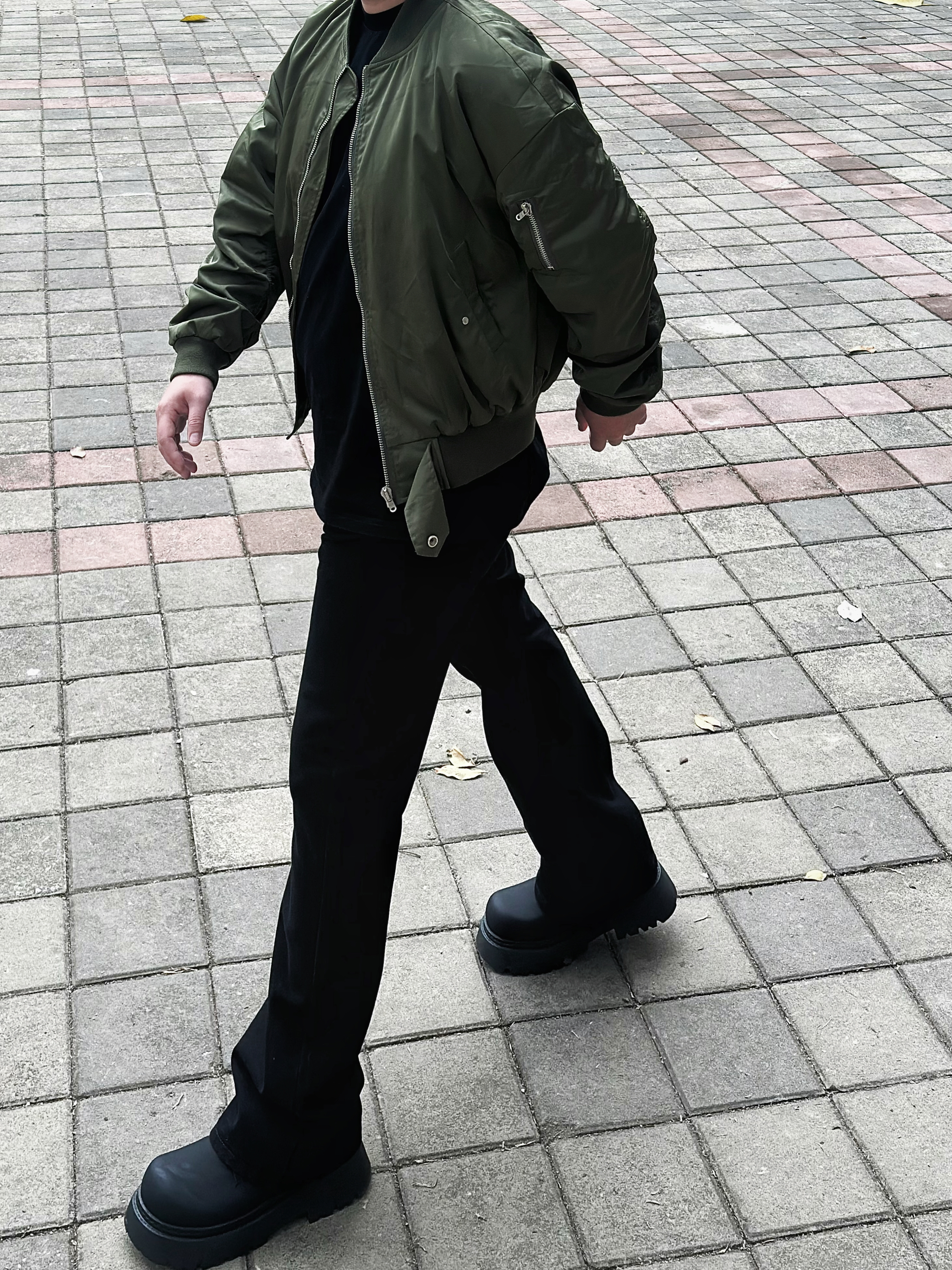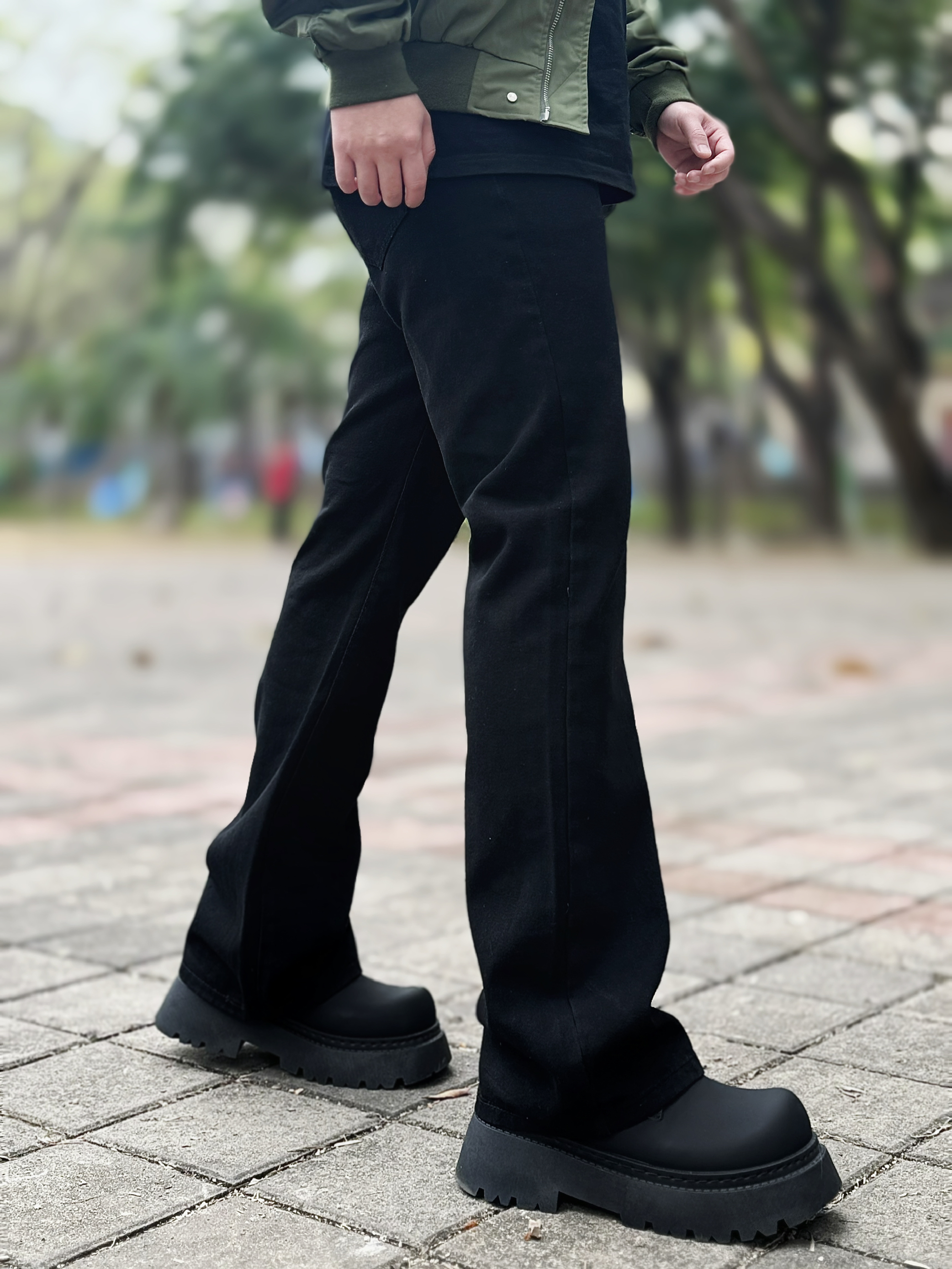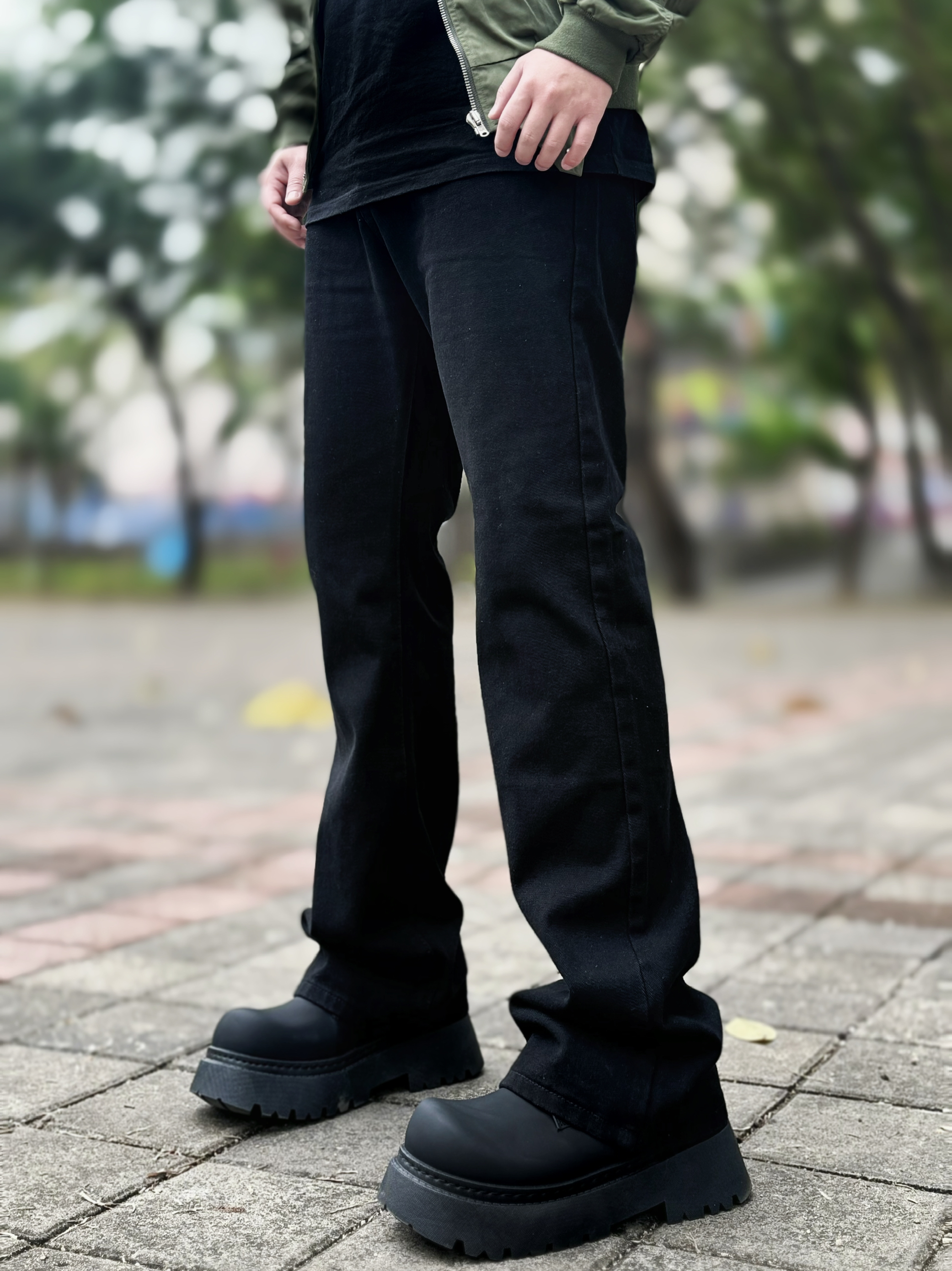 这条弯刀微喇修身黑牛建议男生直接焊腿上 显高显瘦显腿长 一点也不挑身材 什么腿型都能驾驭 上身搭配一件飞行夹克和一双黑色德比鞋 轻松拿捏春日cleanfit! 身高丨体重丨尺码 : 178丨90kg丨3XL
