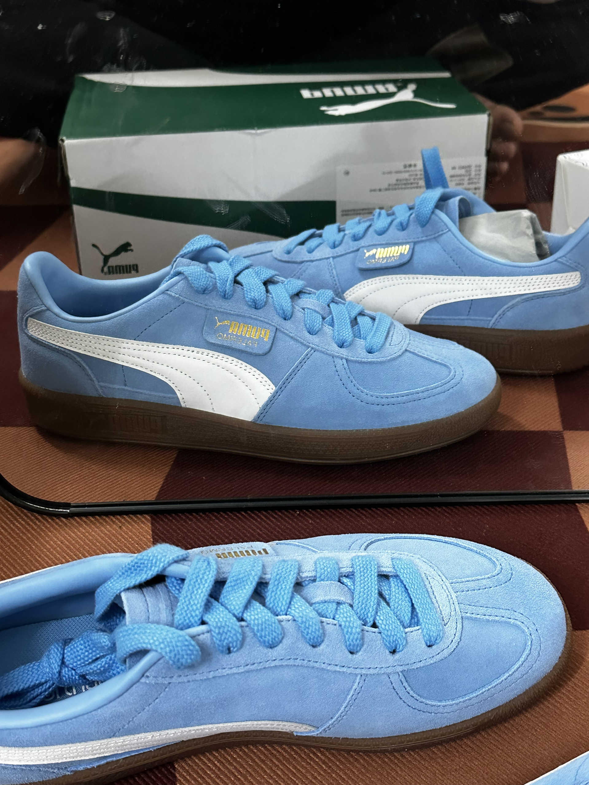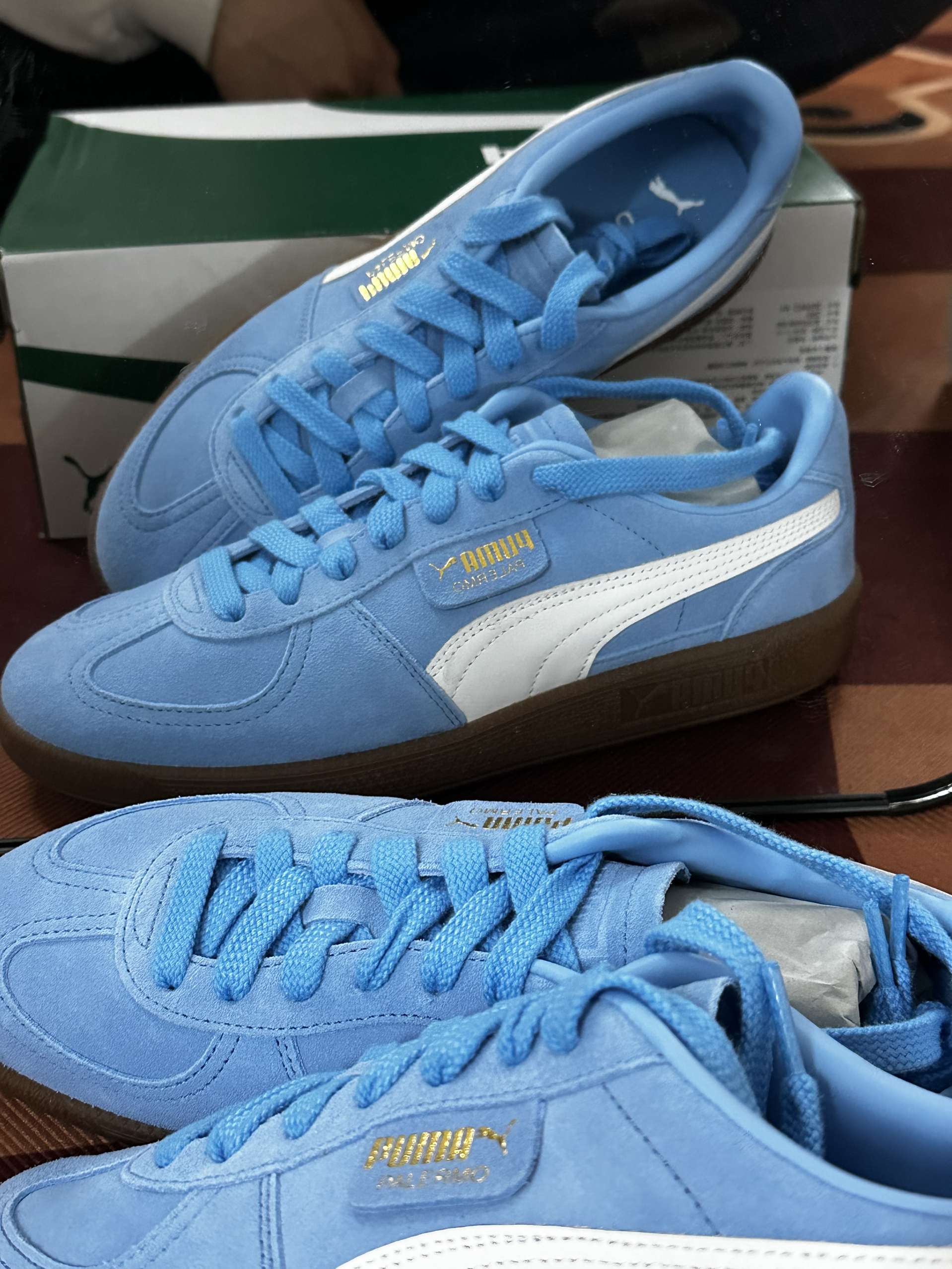 ## PUMA Palermo 蓝色板鞋:复古潮流与舒适体验的完美结合! 最近入手了这双PUMA Palermo蓝色板鞋,真的被它的颜值和舒适度惊艳到了!忍不住来给大家种个草! **首先,颜值即正义!** 这双鞋采用了经典的板鞋造型,搭配复古的蓝色麂皮材质,低调又不失质感。鞋侧的PUMA跑道logo更是点睛之笔,瞬间提升了整体的潮流感。无论是搭配牛仔裤、休闲裤还是裙子,都能轻松驾驭,绝对是日常...